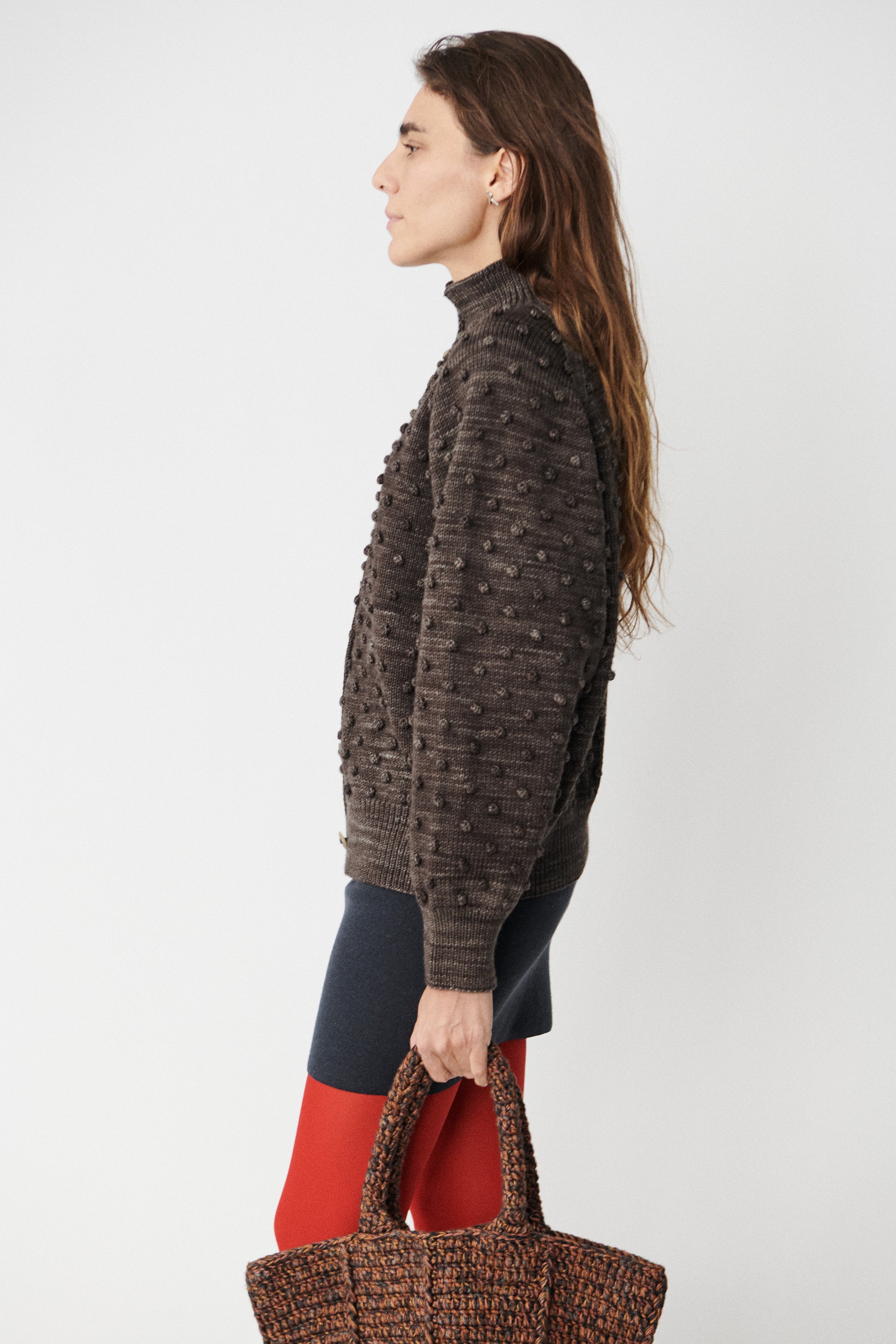 Popcorn Polo Cardigan - Bark