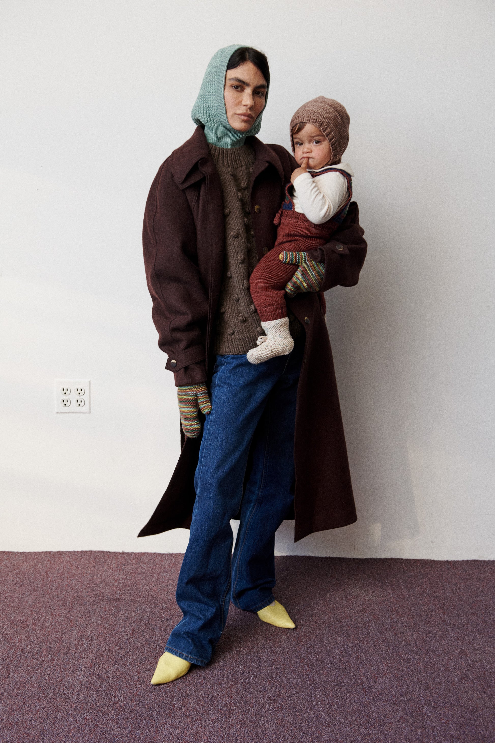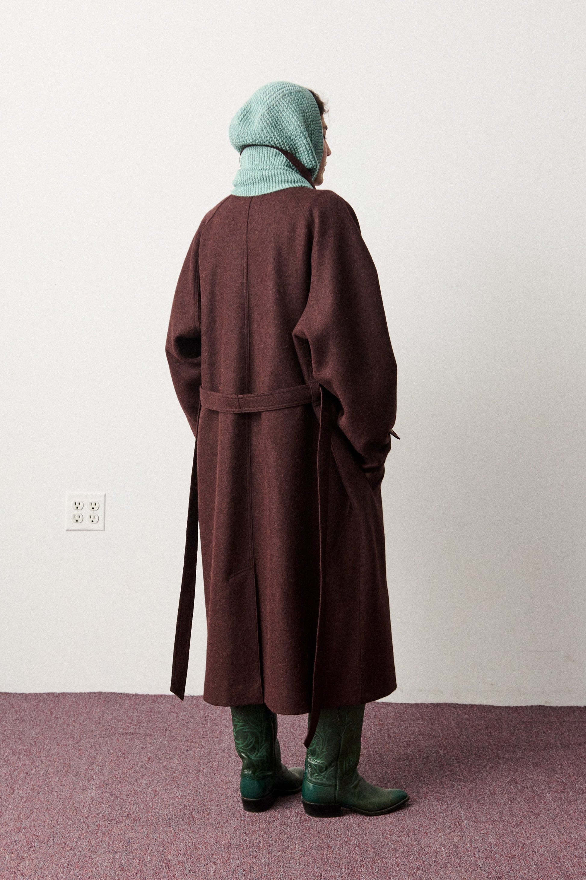A hand-knit balaclava in Merino wool, featuring ribbed trim.