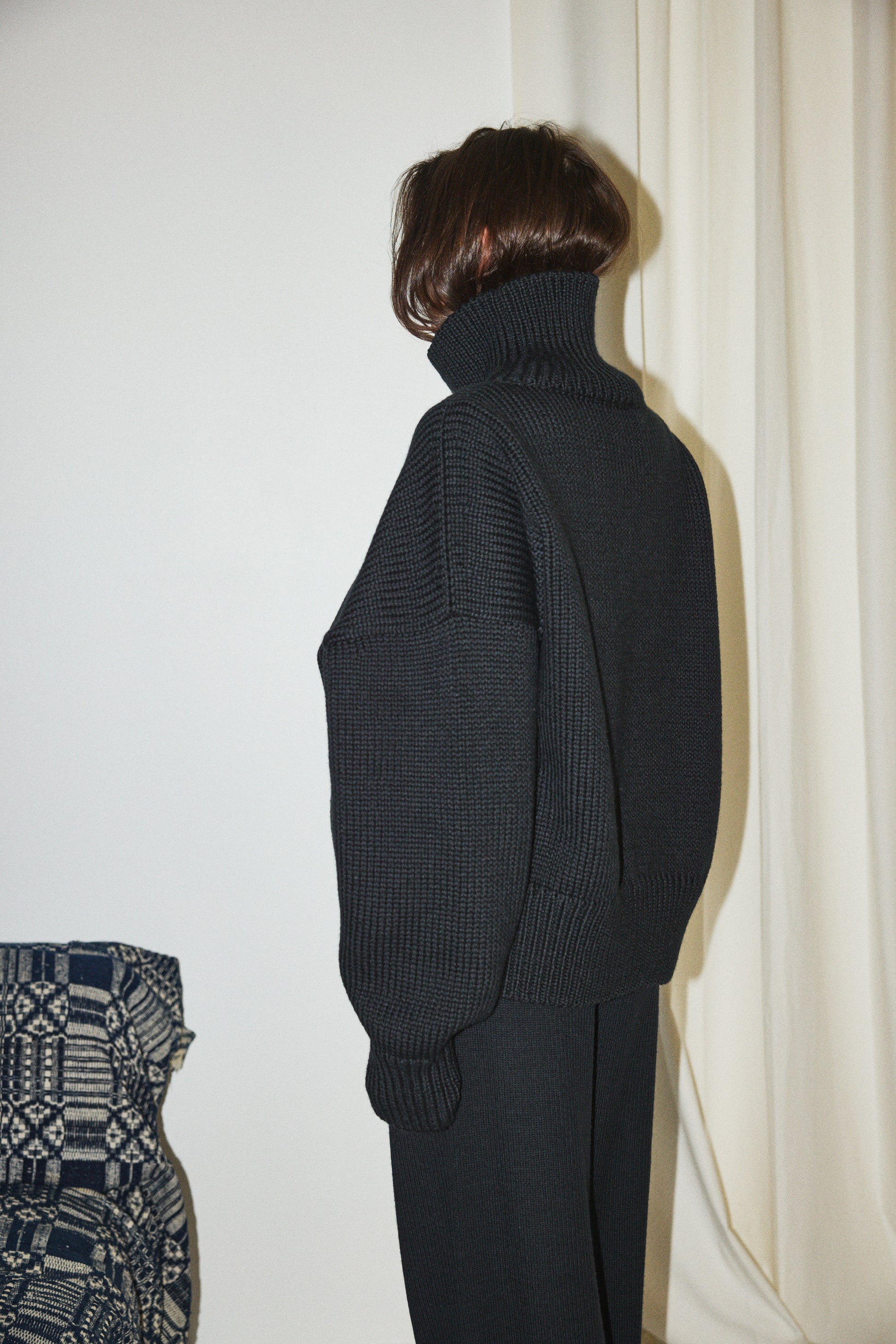 A turtleneck sweater in lofty 100% Highland wool, featuring a relaxed silhouette and tall ribbed neck, cuffs, and hem.