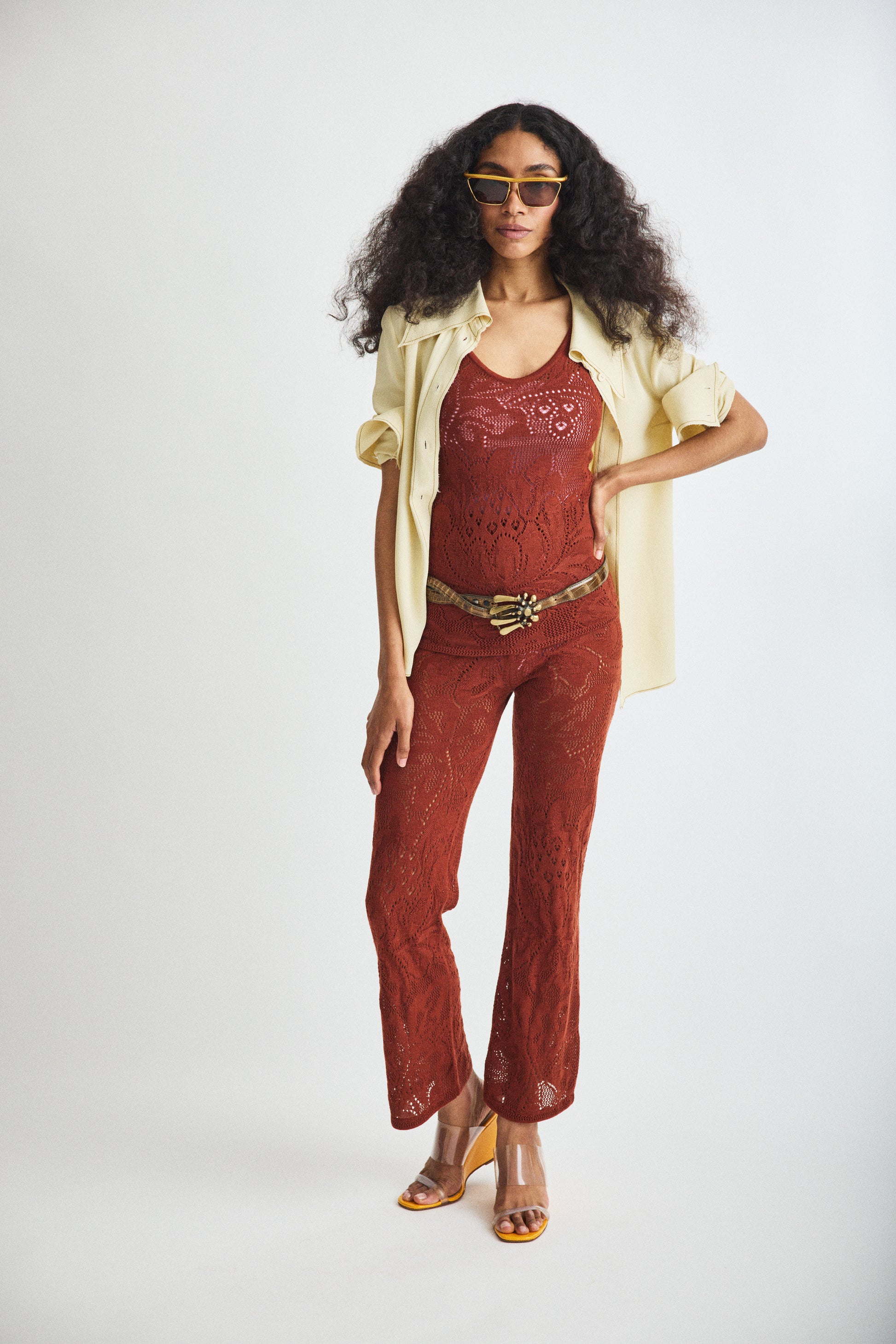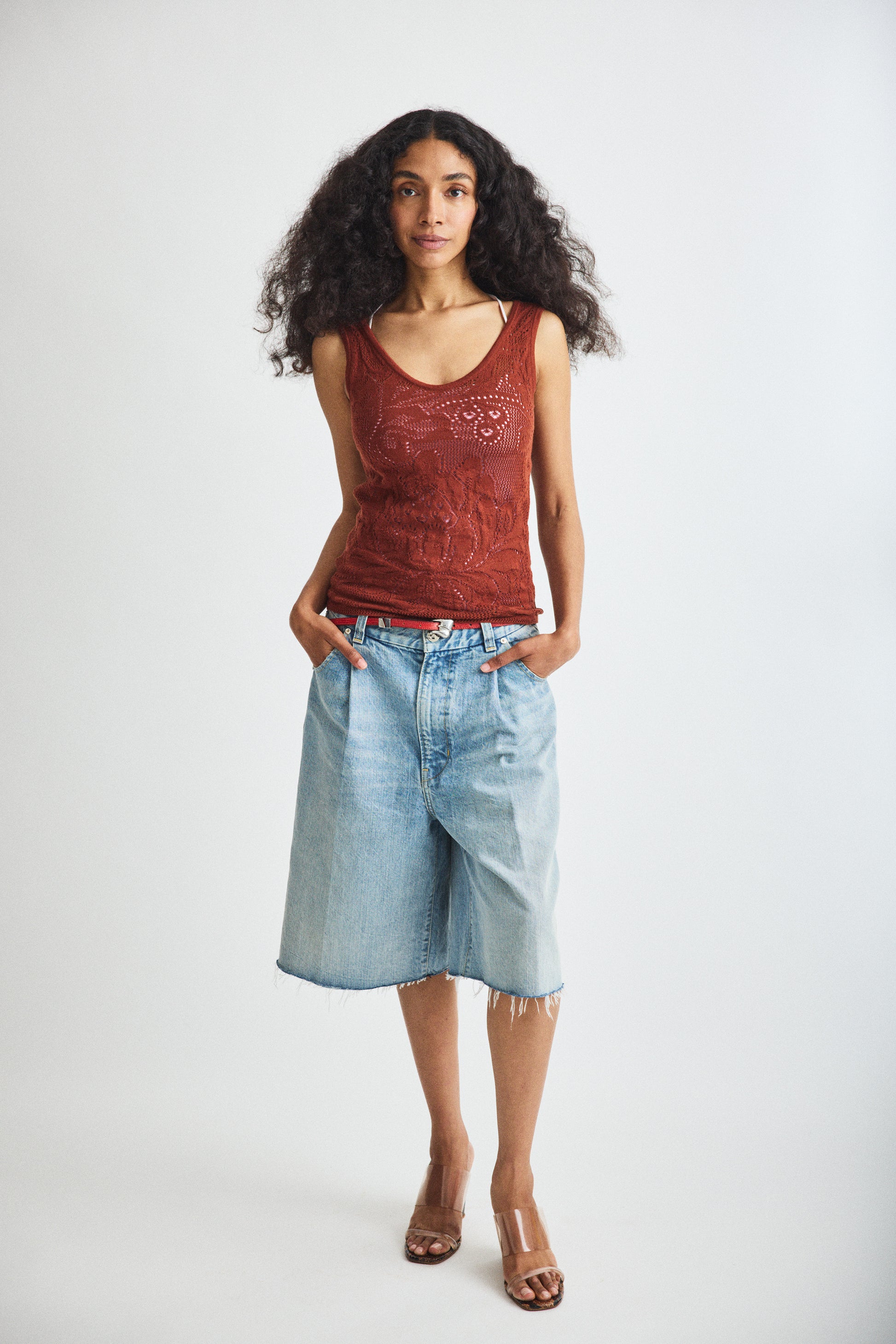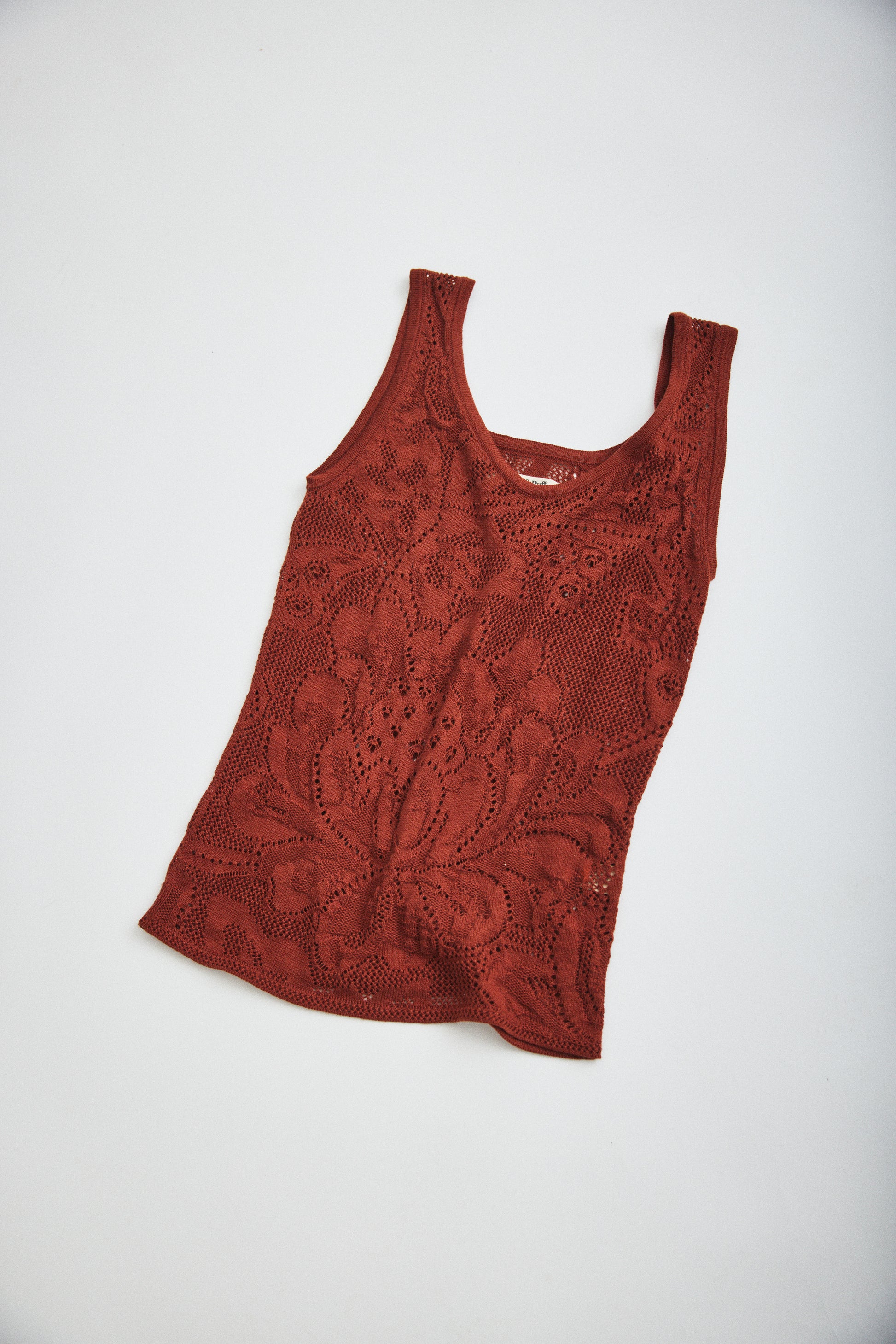 A slim-fit lace tank top in Pima cotton, featuring a placed pointelle lace pattern developed from our favorite vintage iterations.