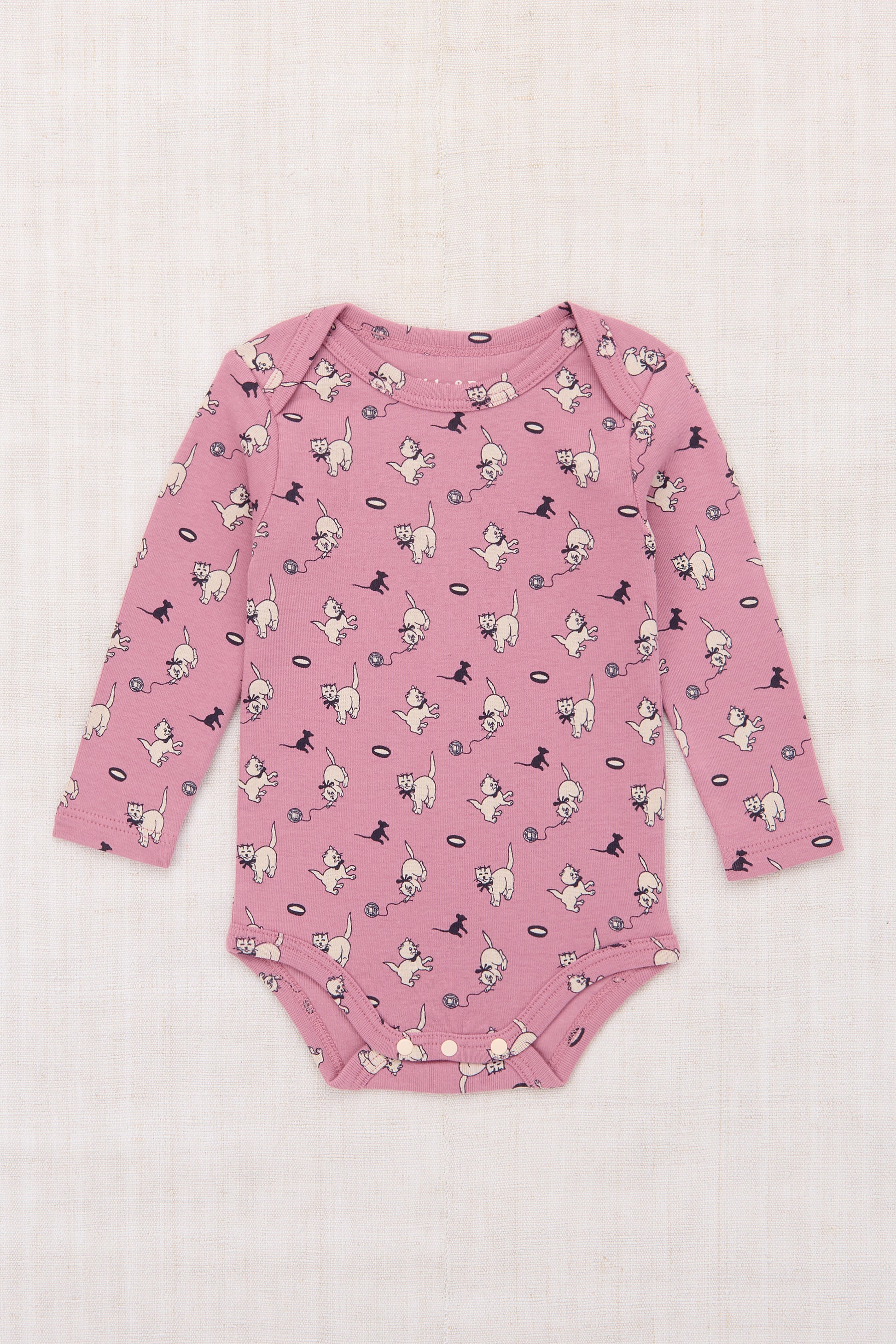 Baby Long Sleeve Lap Onesie - Antique Rose Cat & Mouse