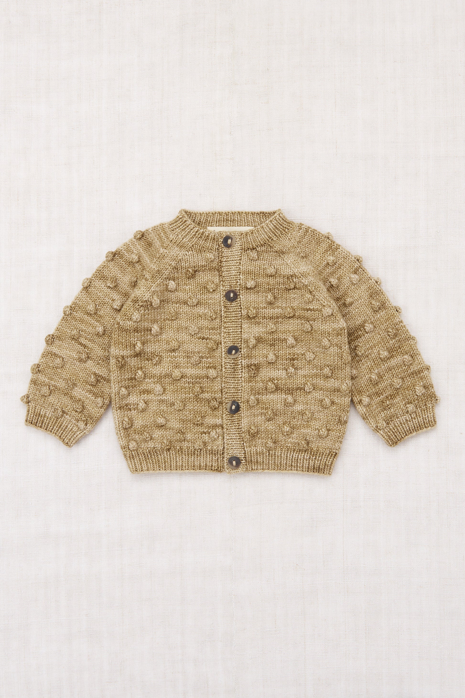 A roomy hand-knit cardigan in our signature all-over popcorn stitch. Featuring a cozy silhouette, ribbed trim and hem, and horn button closure.