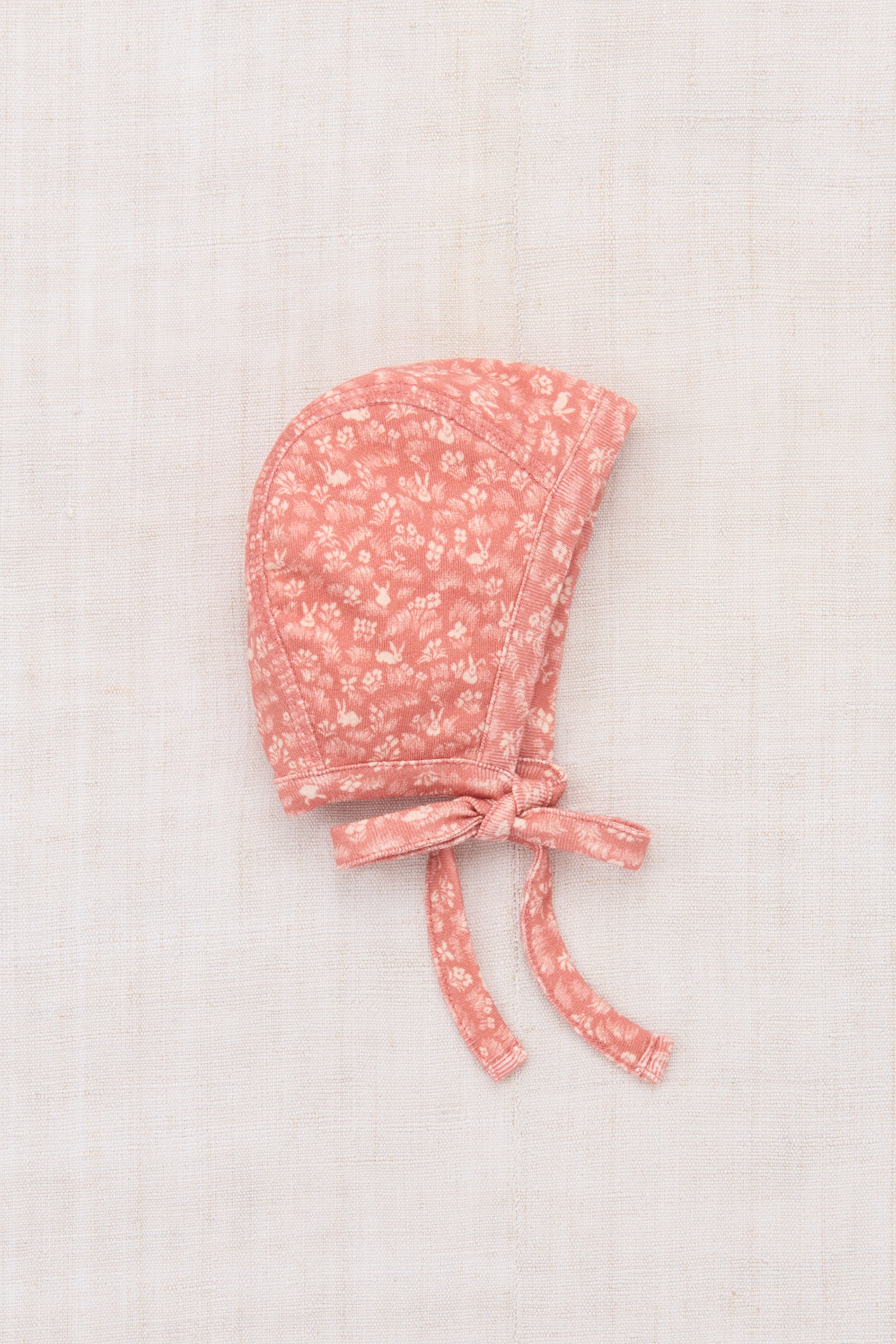 A classic bonnet hood in soft organic Pima cotton, featuring a tie closure.