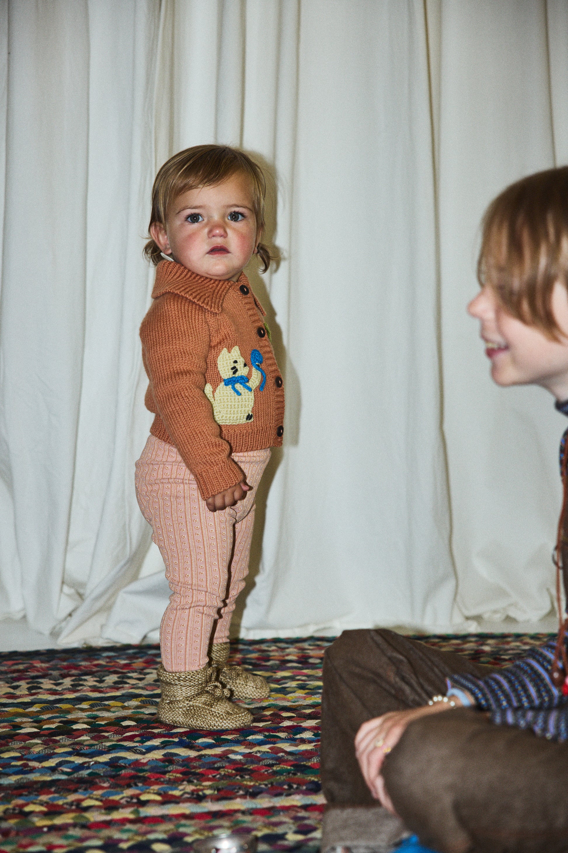 A vintage-style cardigan in a Merino wool knit, featuring a point collar, ribbed trim and hem, and horn button closure. Finished with hand-crocheted motifs. The perfect balance of roomy and tailored.