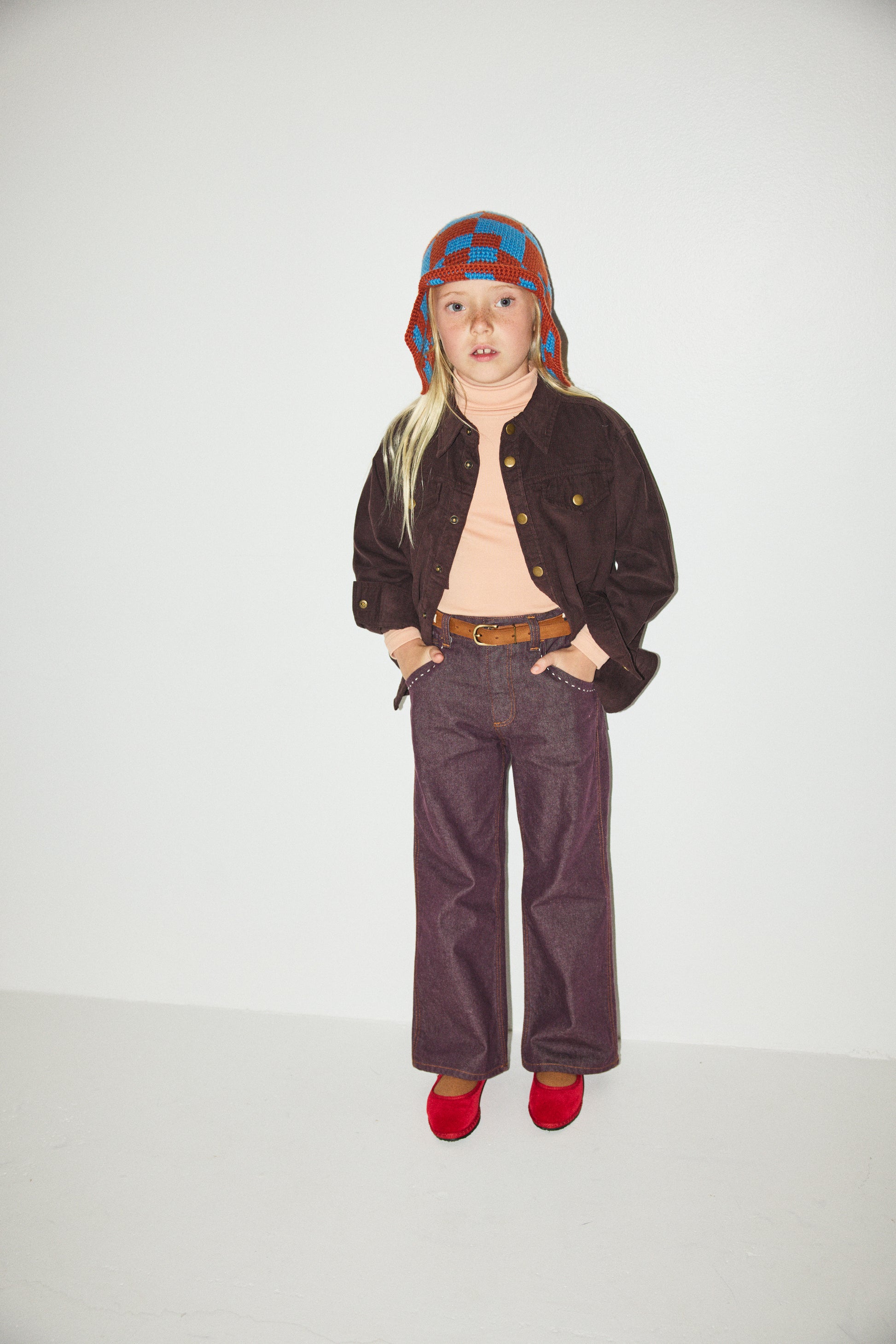 Checkered Crochet Rover Cap - Chili Spice