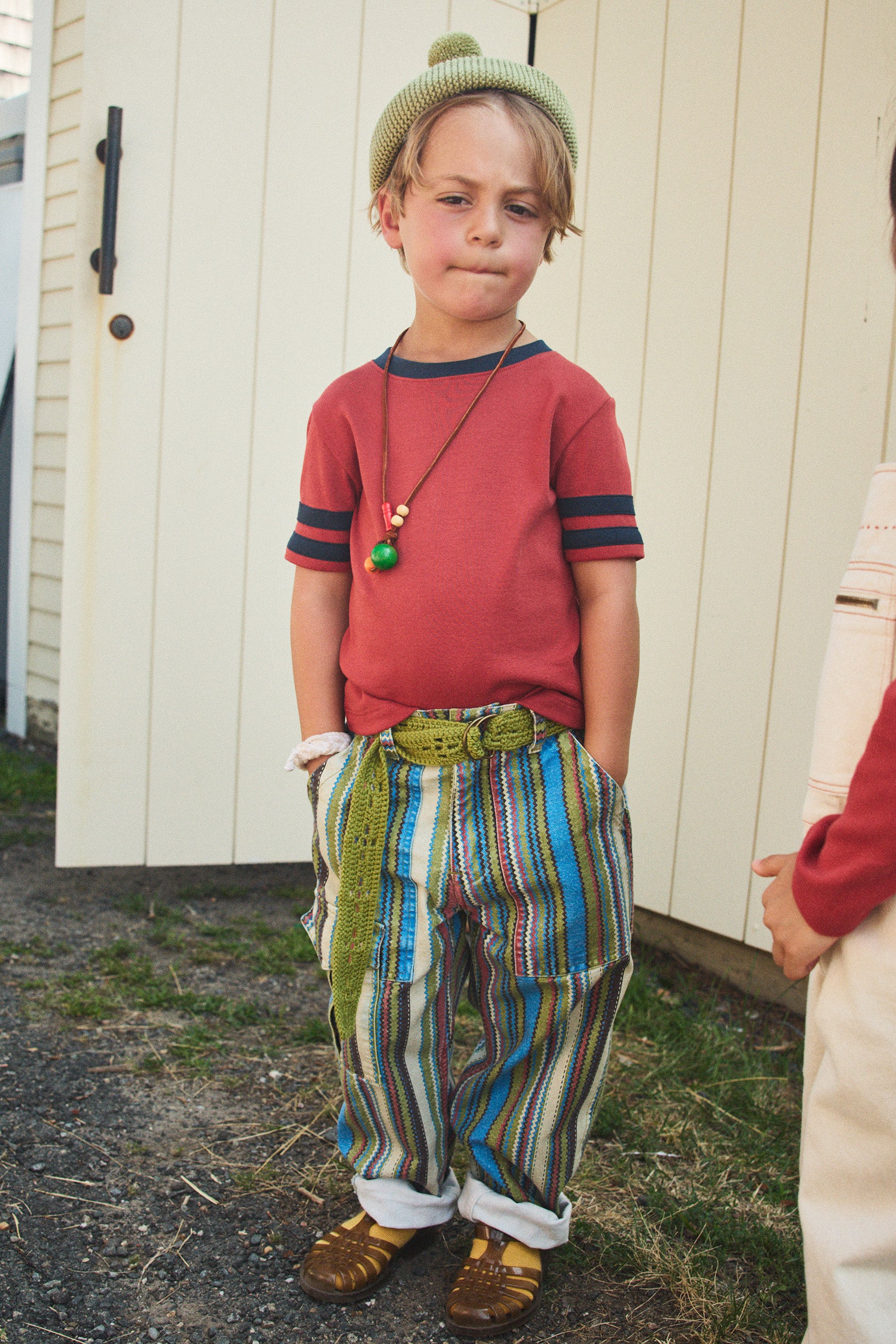 Our denim is 100% cotton, with thoughtful touches like contrast topstitching, hand-tacked embroidery instead of rivets for softness, and adjustable waistbands and straps for long wear and the perfect fit. Our denim has no stretch — yet has a naturally soft hand-feel and is effortlessly versatile.