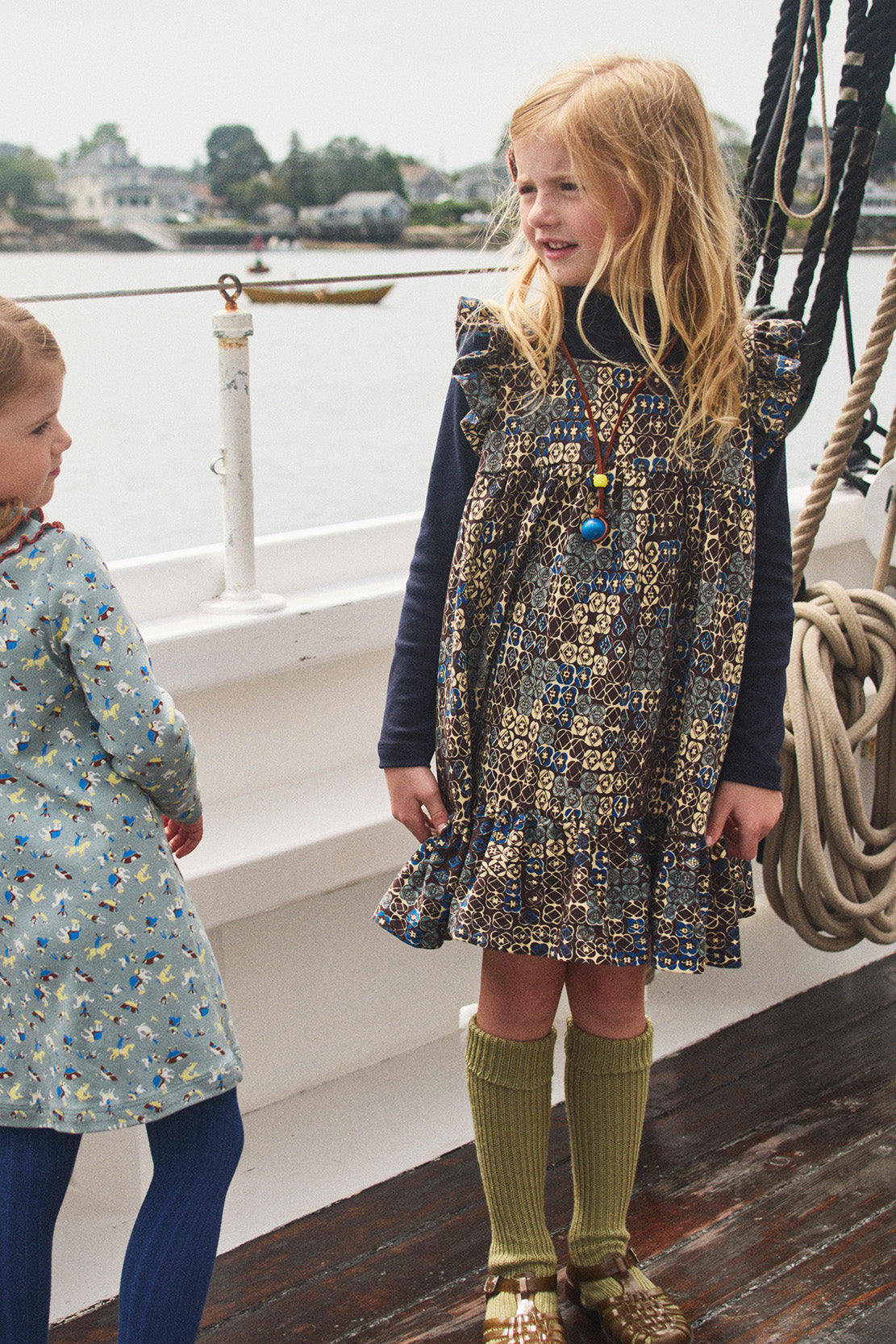 A babydoll-style dress in organic Pima cotton jersey, featuring ruffles along the straps and hem. Our Pima cotton jersey is mid-weight and soft but has some structure to it.
