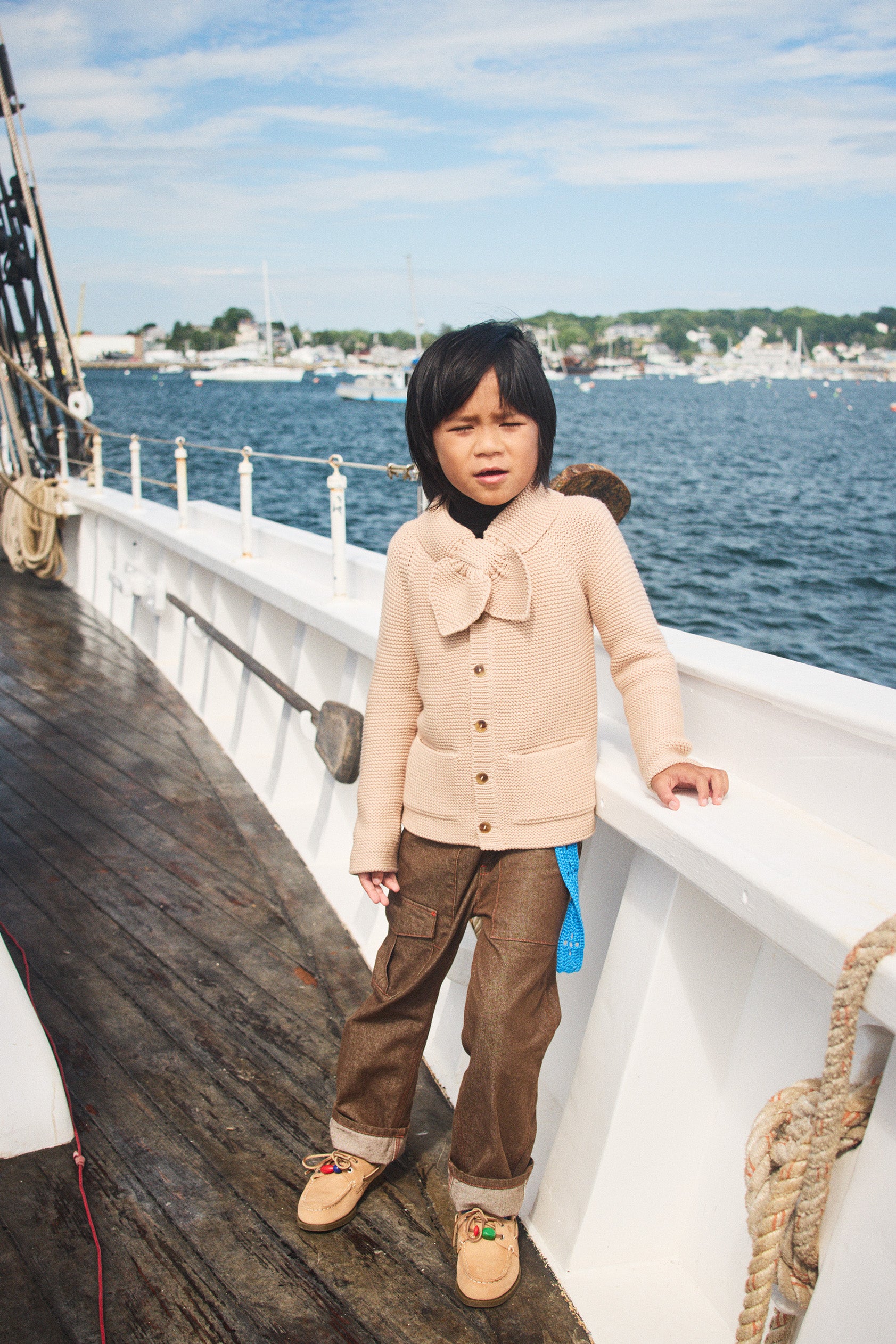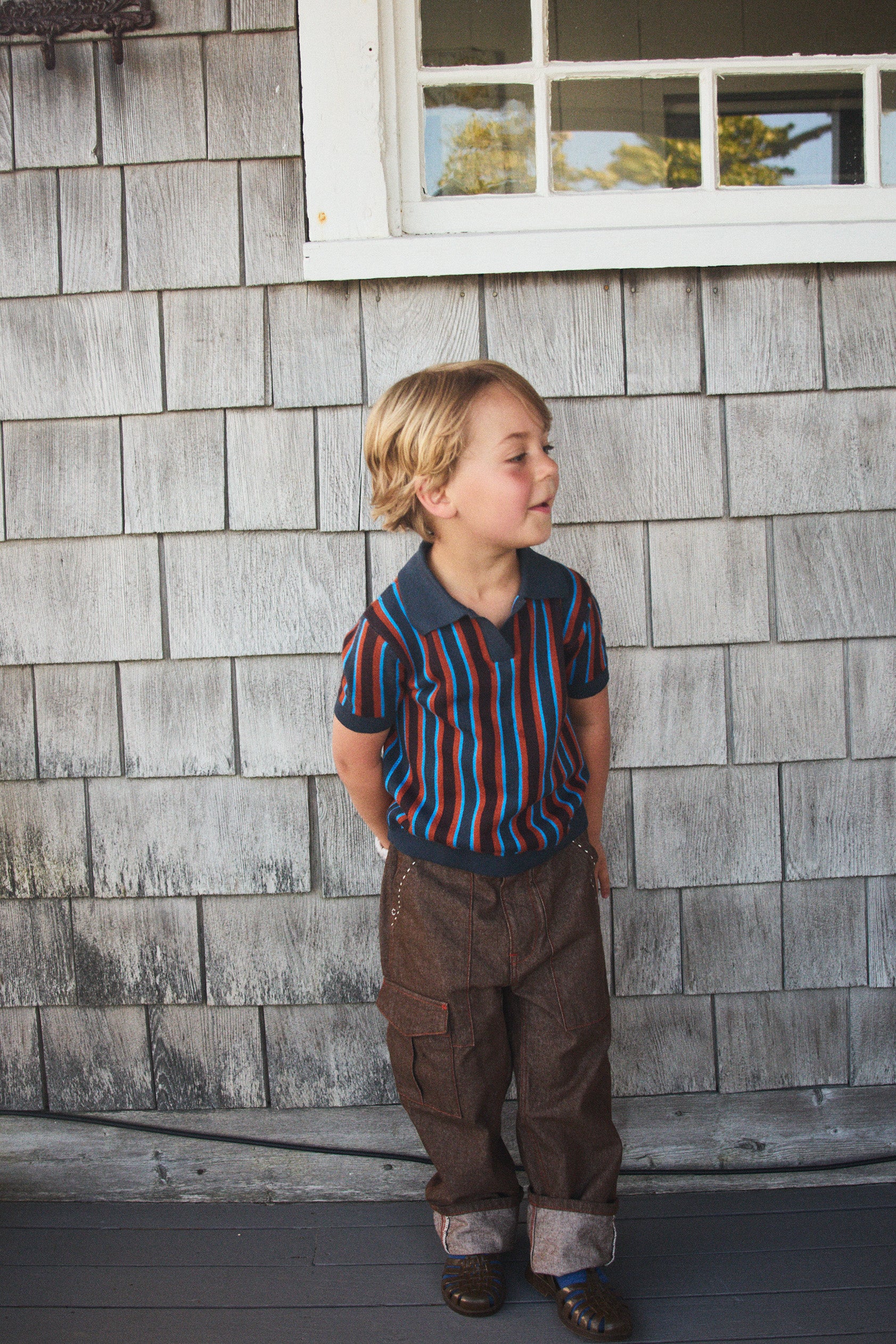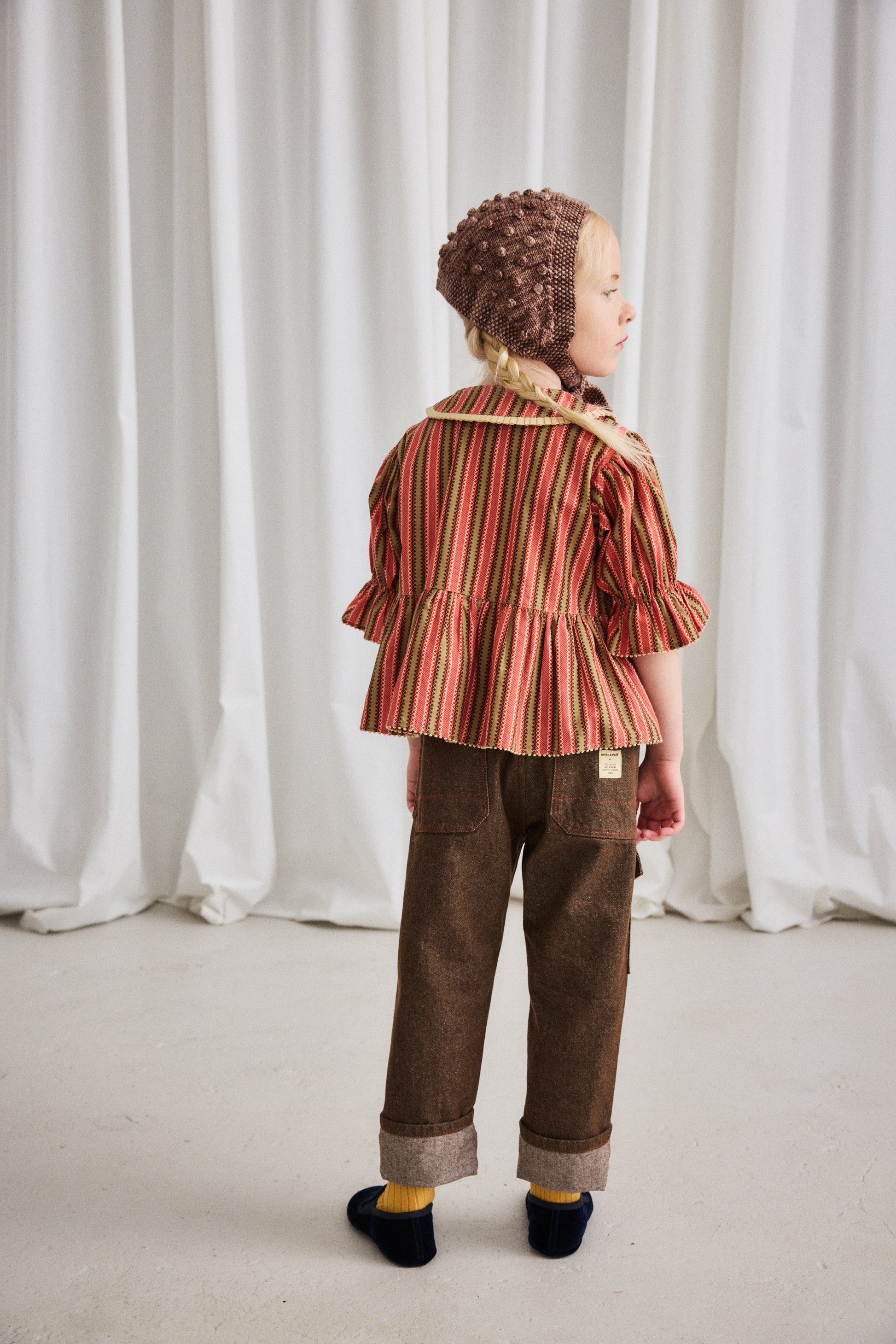 Our denim is 100% cotton, with thoughtful touches like contrast topstitching, hand-tacked embroidery instead of rivets for softness, and adjustable waistbands and straps for long wear and the perfect fit. Our denim has no stretch — yet has a naturally soft hand-feel and is effortlessly versatile.
