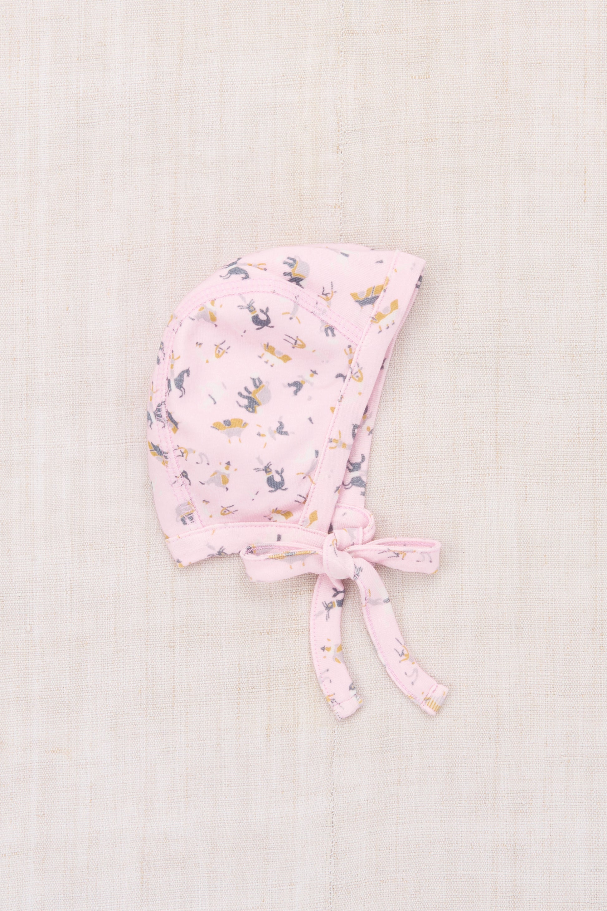 A classic bonnet hood in soft organic Pima cotton, featuring a tie closure.