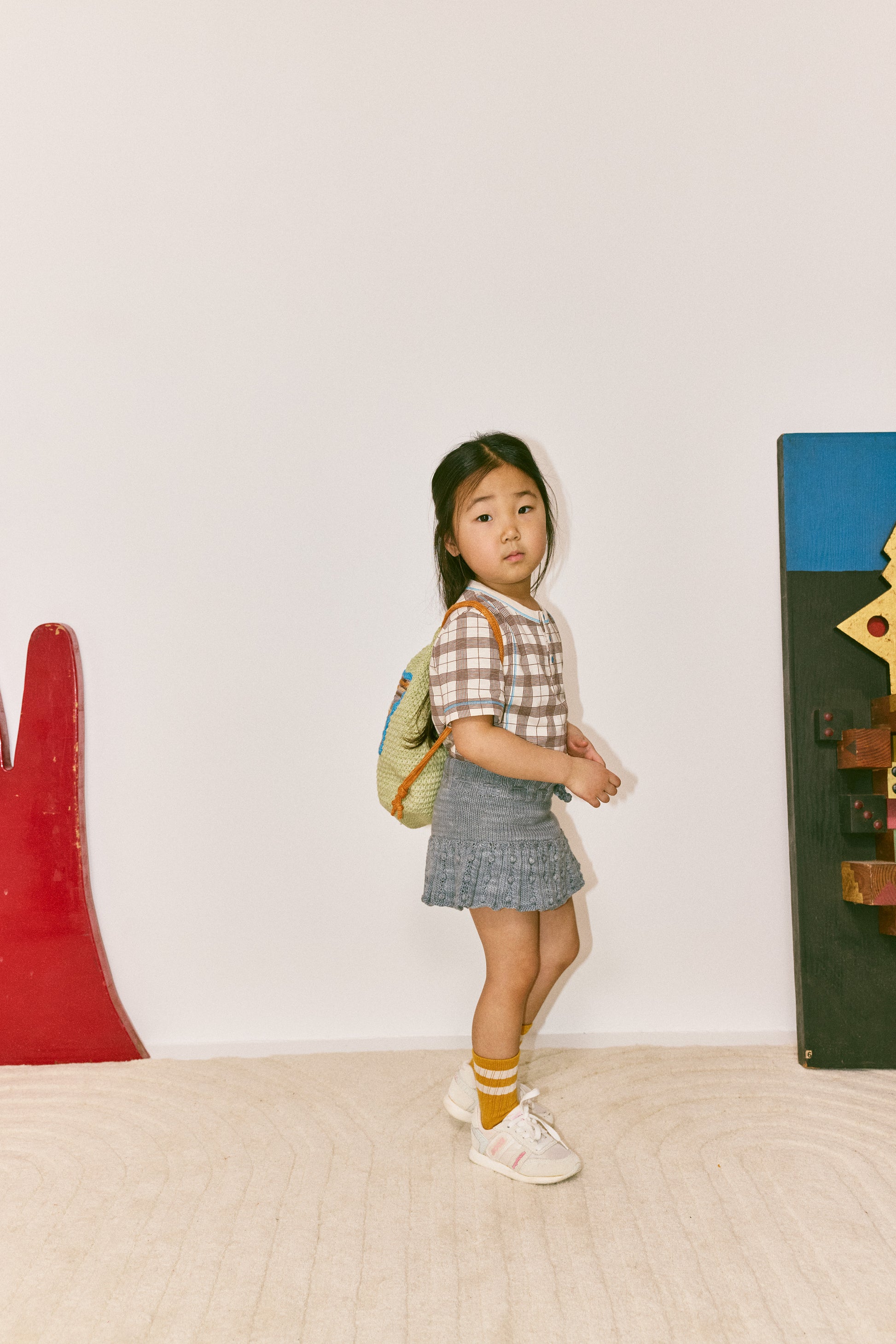 Our denim is 100% cotton, with thoughtful touches like contrast topstitching, hand-tacked embroidery instead of rivets for softness, and adjustable waistbands and straps for long wear and the perfect fit. Our denim has no stretch — yet has a naturally soft hand-feel and is effortlessly versatile.