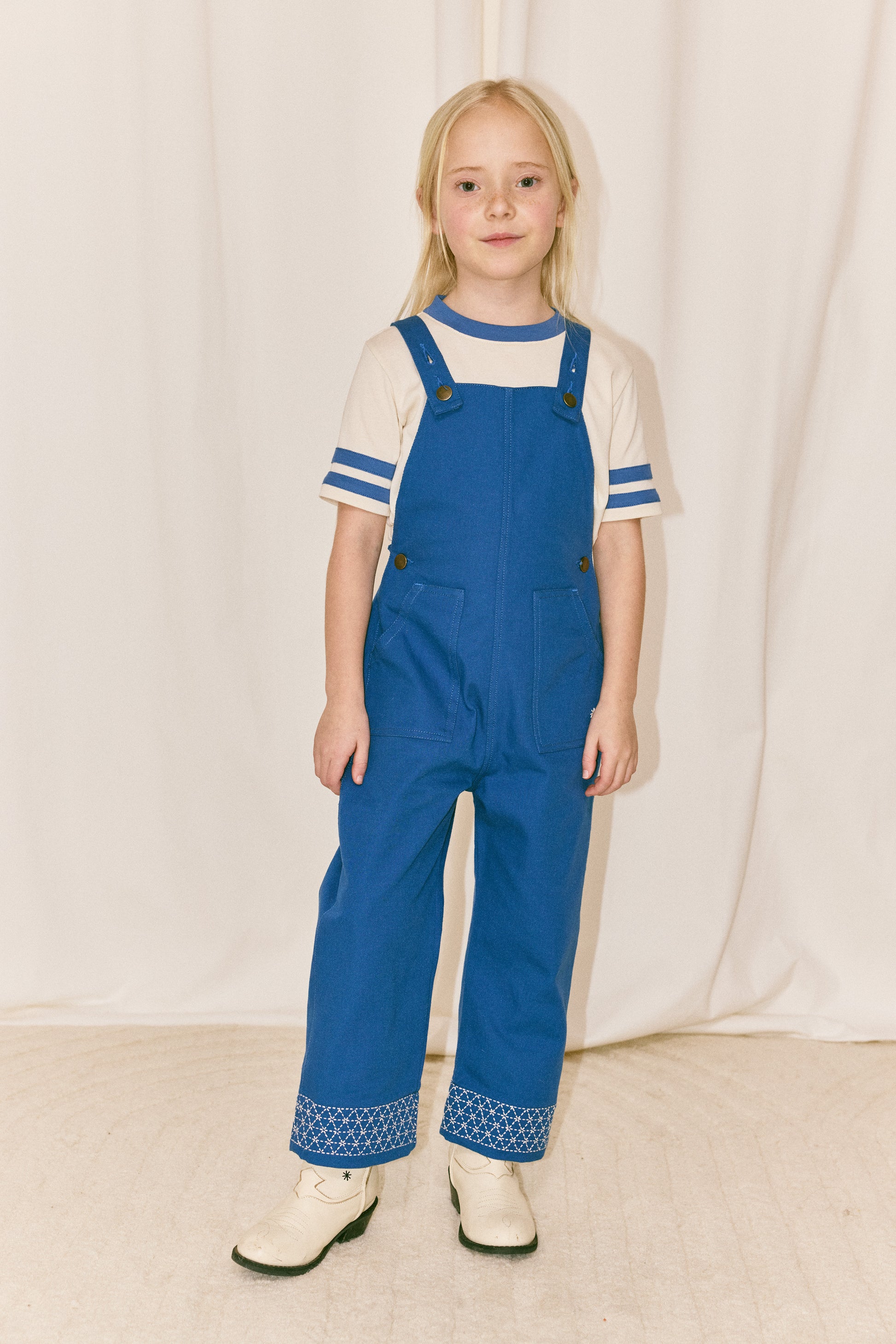Our denim is 100% cotton, with thoughtful touches like contrast topstitching, hand-tacked embroidery instead of rivets for softness, and adjustable waistbands and straps for long wear and the perfect fit. Our denim has no stretch — yet has a naturally soft hand-feel and is effortlessly versatile.