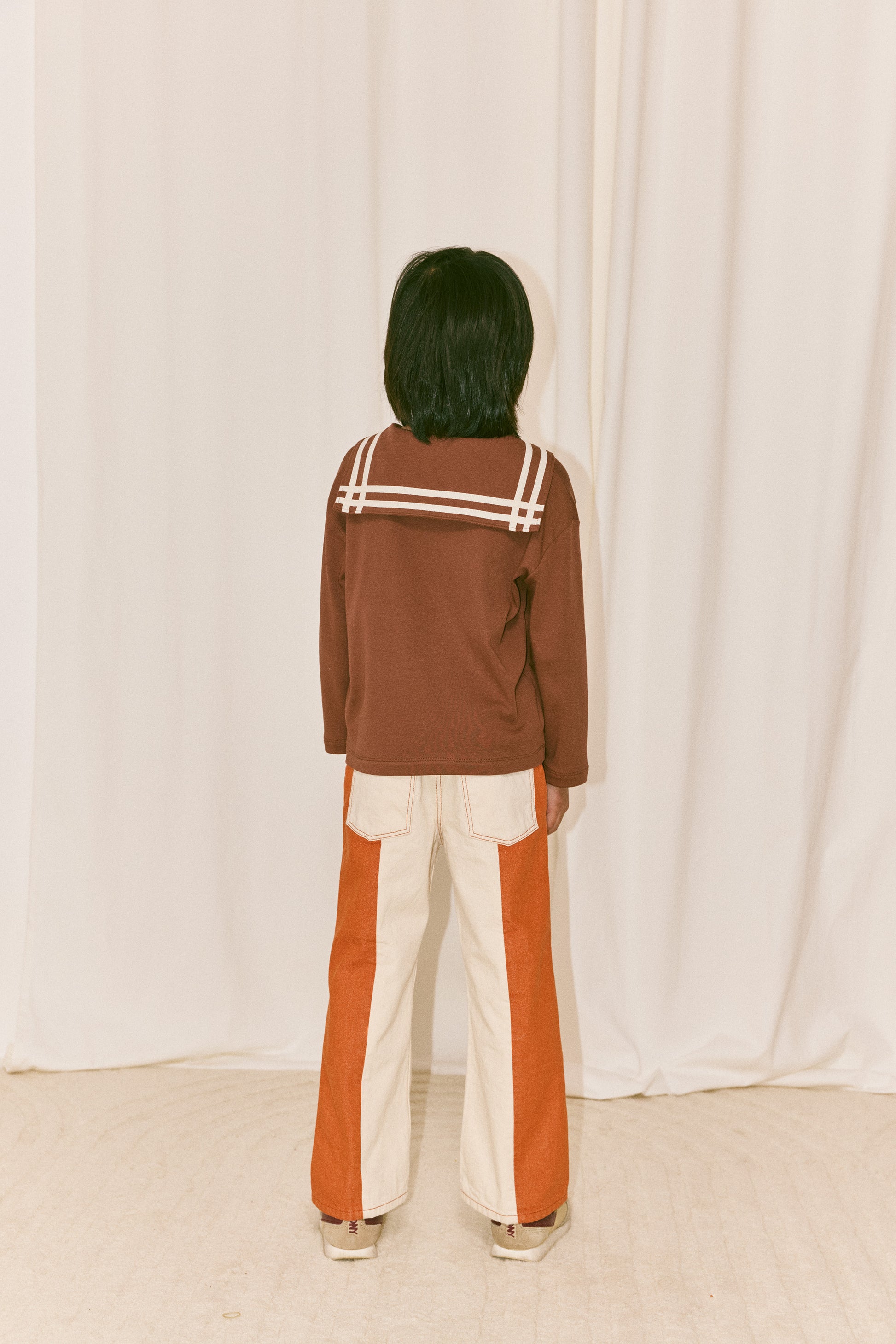Our denim is 100% cotton, with thoughtful touches like contrast topstitching, hand-tacked embroidery instead of rivets for softness, and adjustable waistbands and straps for long wear and the perfect fit. Our denim has no stretch — yet has a naturally soft hand-feel and is effortlessly versatile.