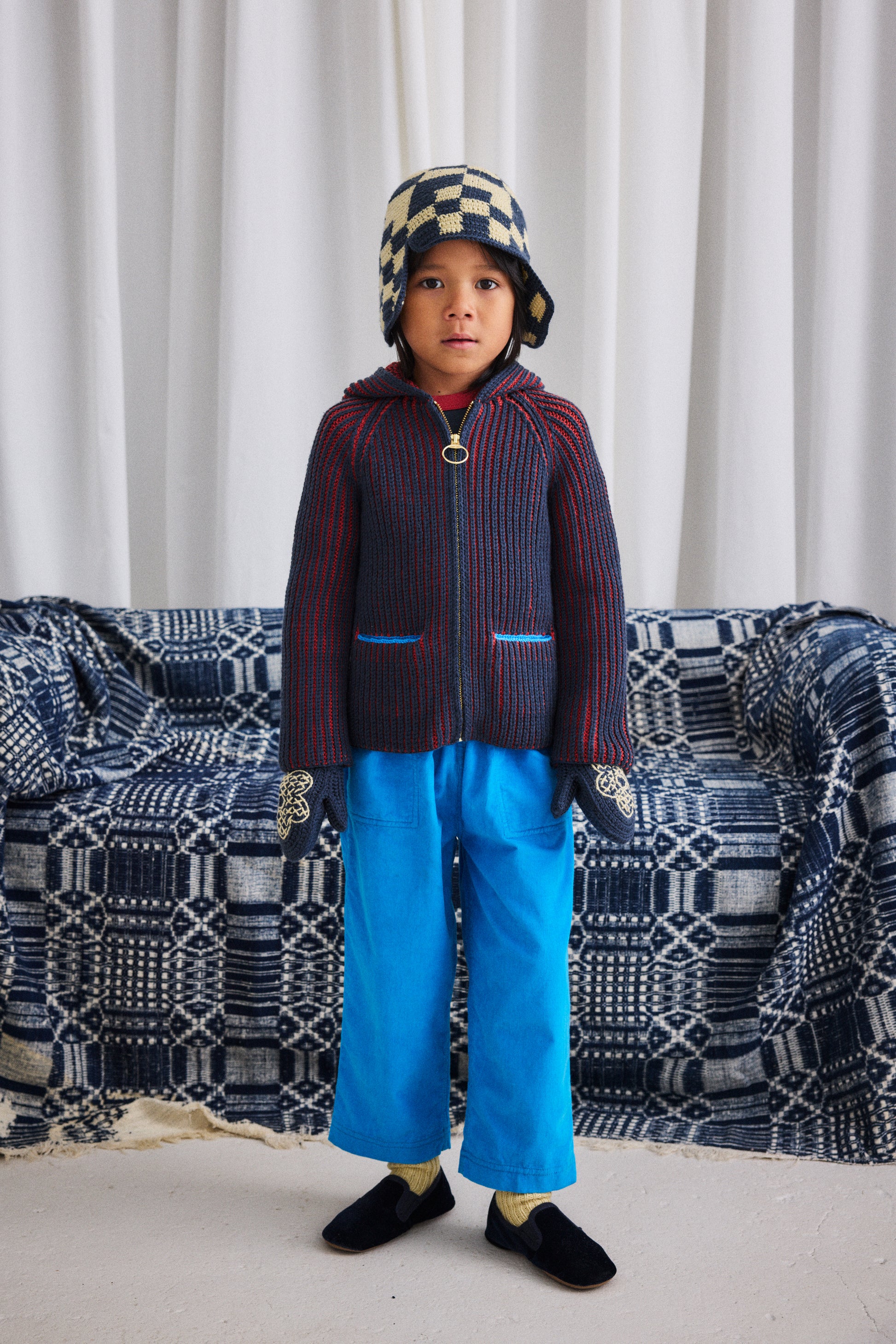 Our denim is 100% cotton, with thoughtful touches like contrast topstitching, hand-tacked embroidery instead of rivets for softness, and adjustable waistbands and straps for long wear and the perfect fit. Our denim has no stretch — yet has a naturally soft hand-feel and is effortlessly versatile.