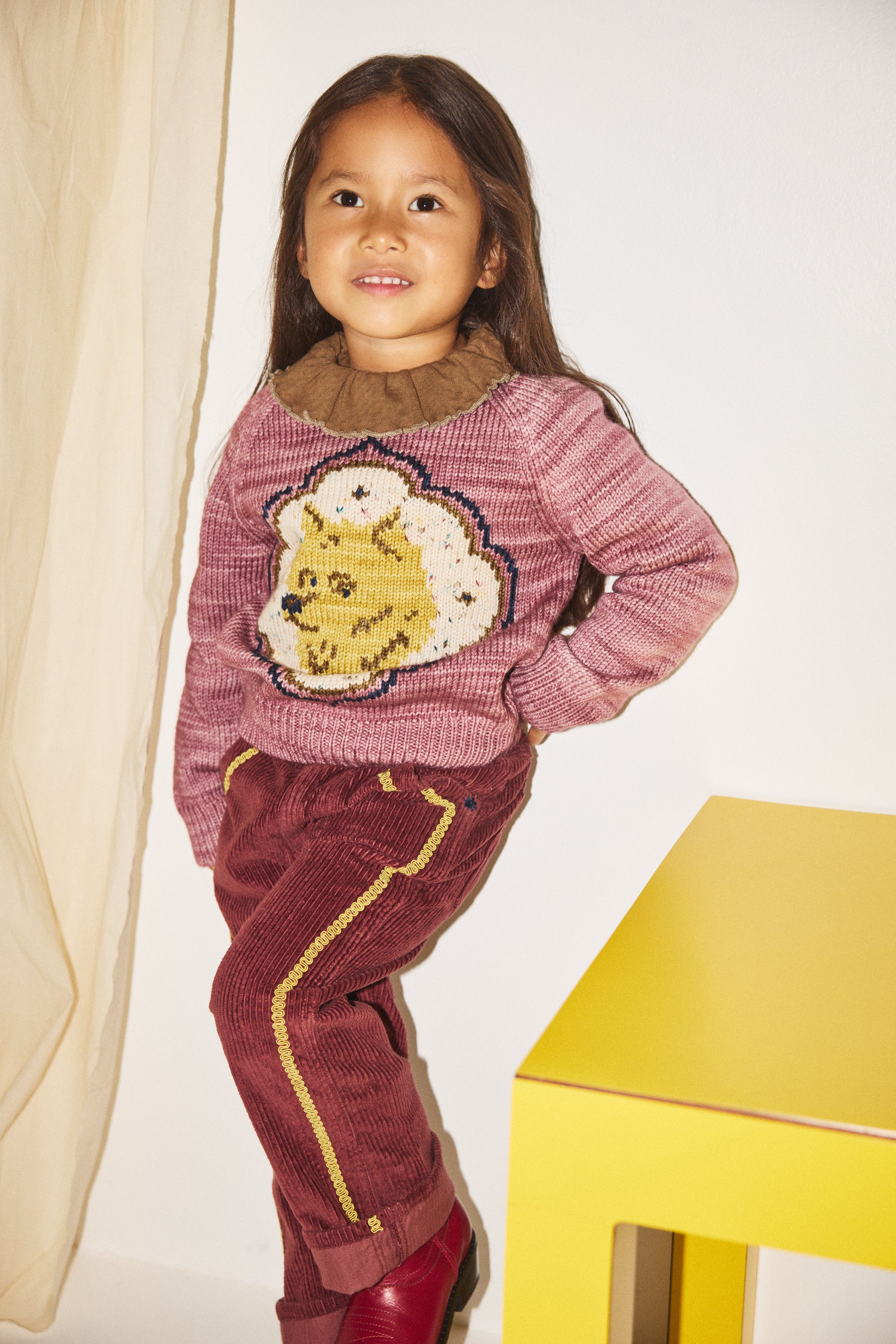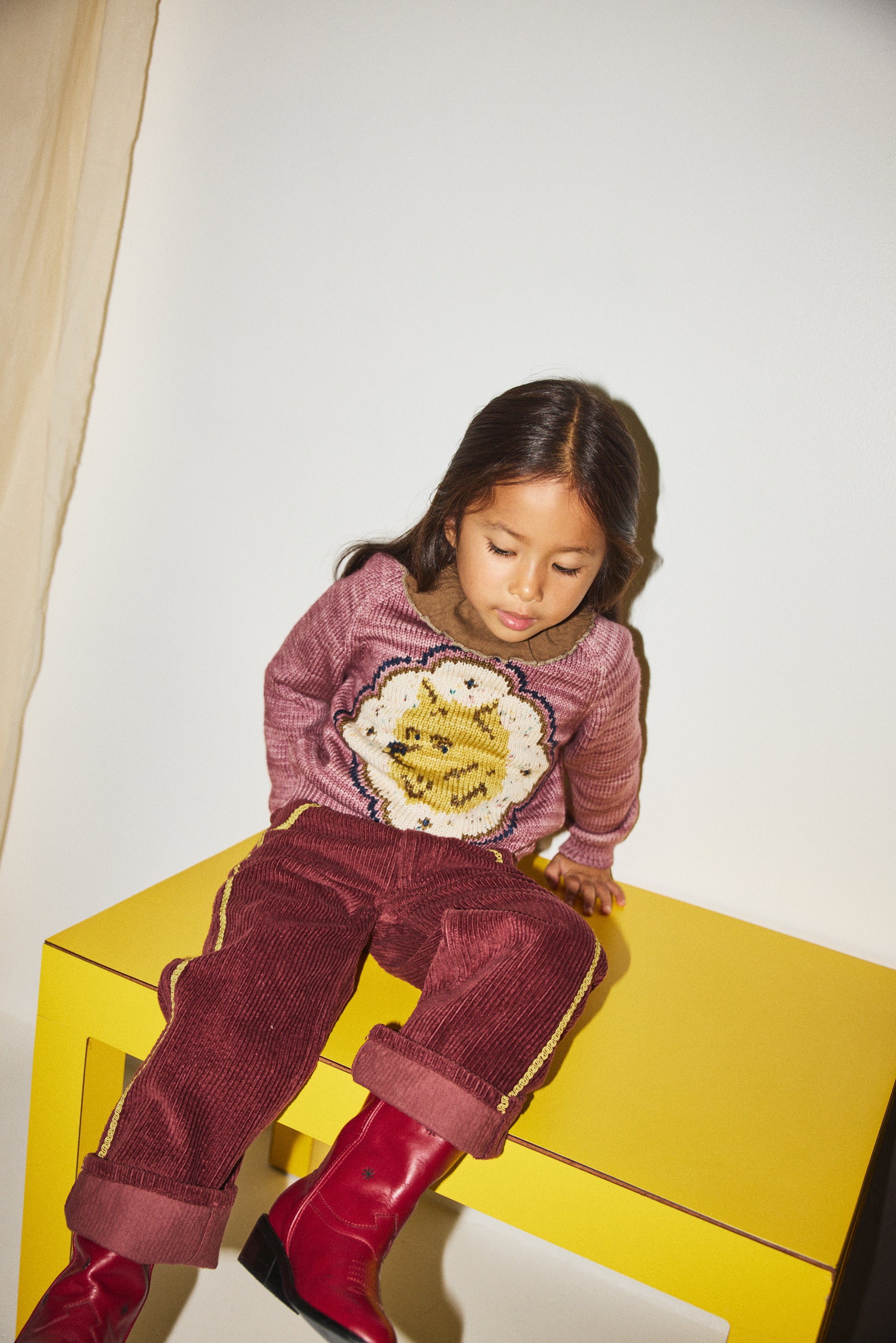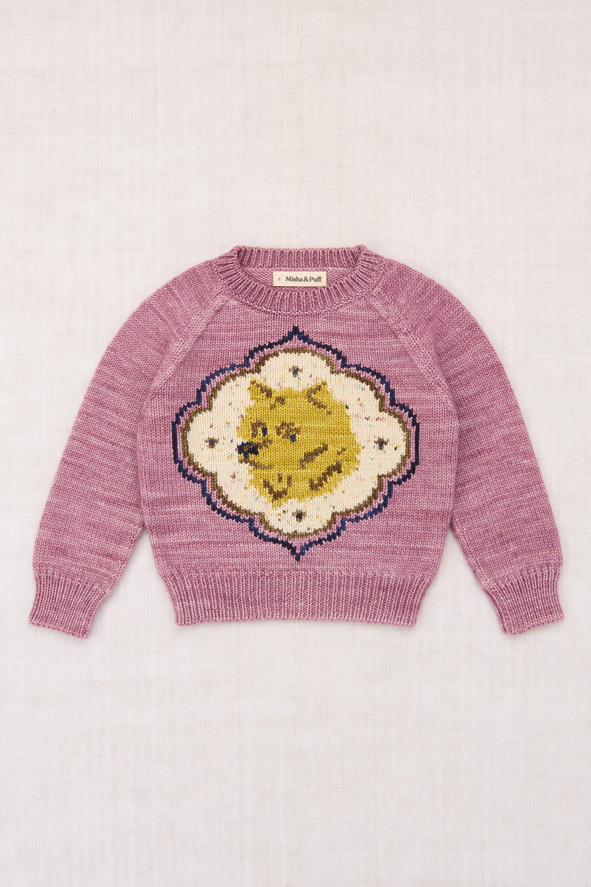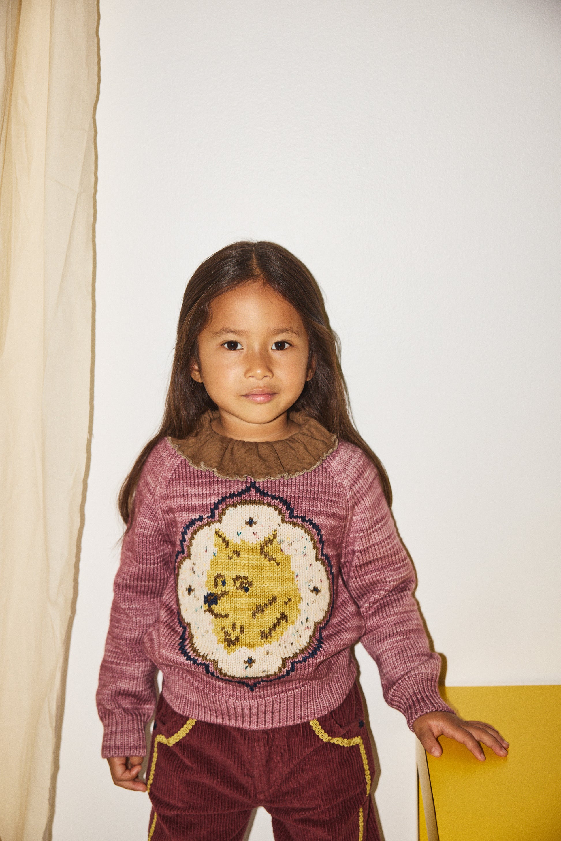 A classic crewneck sweater in Merino wool, featuring a slightly roomy shape, ribbed cuffs and hem, and a special dog portrait intarsia on the front.