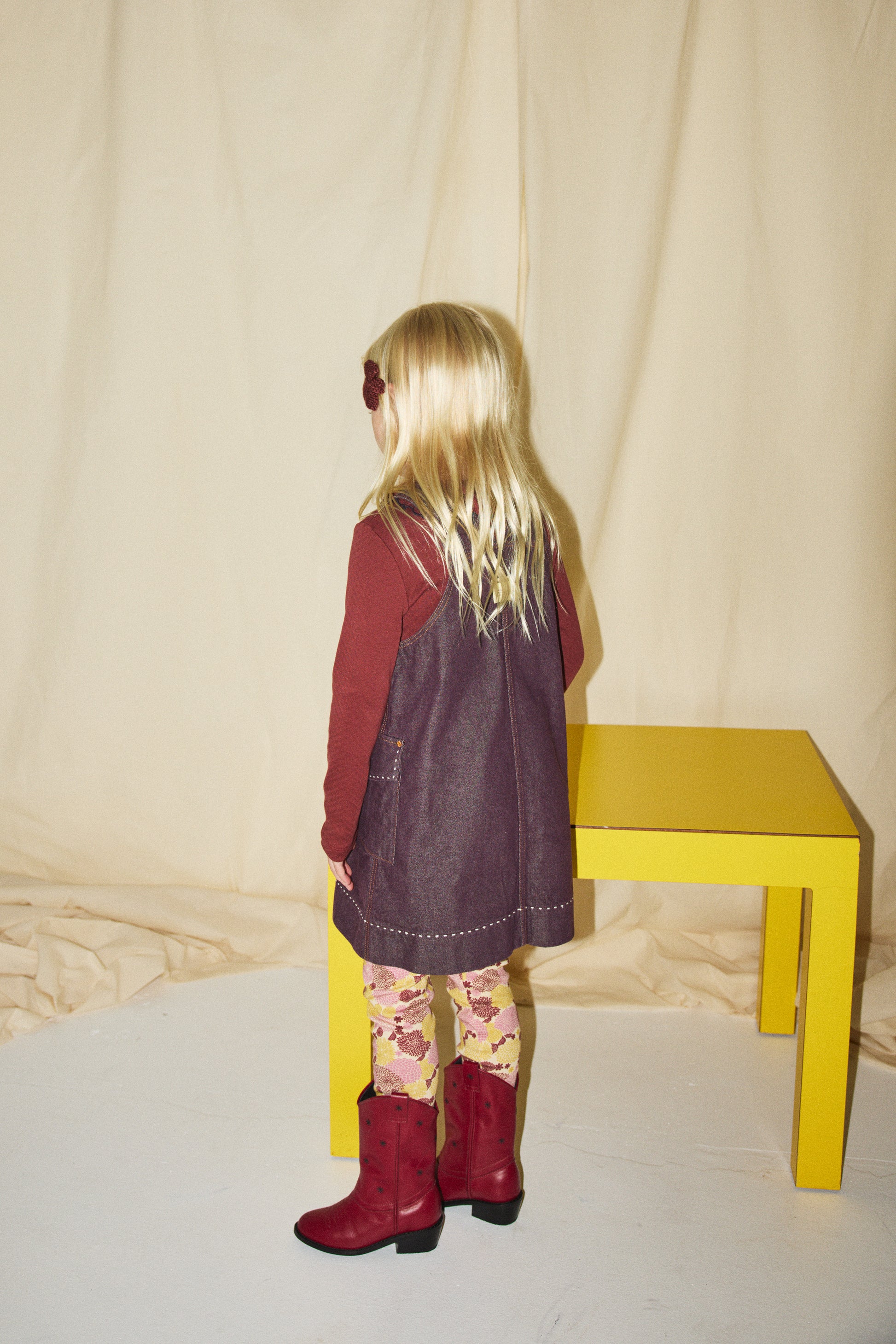 Our denim is 100% cotton, with thoughtful touches like contrast topstitching, hand-tacked embroidery instead of rivets for softness, and adjustable waistbands and straps for long wear and the perfect fit. Our denim has no stretch — yet has a naturally soft hand-feel and is effortlessly versatile.