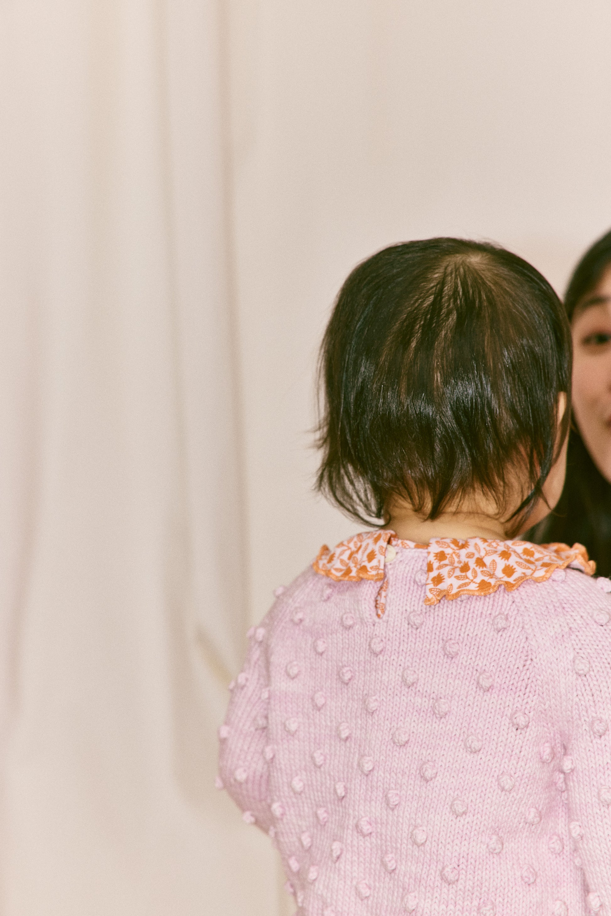 Misha & Puff’s signature hand-knit sweater in Pima cotton for warmer seasons, featuring an all-over popcorn stitch, rolled bateau neckline, ribbed cuffs and hem, and corozo button keyhole closure at the back neck.