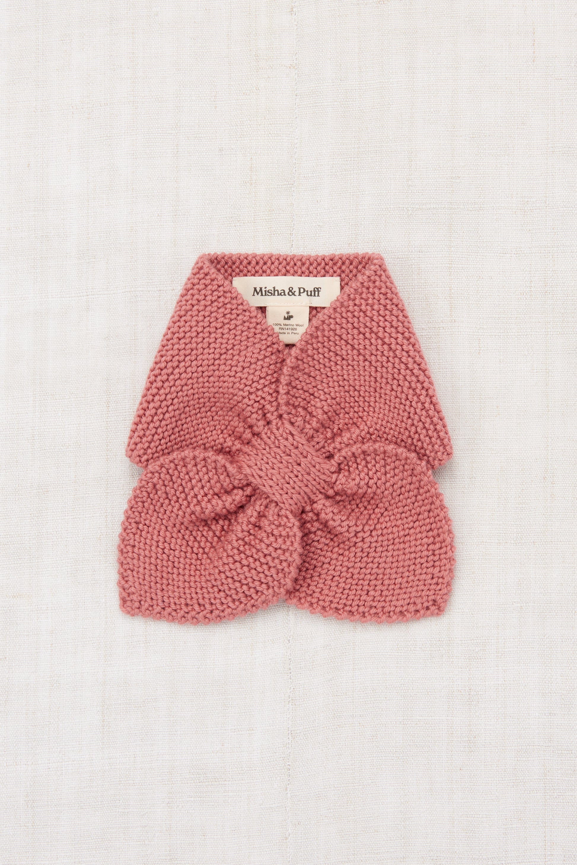A hand-knit scarf in Merino wool, with a pull-through kerchief closure. Can be worn as a hood or over a hood to keep hoods in place — the perfect complement to any outfit.