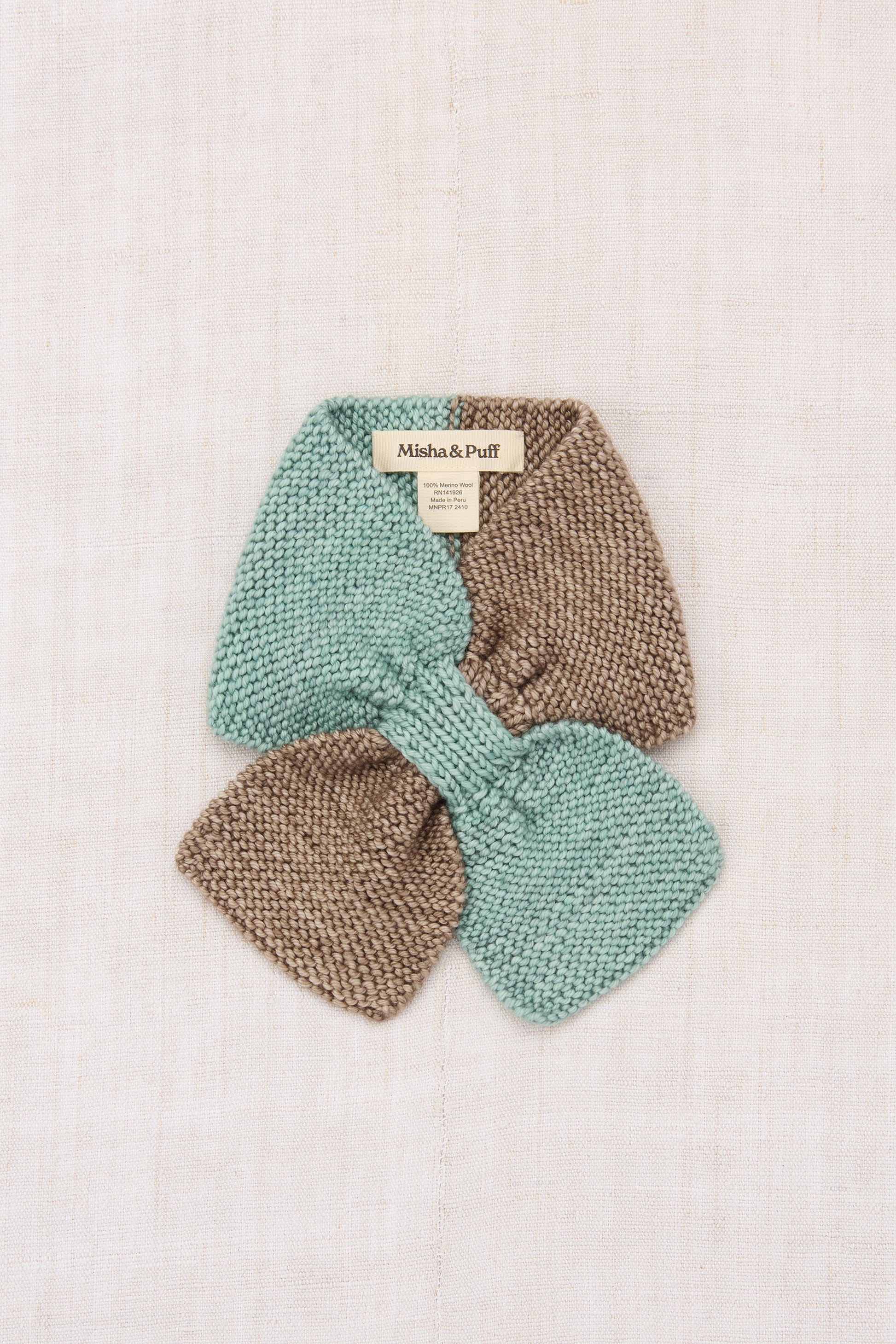 A hand-knit scarf in Merino wool, featuring easy pull-through closure. Can be worn over a hood to keep hoods in place and keeps heads and necks warm. The perfect complement to any outfit.
