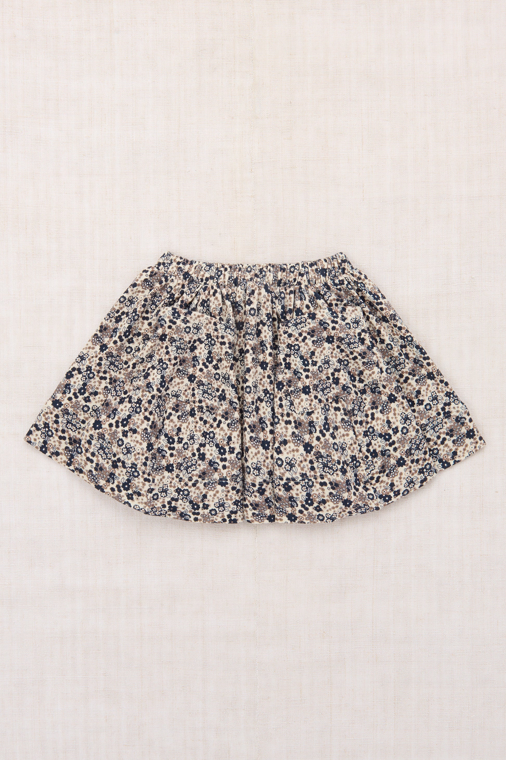 A twirly pull-on skirt in organic Pima cotton, featuring a gathered elastic waistband and front patch pockets for added style and functionality.