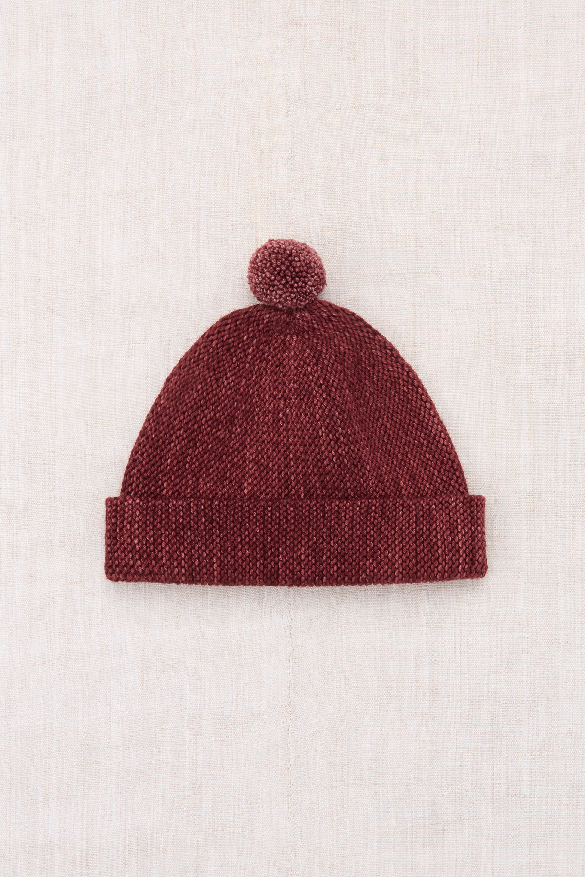 A classic hat in a Merino wool knit, with an adjustable brim and a pom-pom top. The brim comes unrolled — wear it rolled, cuffed, or loose.
