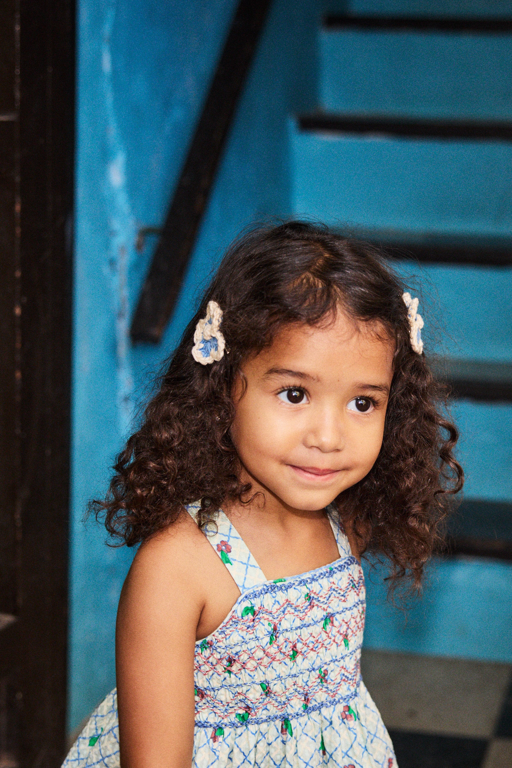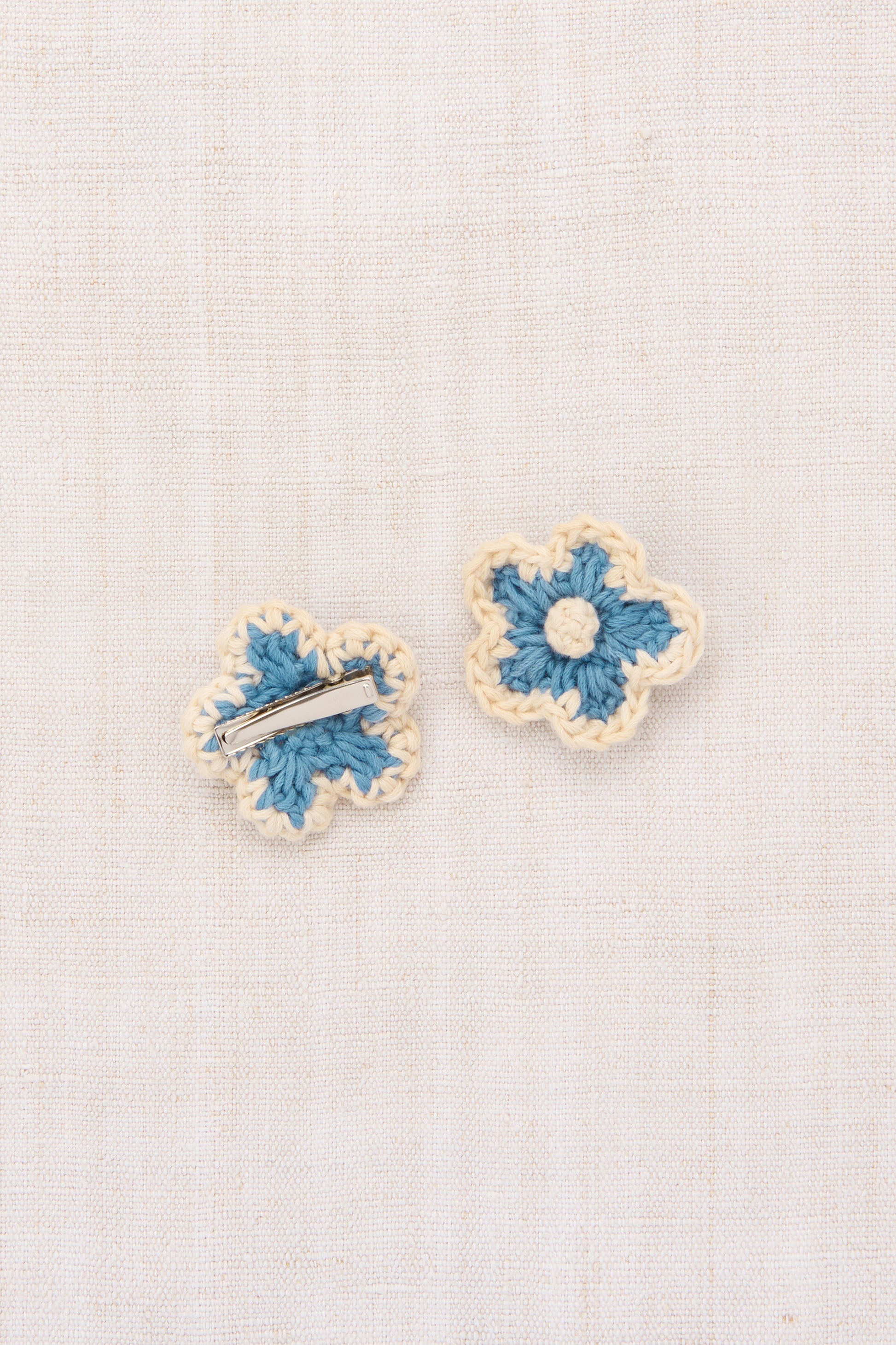 A hand-crocheted flower clip set in Pima cotton, mounted on alligator clips. A little pop of embellishment for any look.