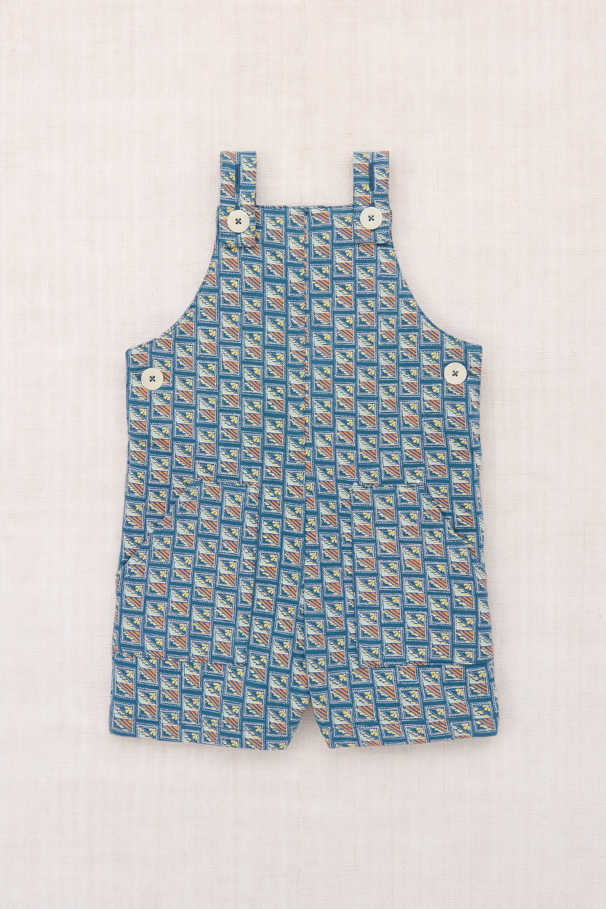 A vintage-inspired overall short in a soft organic Pima cotton French terry, with adjustable straps and hip closure secured by corozo buttons, and patch pocket. This French terry is slightly thicker than our ribbed Pima cotton styles, with a bit more structure like classic sweats.
