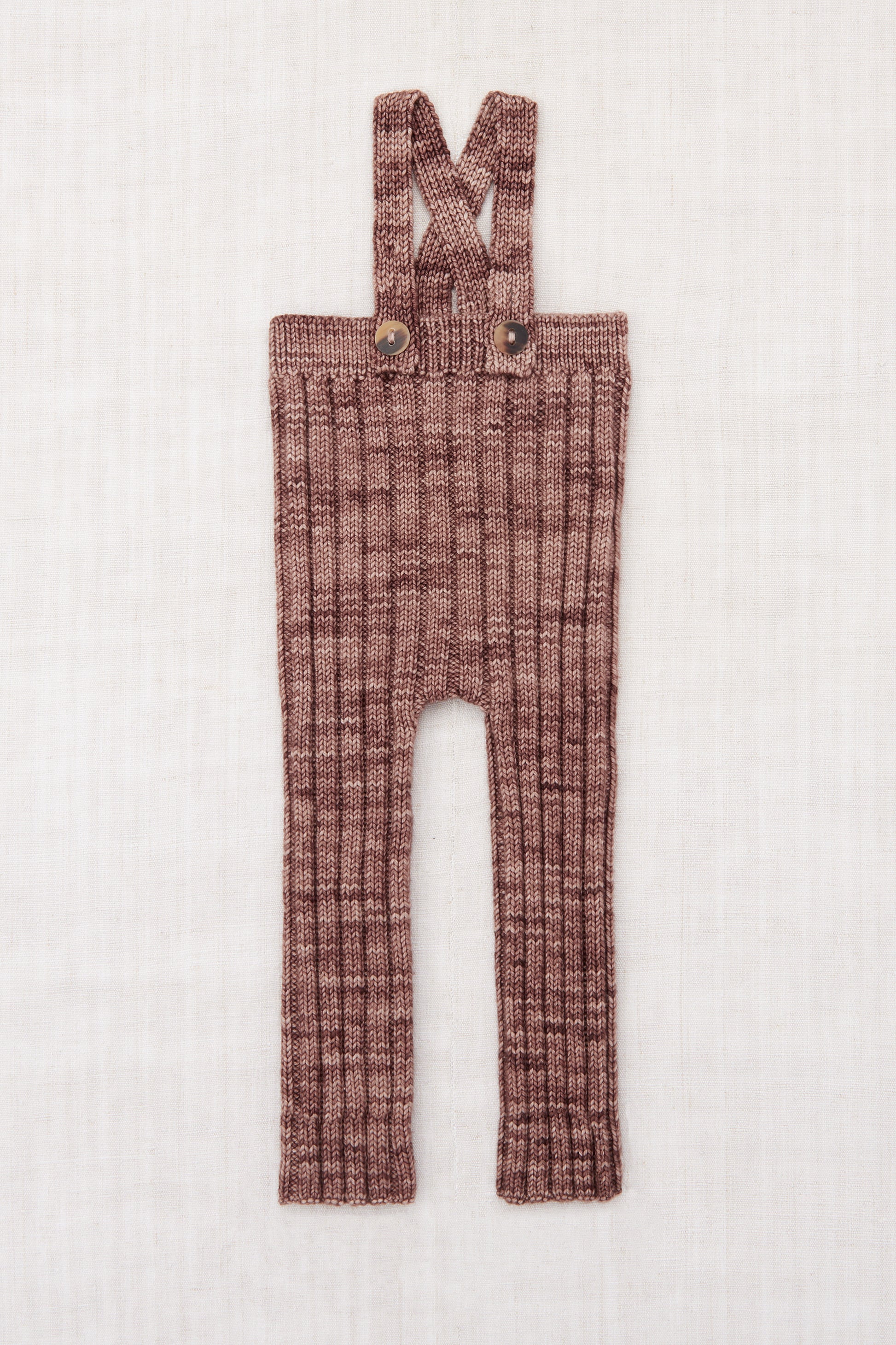 A ribbed overall in a Merino wool knit, with adjustable straps and horn button closure.