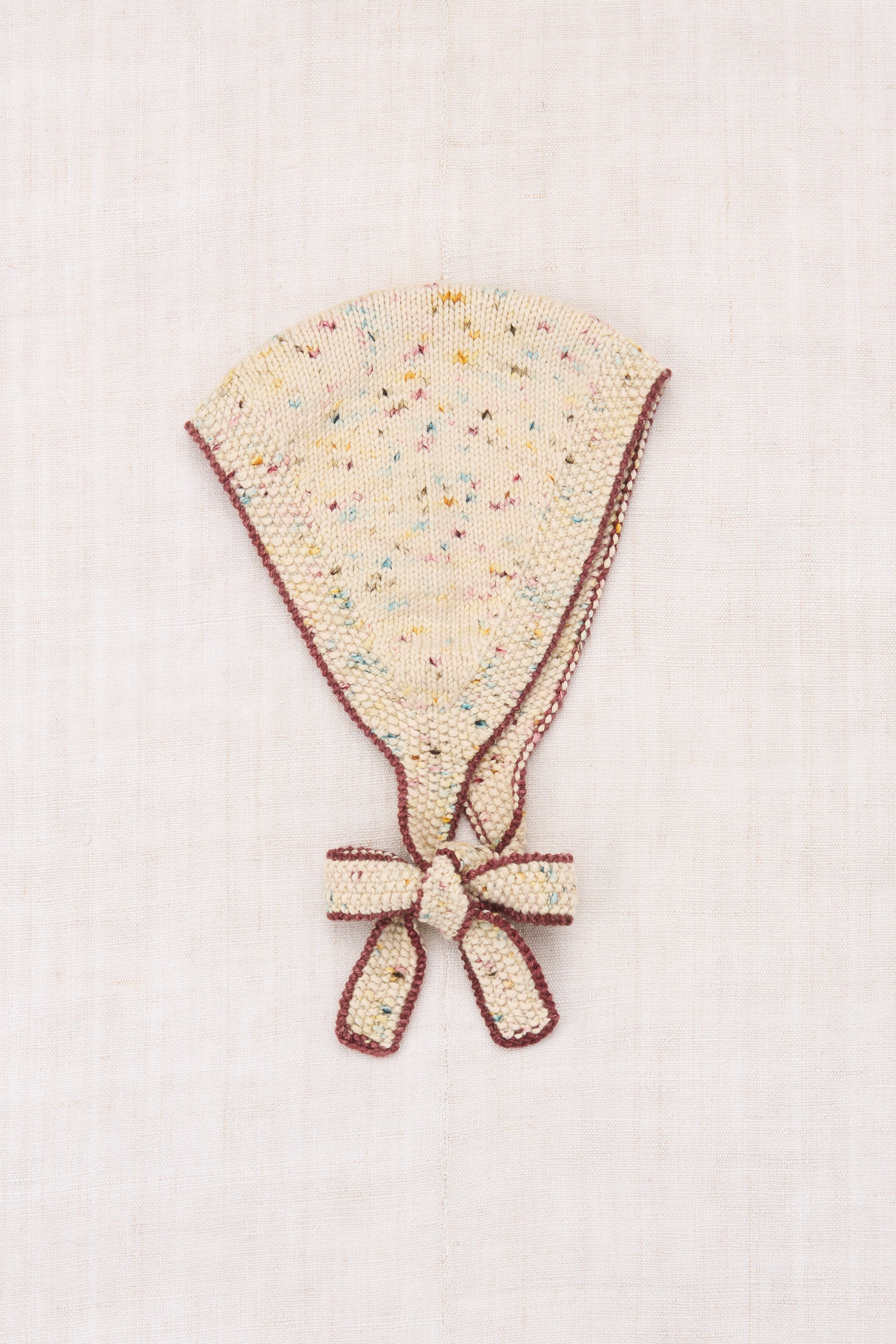 A hand-knit headwarmer in Merino wool, featuring contrast trim and tie closure.