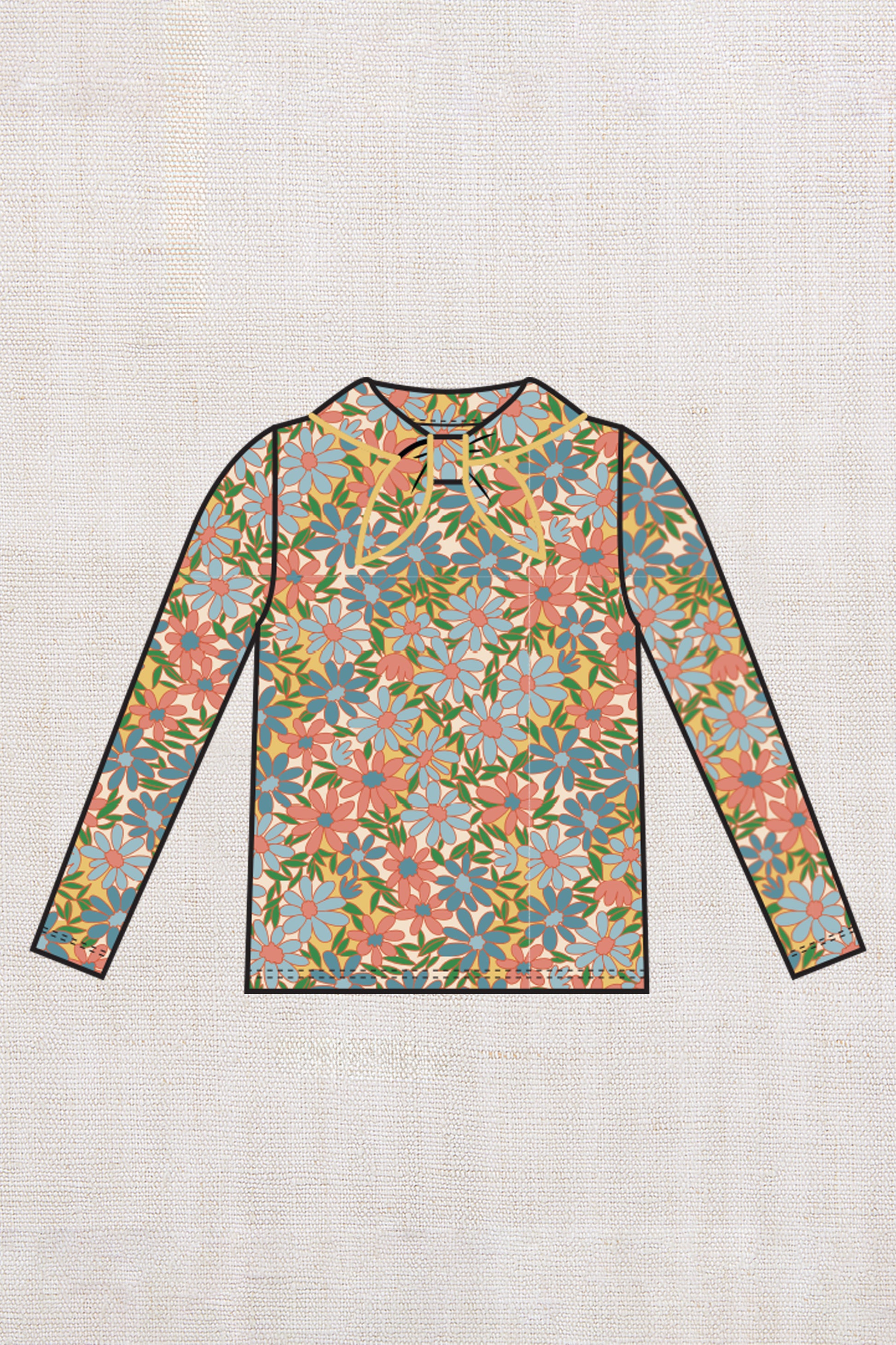 Notes from Anna: We only made this once — in this exact color combination! A bold, fun floral with a '70s vibe, like summer sheets at Nana’s house. It’s easy to style and folds right into your kid’s existing wardrobe. First Appeared: Summer 2022