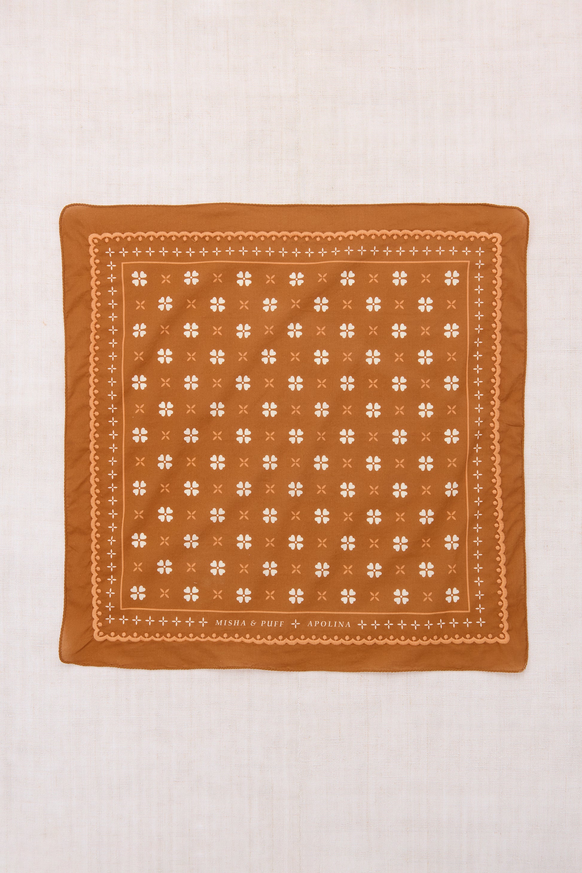 A sweet cotton scarf with classic bandana-inspired print and contrast scallop dot embroidery trims at the edge. Prefect worn as a headscarf or neckerchief.