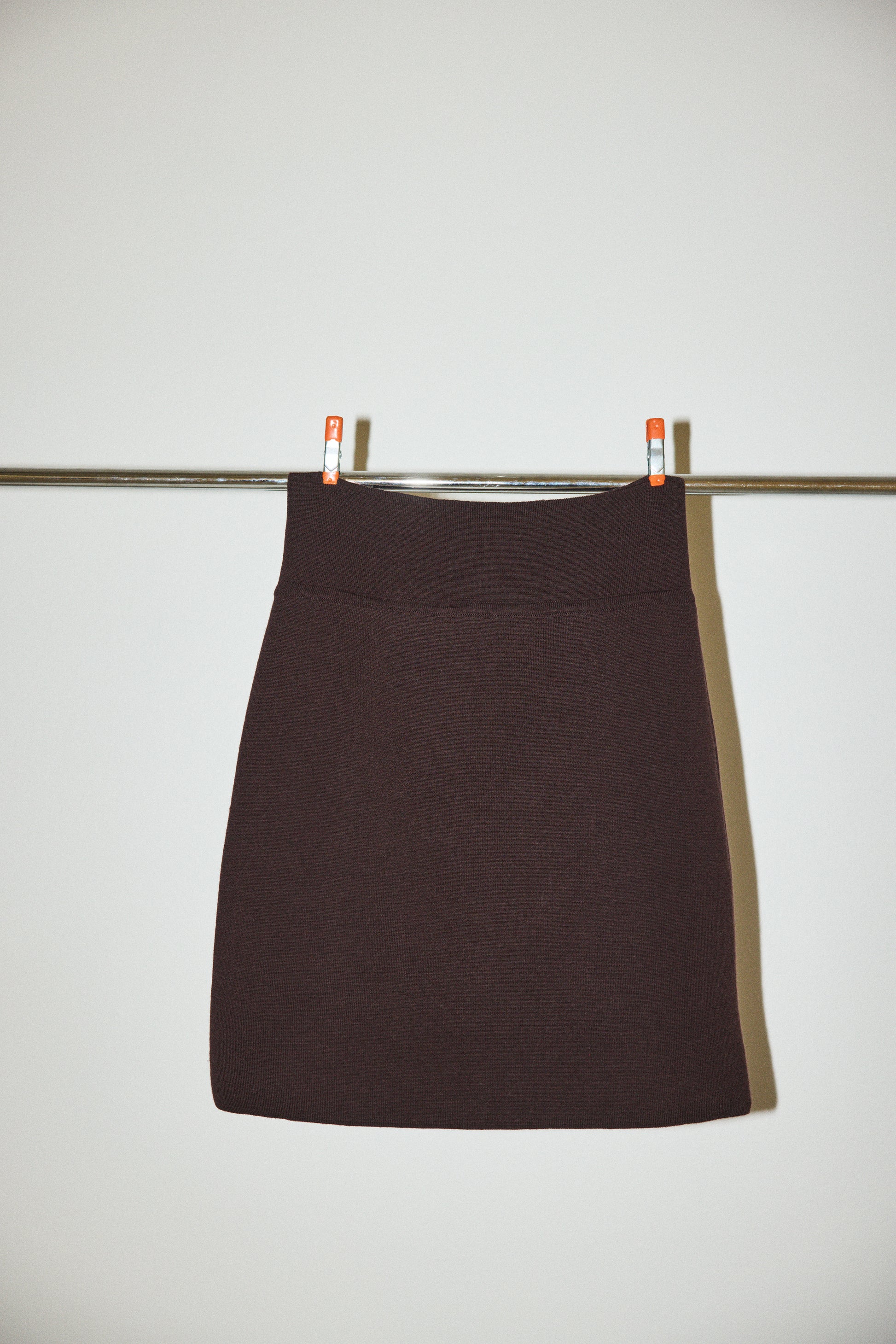 A versatile mini skirt in a fine-gauge Merino wool knit, featuring a touch of stretch for shape, and a tall waistband.