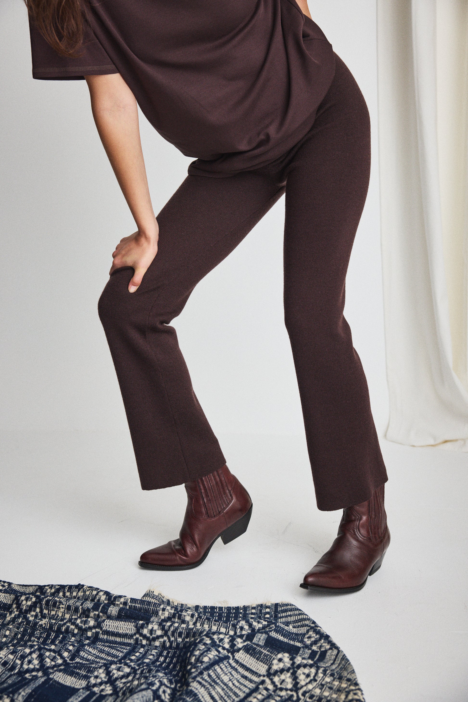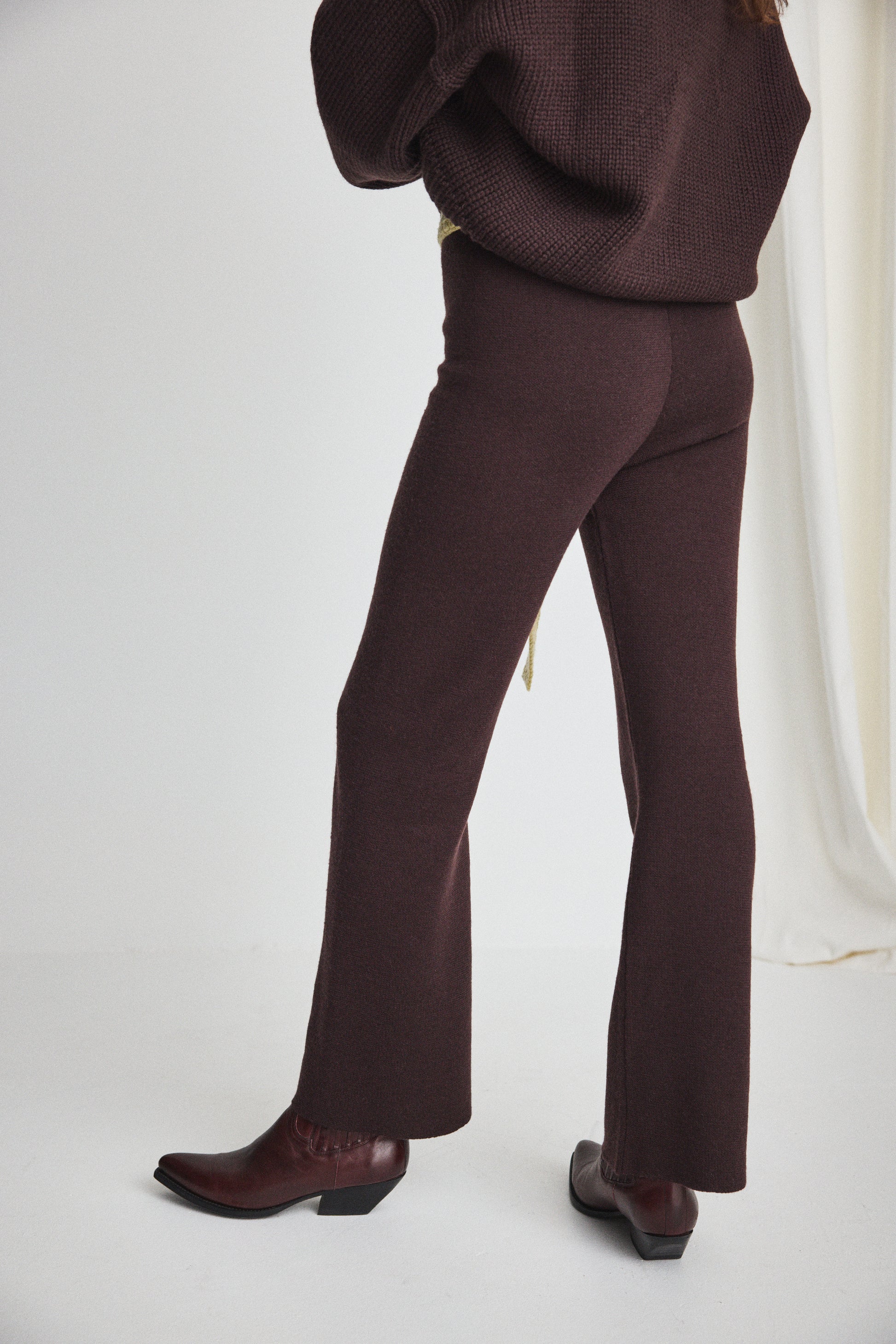 A pull-on pant in a fine-gauge Merino wool knit, featuring a slim cut, soft elastic waistband, and a subtle kick flare — a go-to for founder Anna Wallack’s daughter, Izzy.
