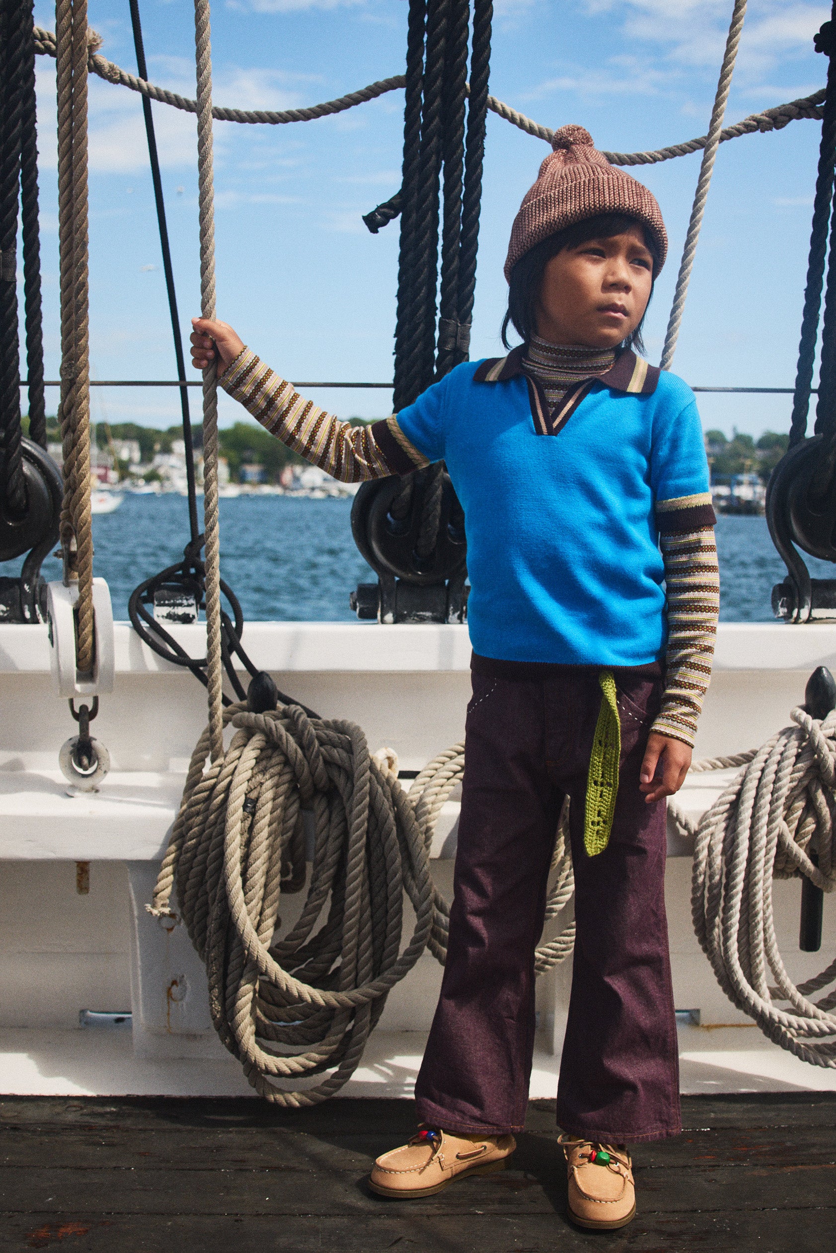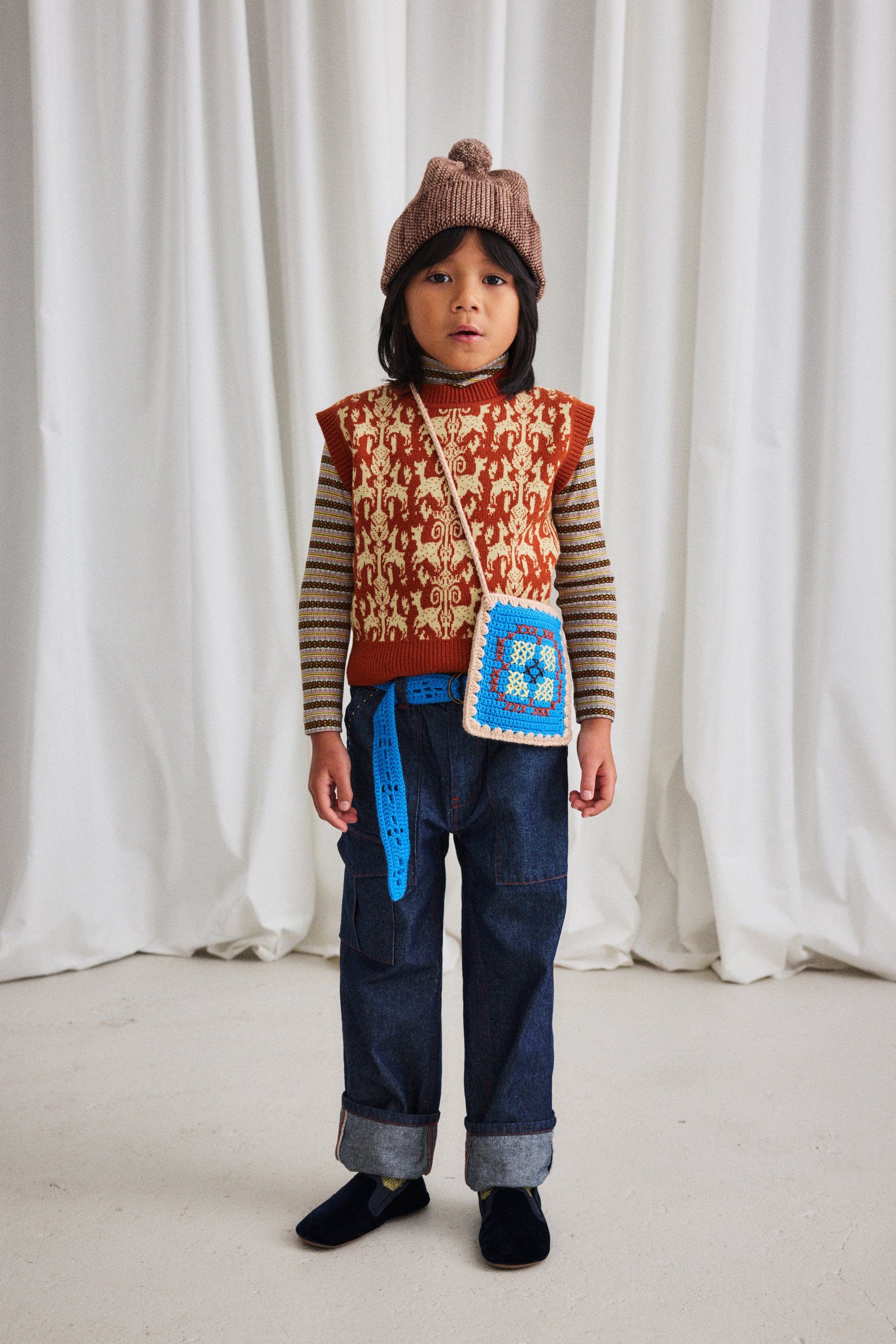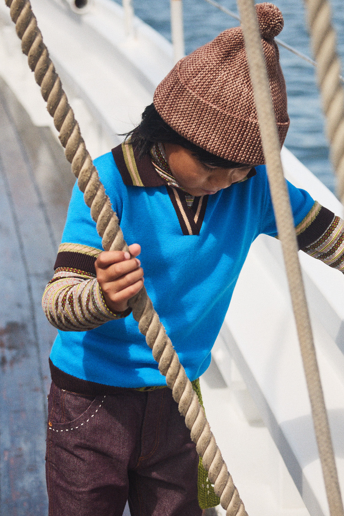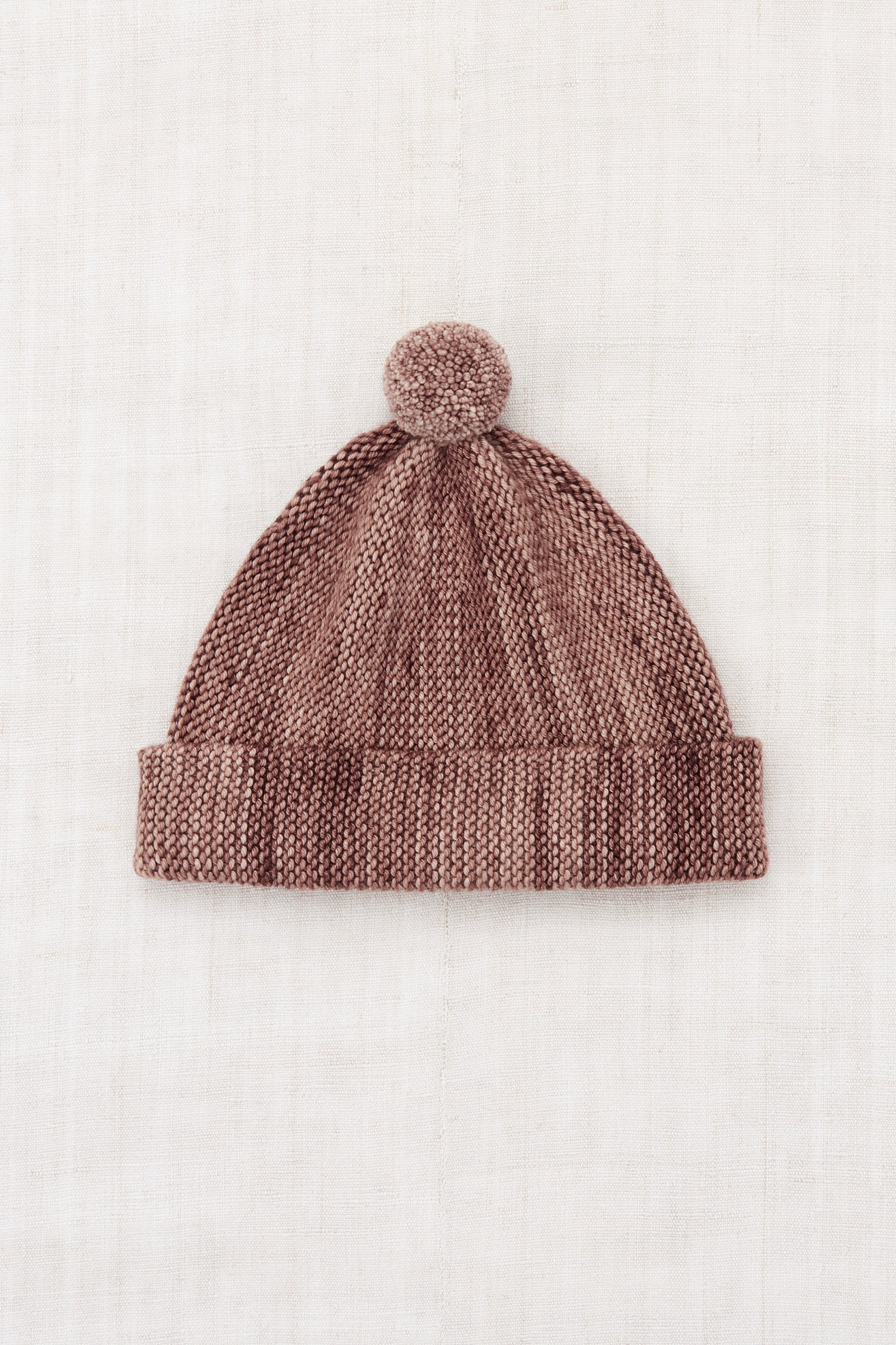 A classic hat in a Merino wool knit, with an adjustable brim and a pom-pom top. The brim comes unrolled — wear it rolled, cuffed, or loose.
