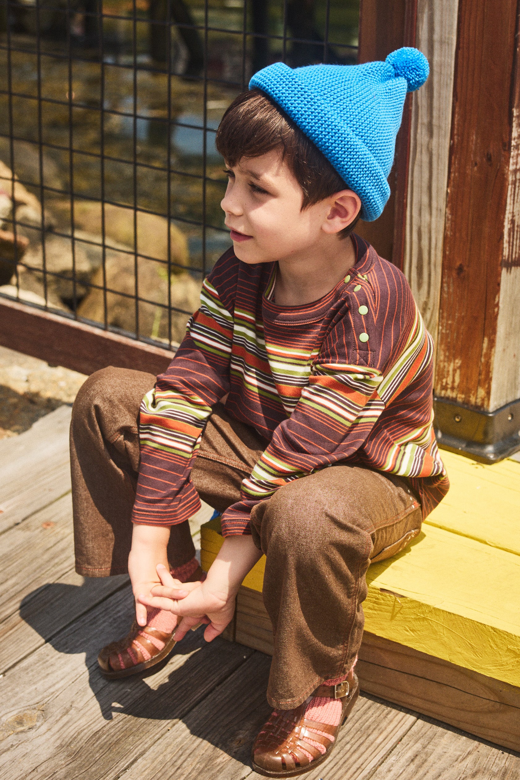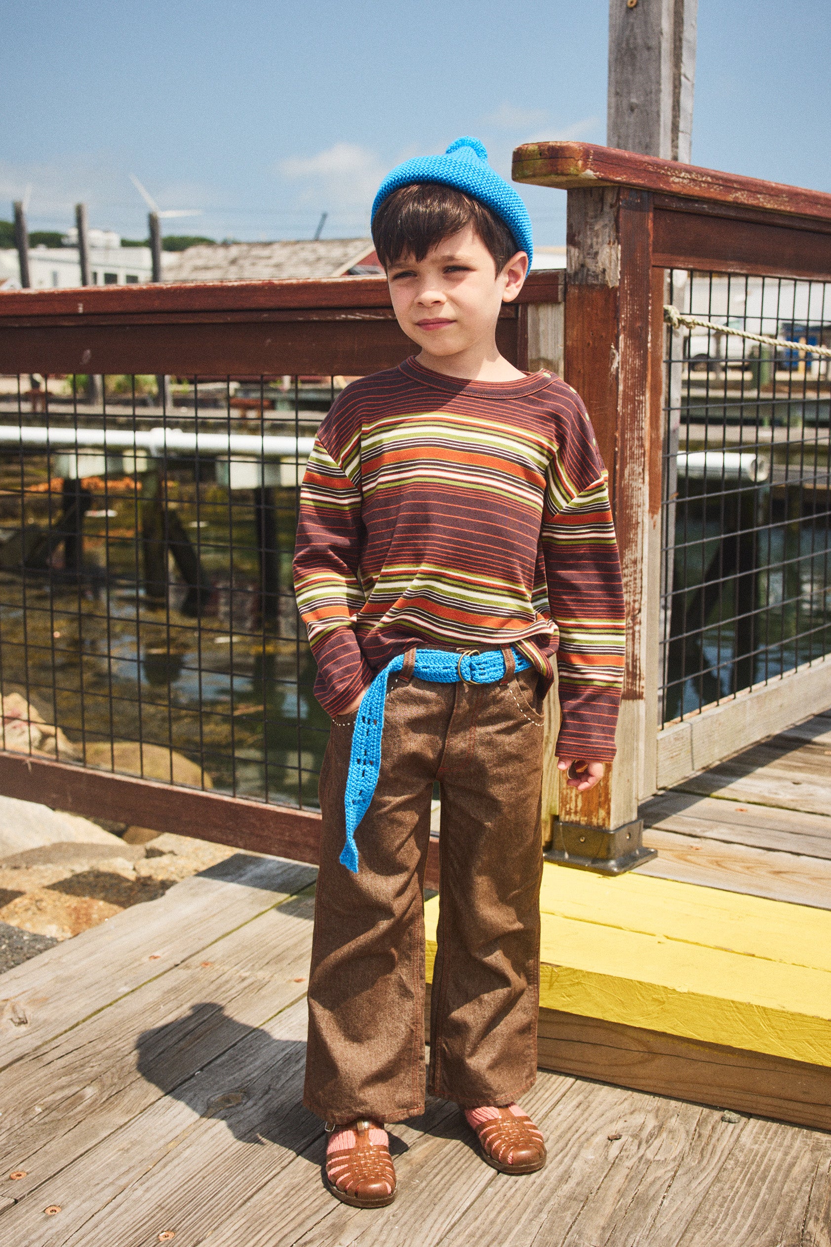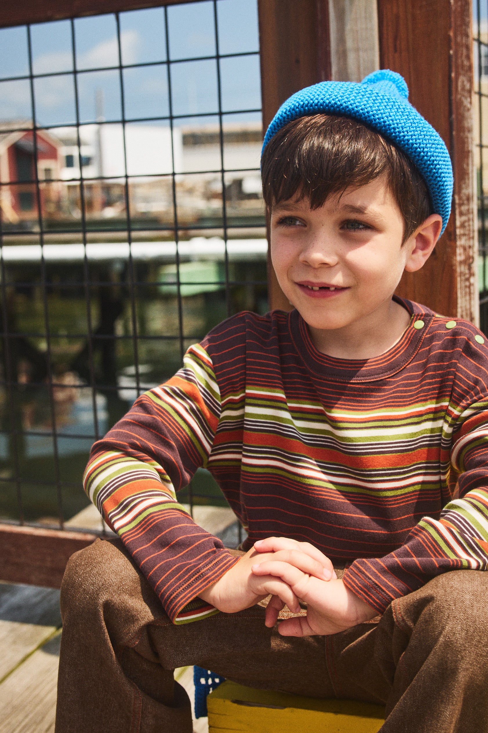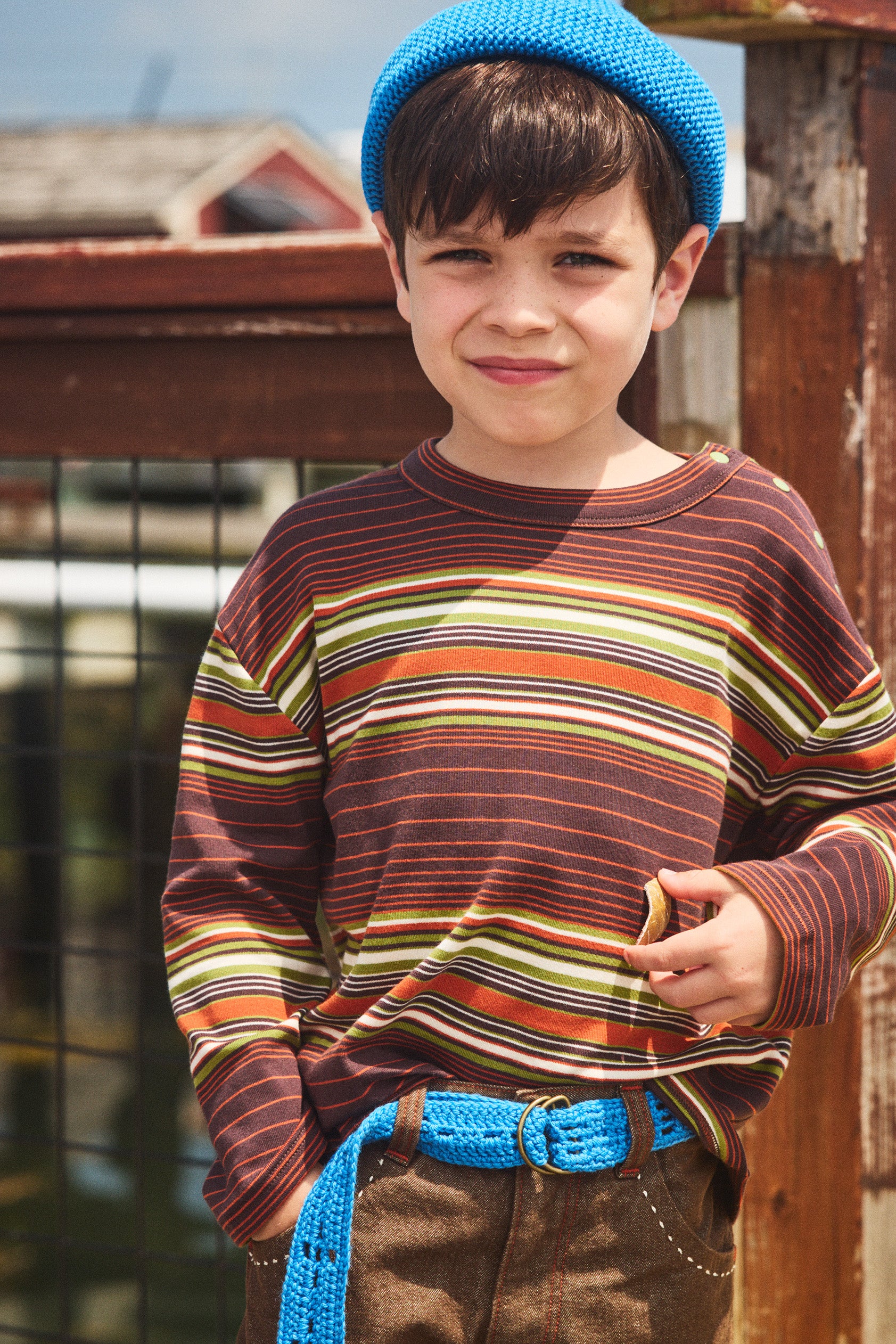 Long Sleeve Boxy Top - Raisin Patio Stripe