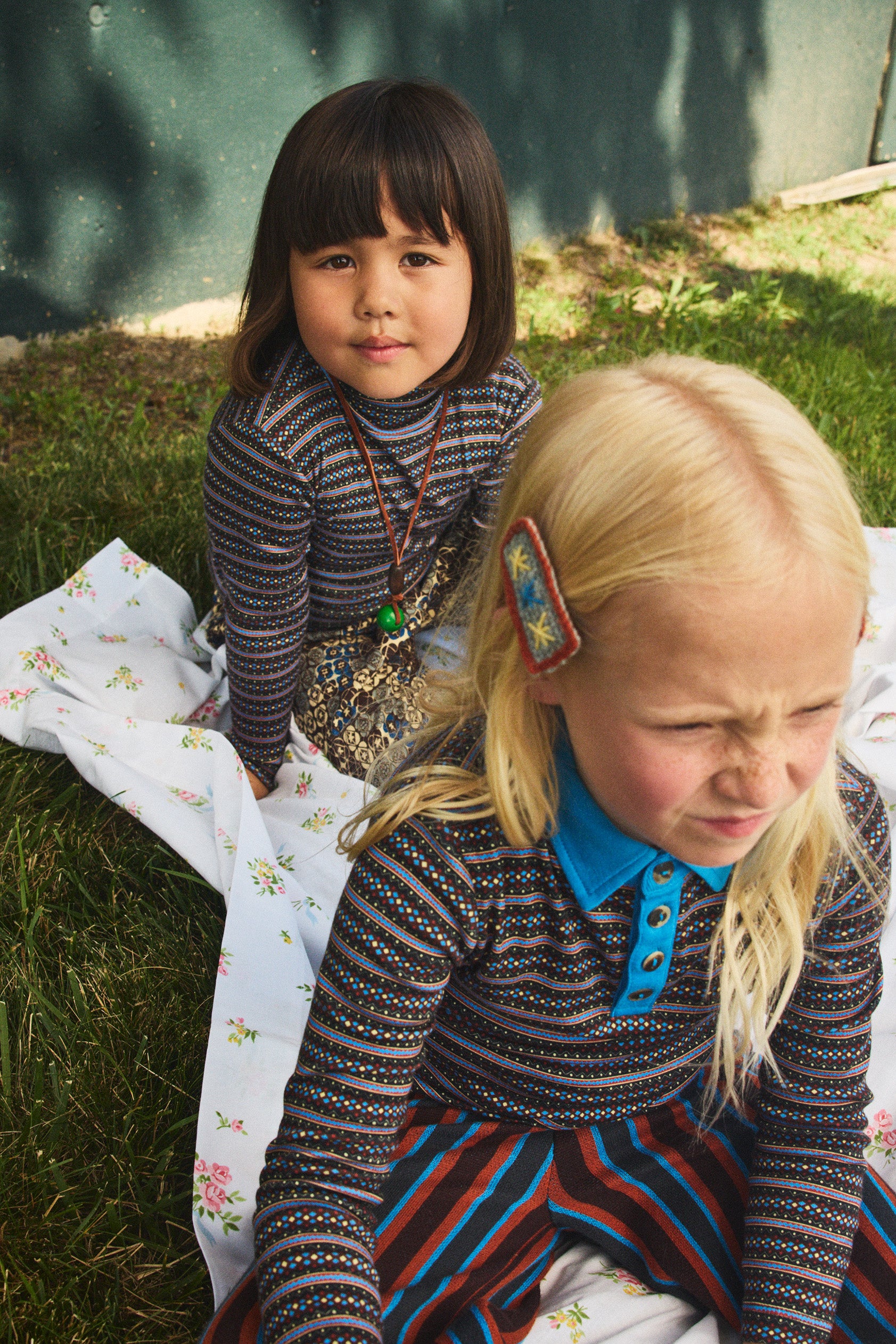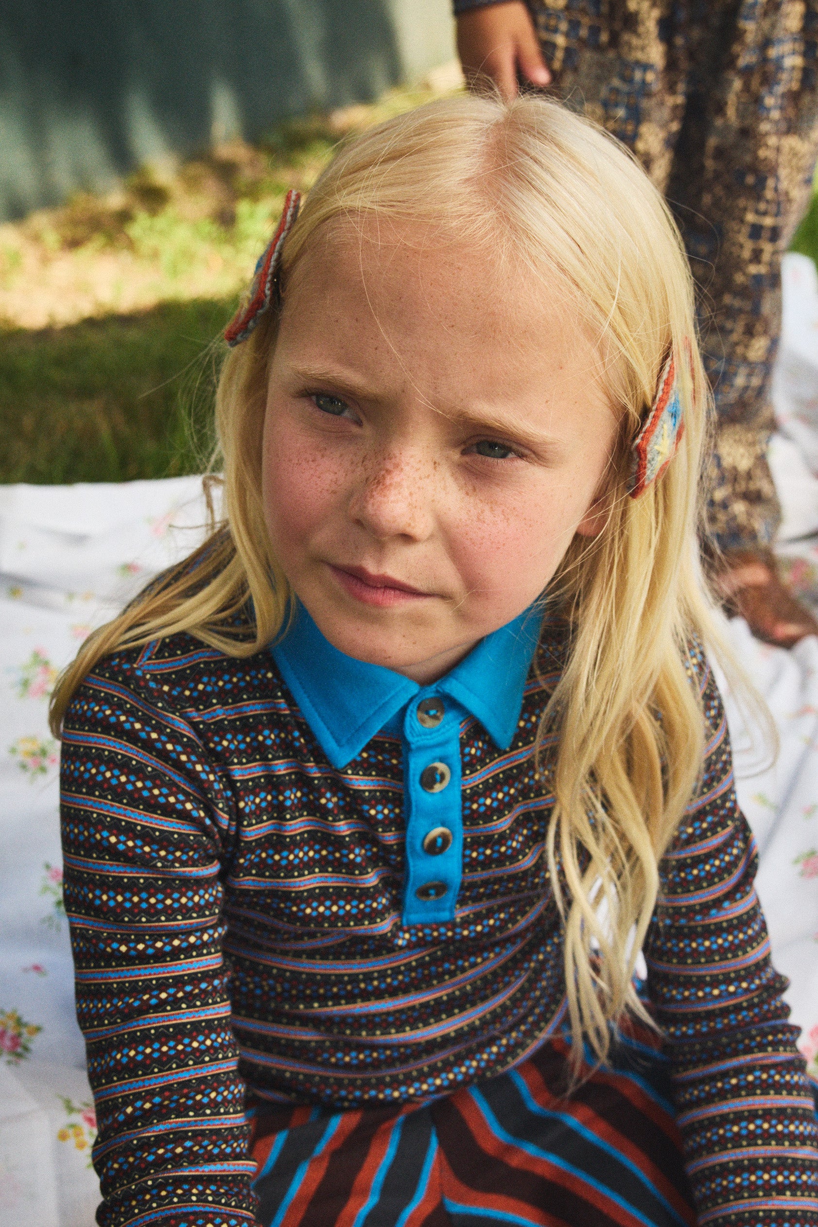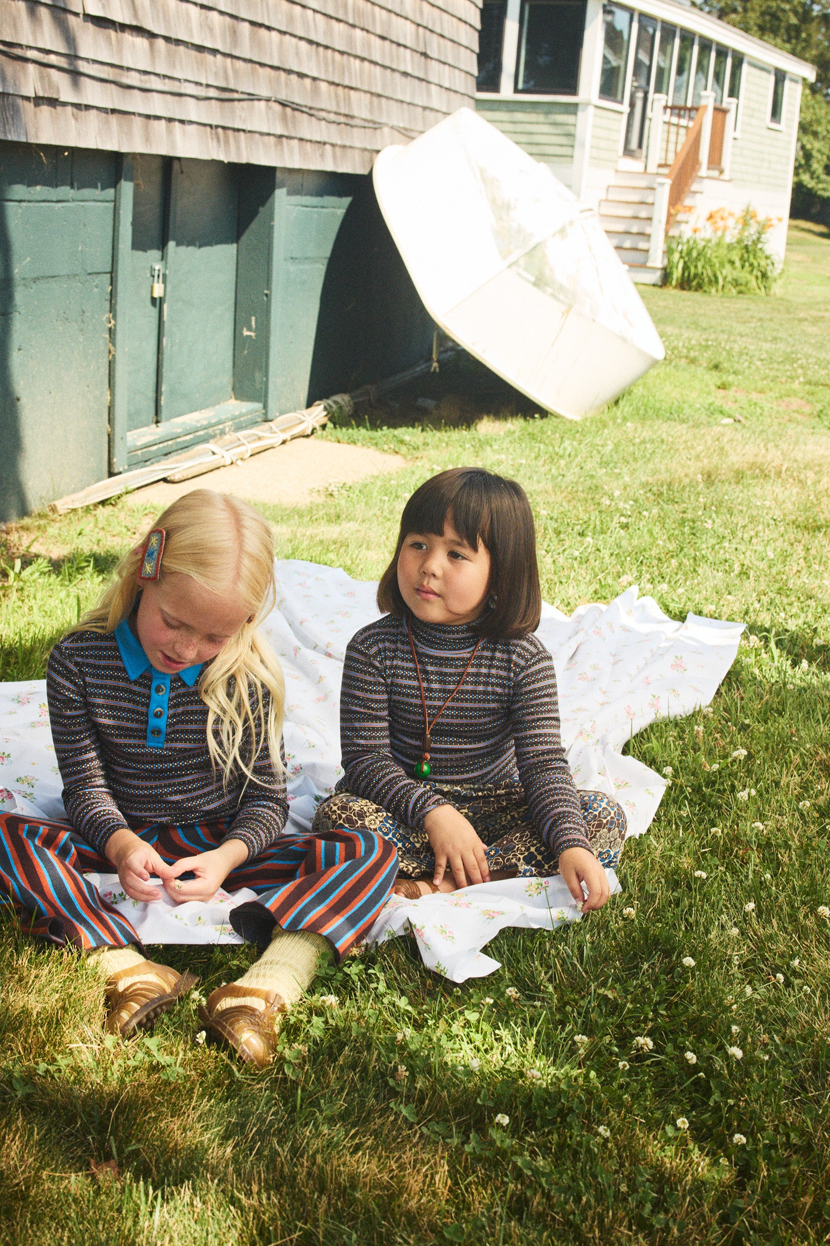 A long-sleeved polo top in organic Pima cotton, with a contrast collar and placket, and horn button closure.
