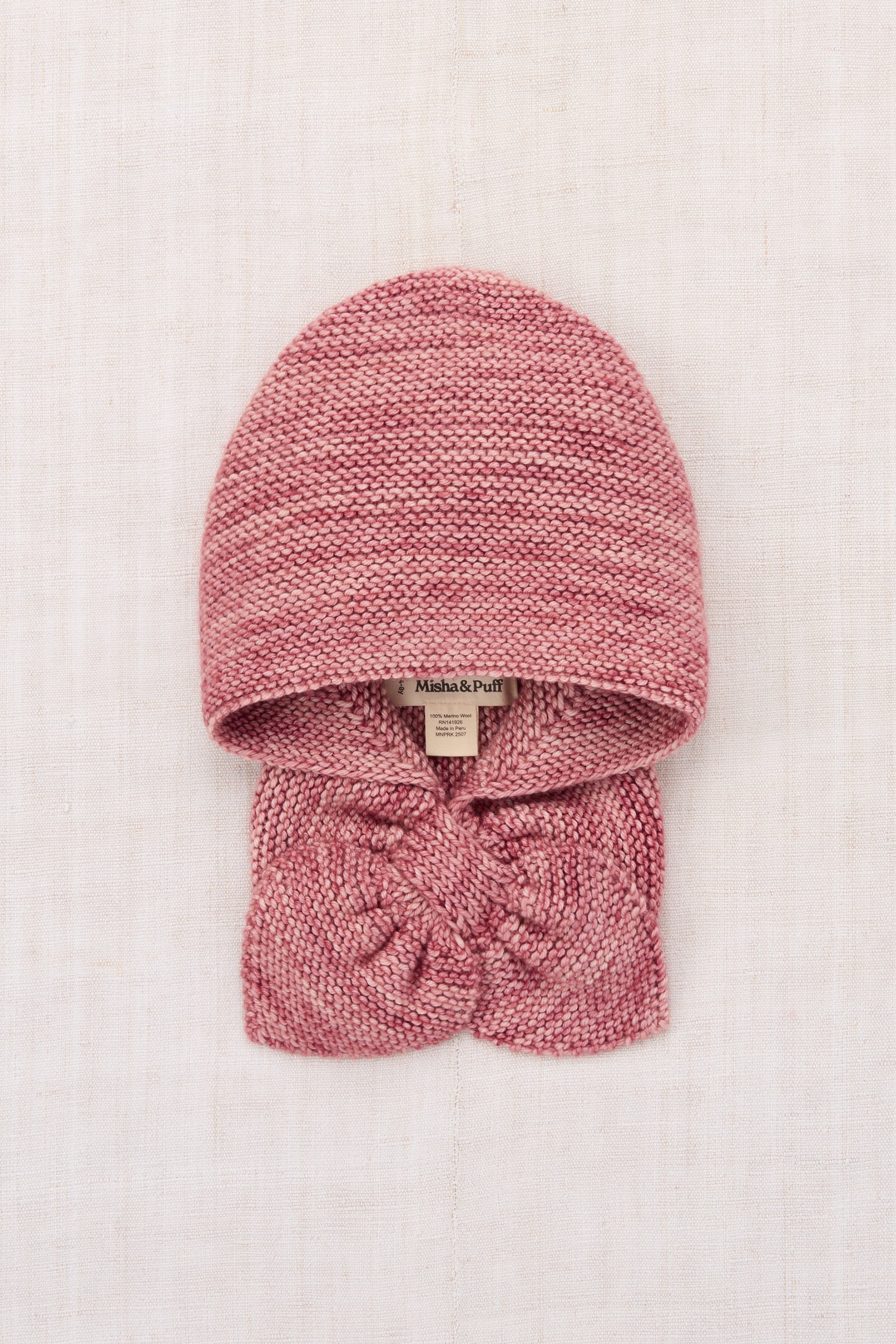Misha & Puff’s signature hand-knit fitted hood in Merino wool, with a pull-through kerchief closure. Keeps heads and necks warm — the perfect complement to any outfit.