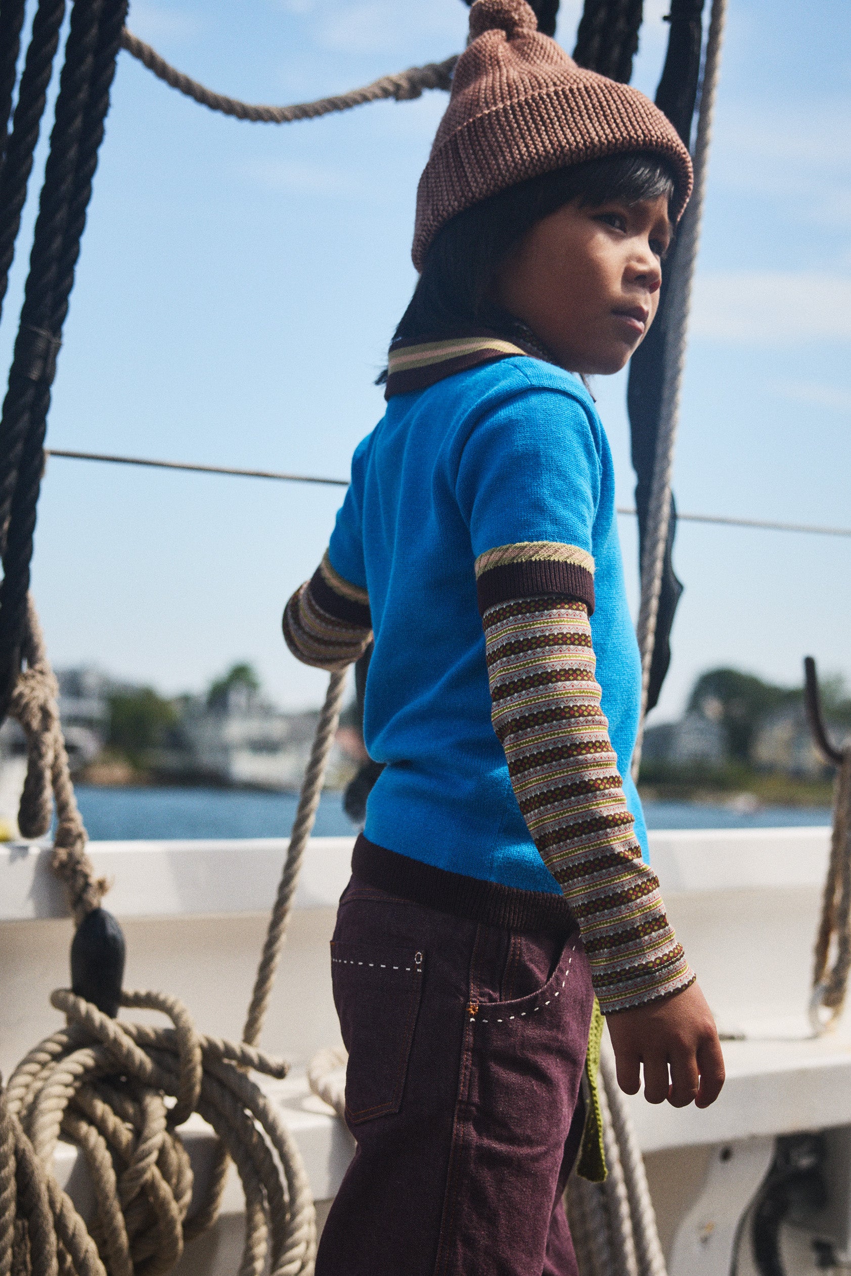 Our denim is 100% cotton, with thoughtful touches like contrast topstitching, hand-tacked embroidery instead of rivets for softness, and adjustable waistbands and straps for long wear and the perfect fit. Our denim has no stretch — yet has a naturally soft hand-feel and is effortlessly versatile.