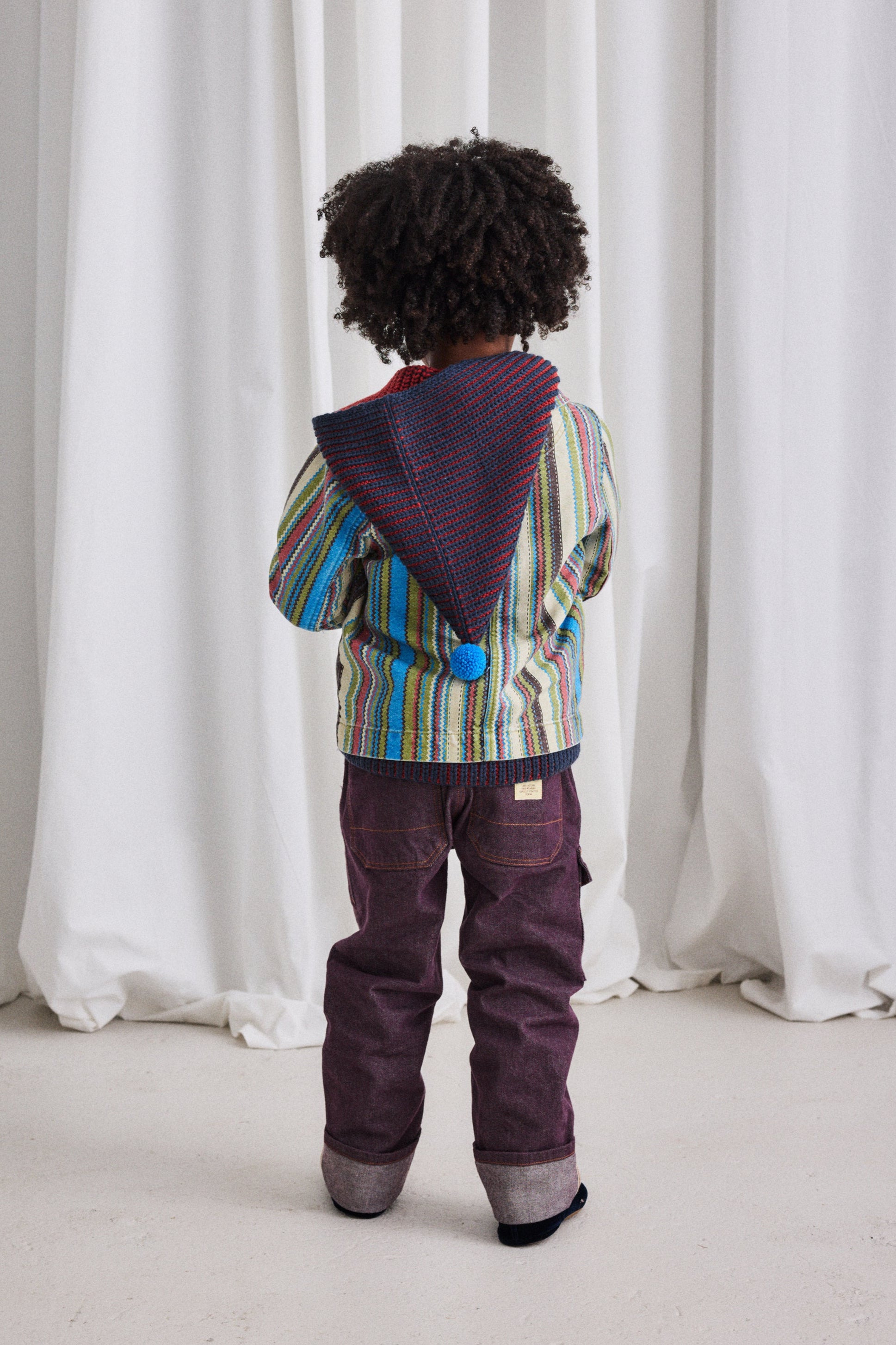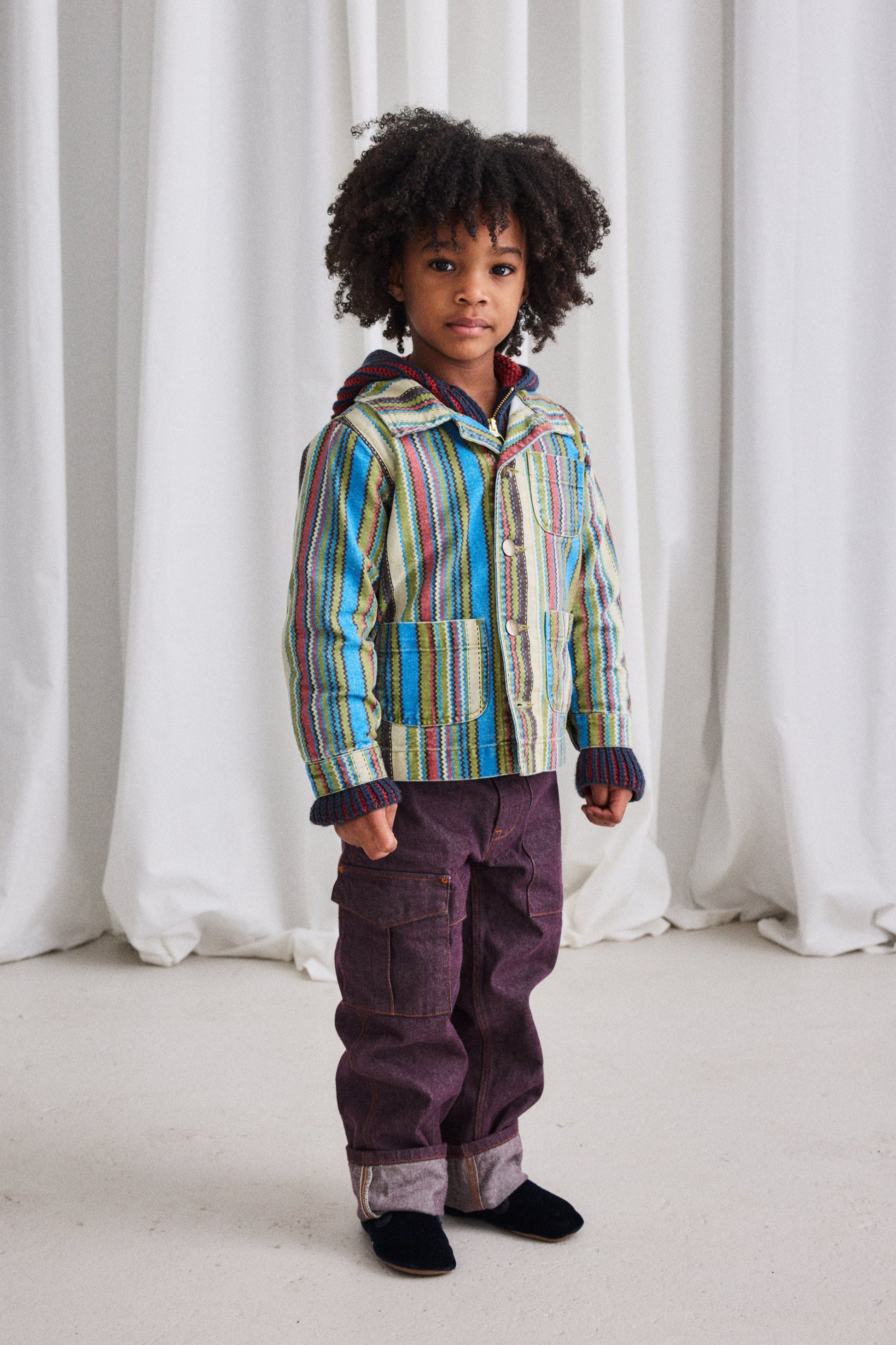 Our denim is 100% cotton, with thoughtful touches like contrast topstitching, hand-tacked embroidery instead of rivets for softness, and adjustable waistbands and straps for long wear and the perfect fit. Our denim has no stretch — yet has a naturally soft hand-feel and is effortlessly versatile.