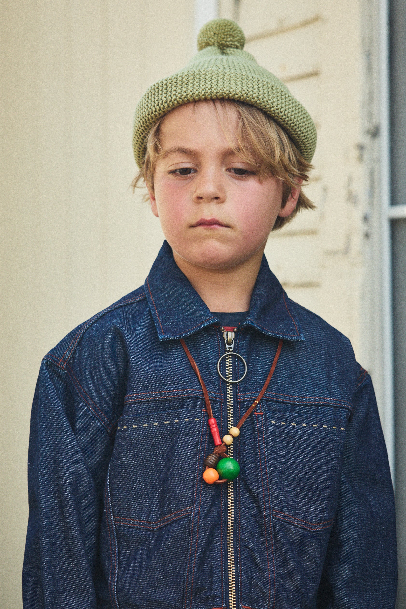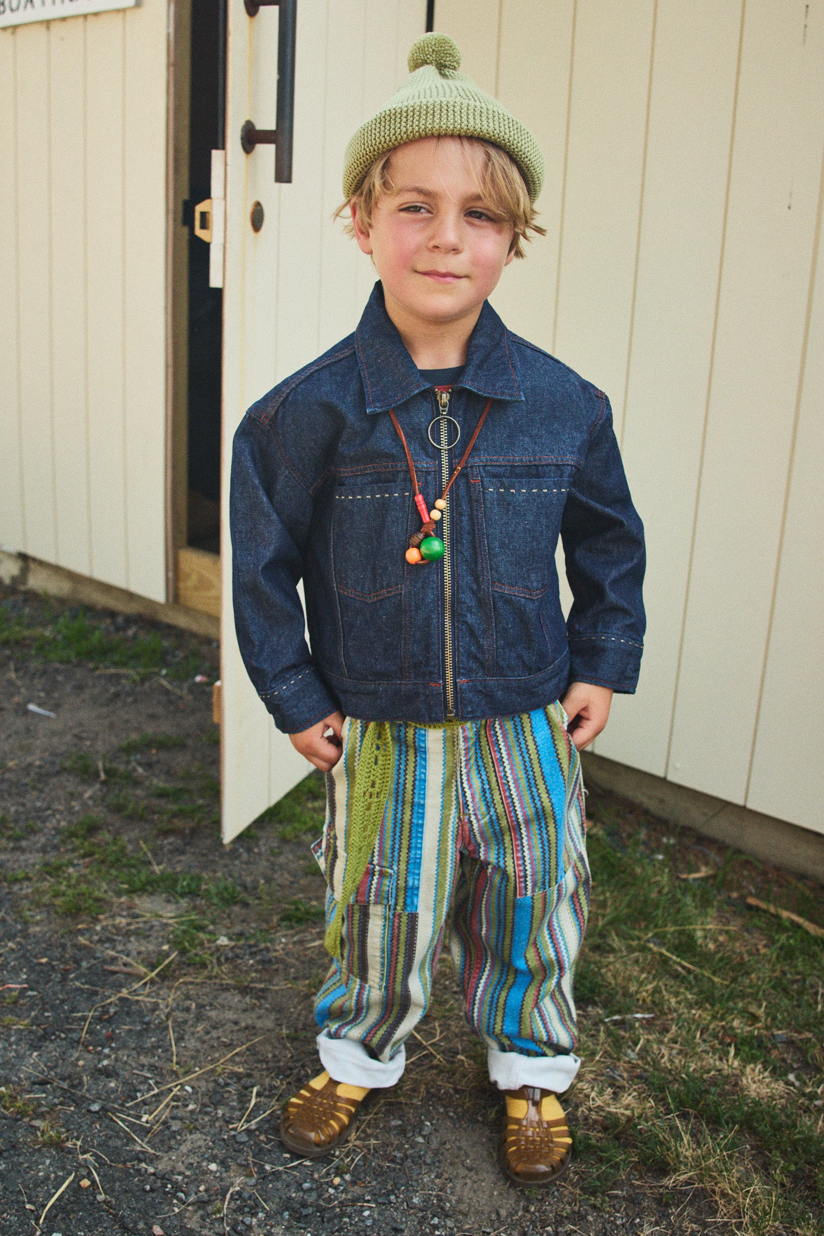 Our denim is 100% cotton, with thoughtful touches like contrast topstitching, hand-tacked embroidery instead of rivets for softness, and adjustable waistbands and straps for long wear and the perfect fit. Our denim has no stretch — yet has a naturally soft hand-feel and is effortlessly versatile.
