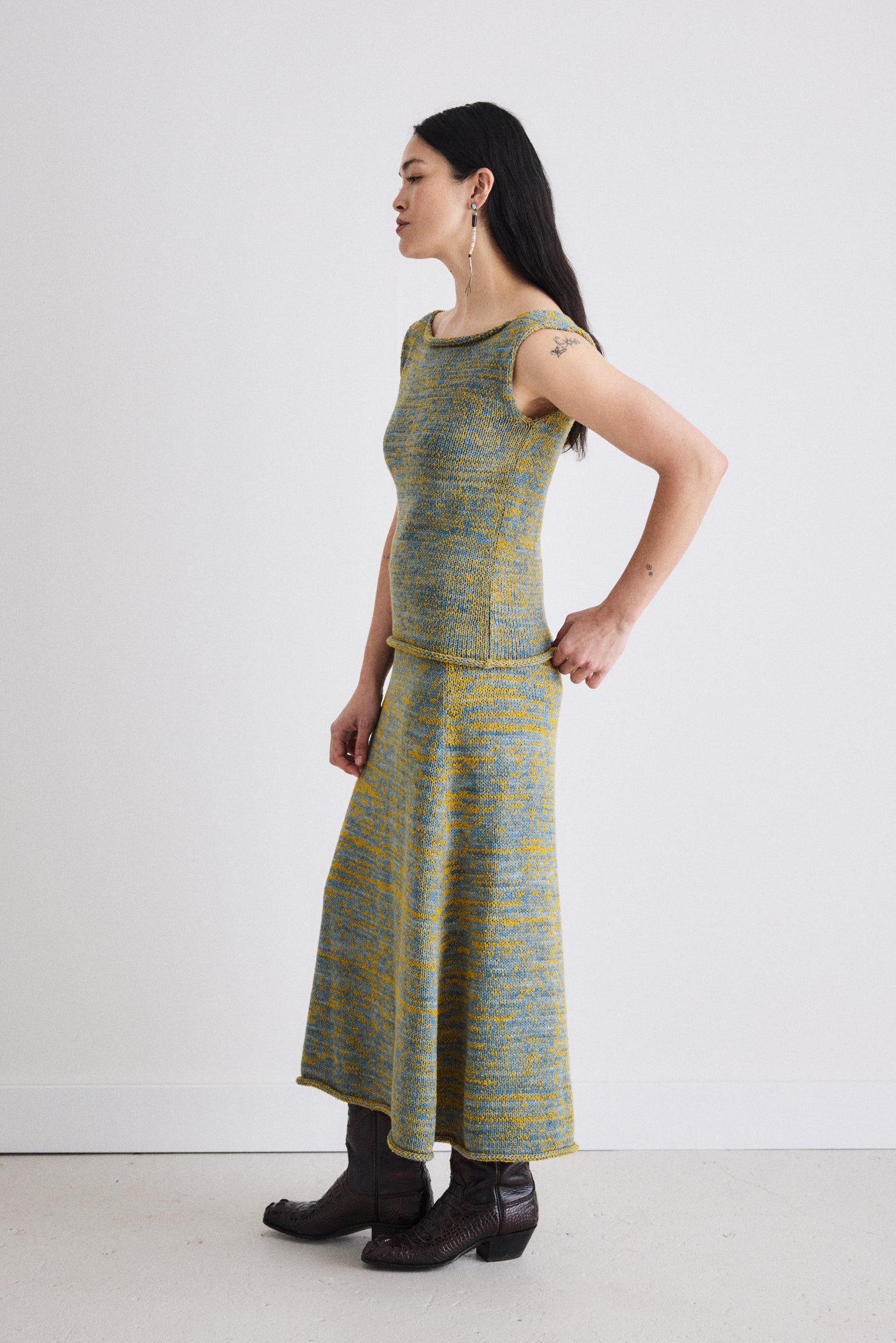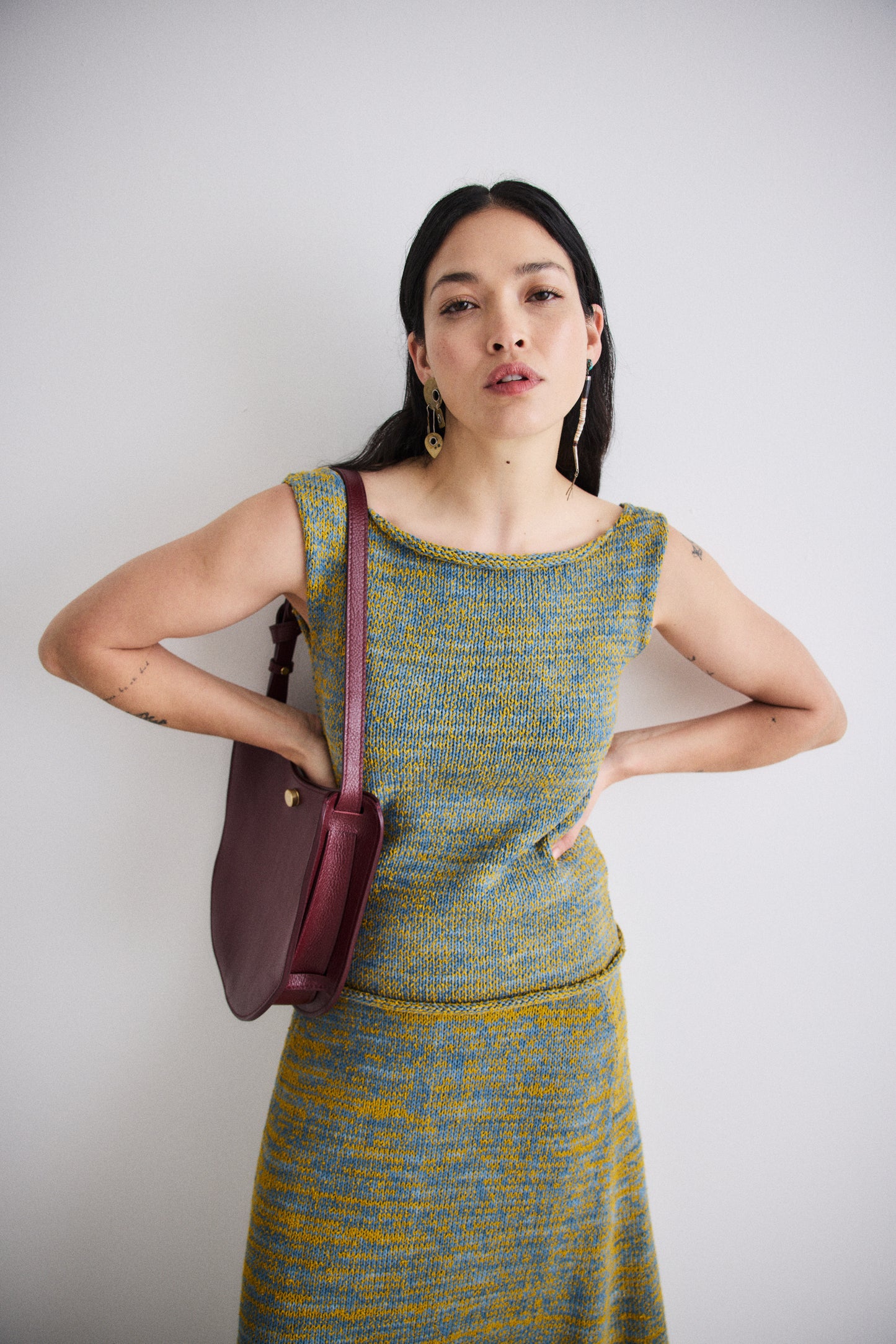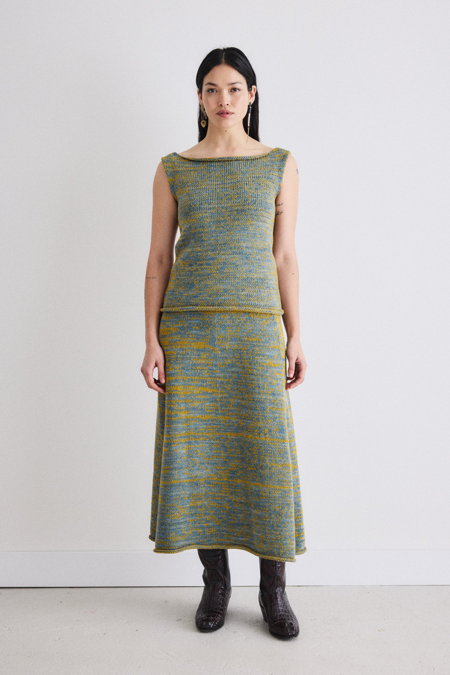 A textured marled tank in a Pima cotton and organic cotton bouclé blend, featuring a slim-straight silhouette, wide boatneck, and rolled trim. This style has a slim fit—consider sizing up for a less form-fitting look.