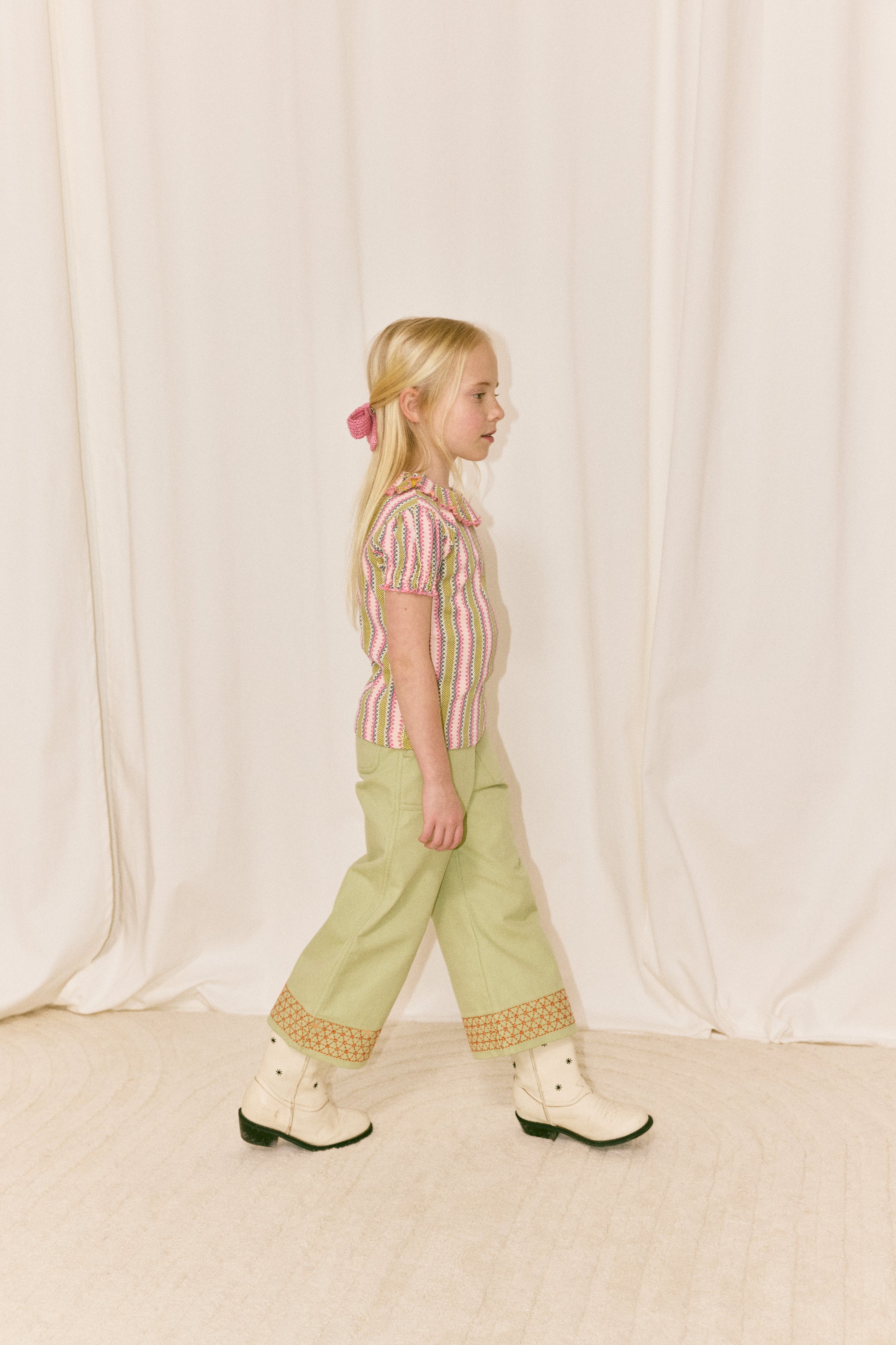 Our denim is 100% cotton, with thoughtful touches like contrast topstitching, hand-tacked embroidery instead of rivets for softness, and adjustable waistbands and straps for long wear and the perfect fit. Our denim has no stretch — yet has a naturally soft hand-feel and is effortlessly versatile.