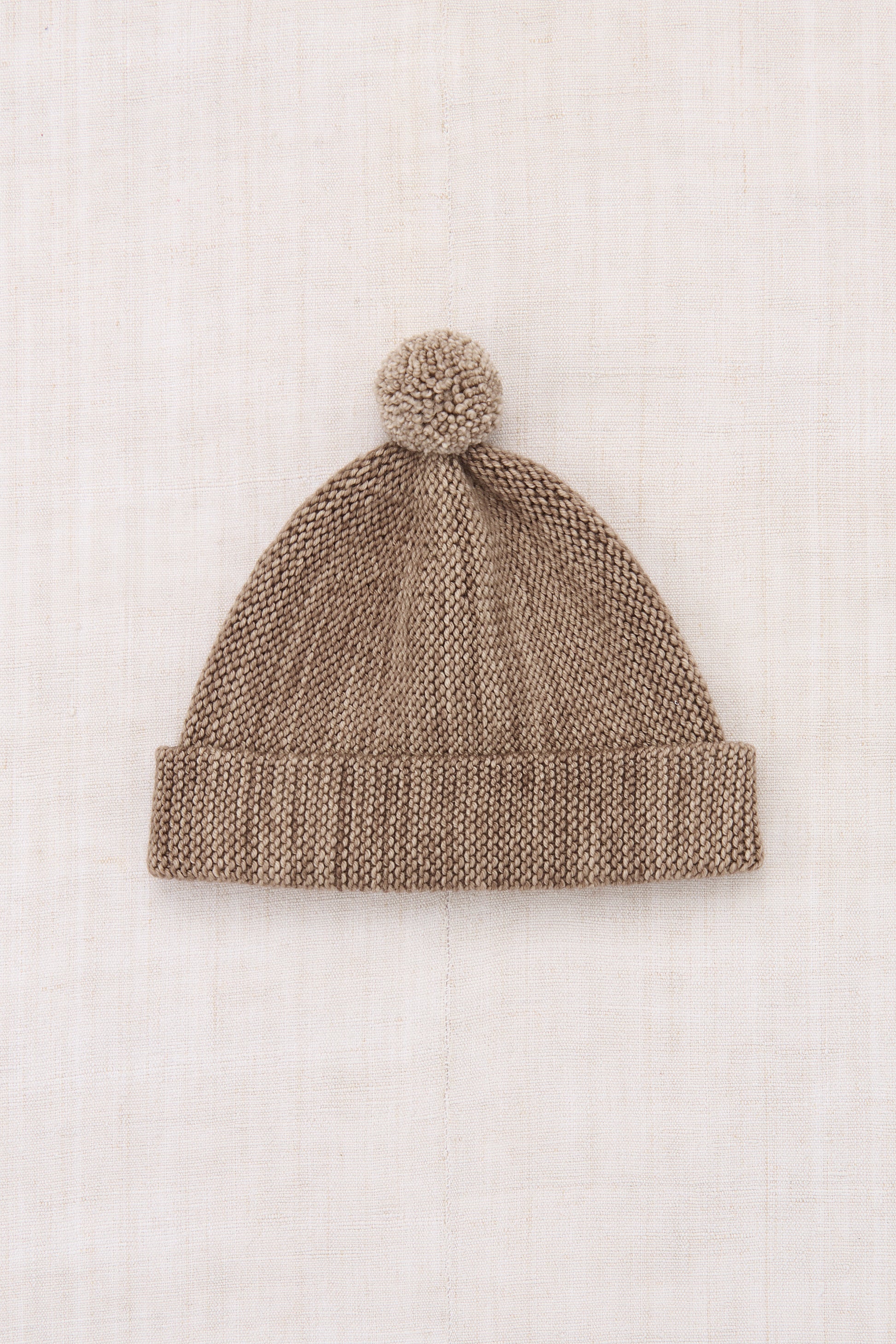 A classic hat in a Merino wool knit, with an adjustable brim and a pom-pom top. The brim comes unrolled — wear it rolled, cuffed, or loose.