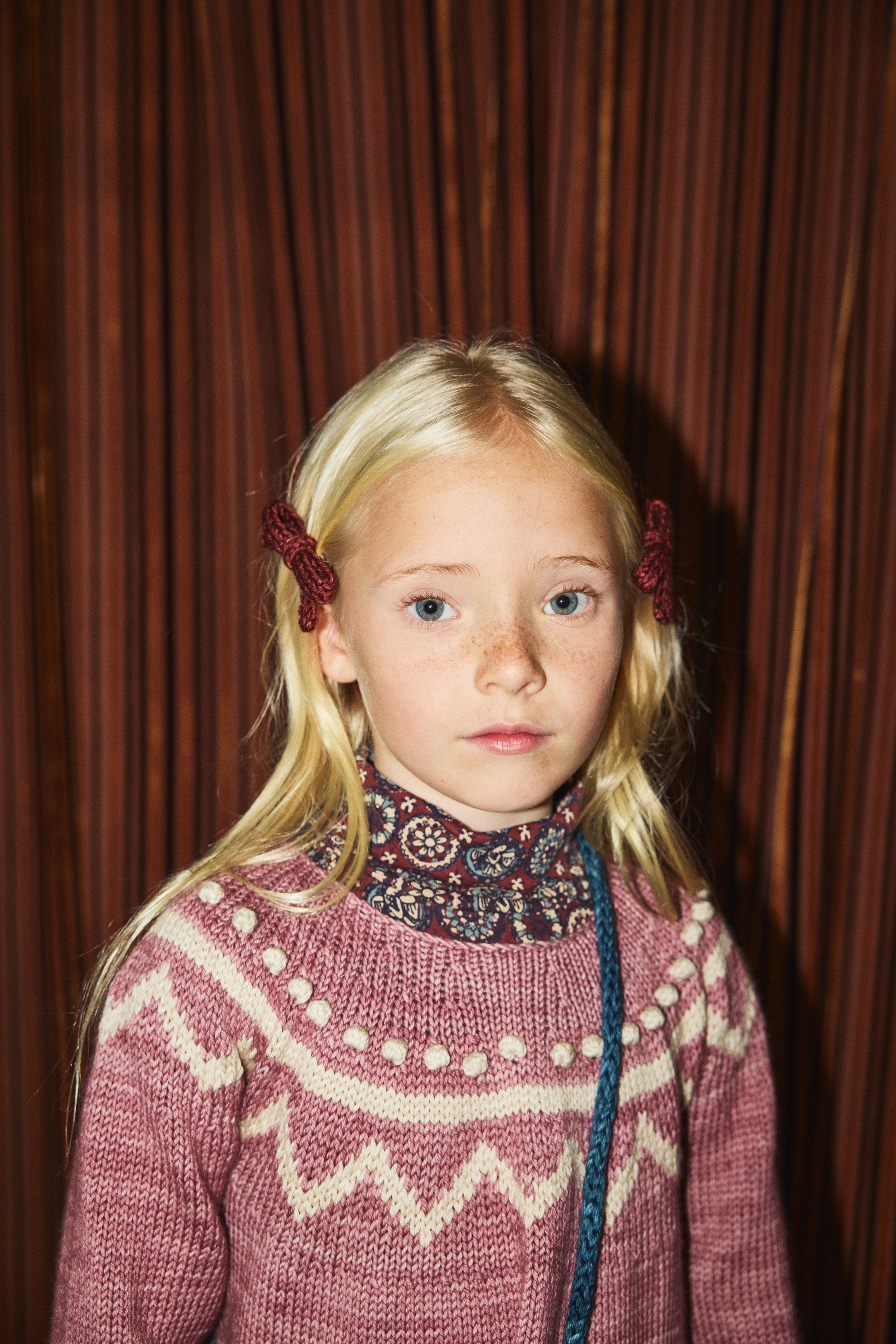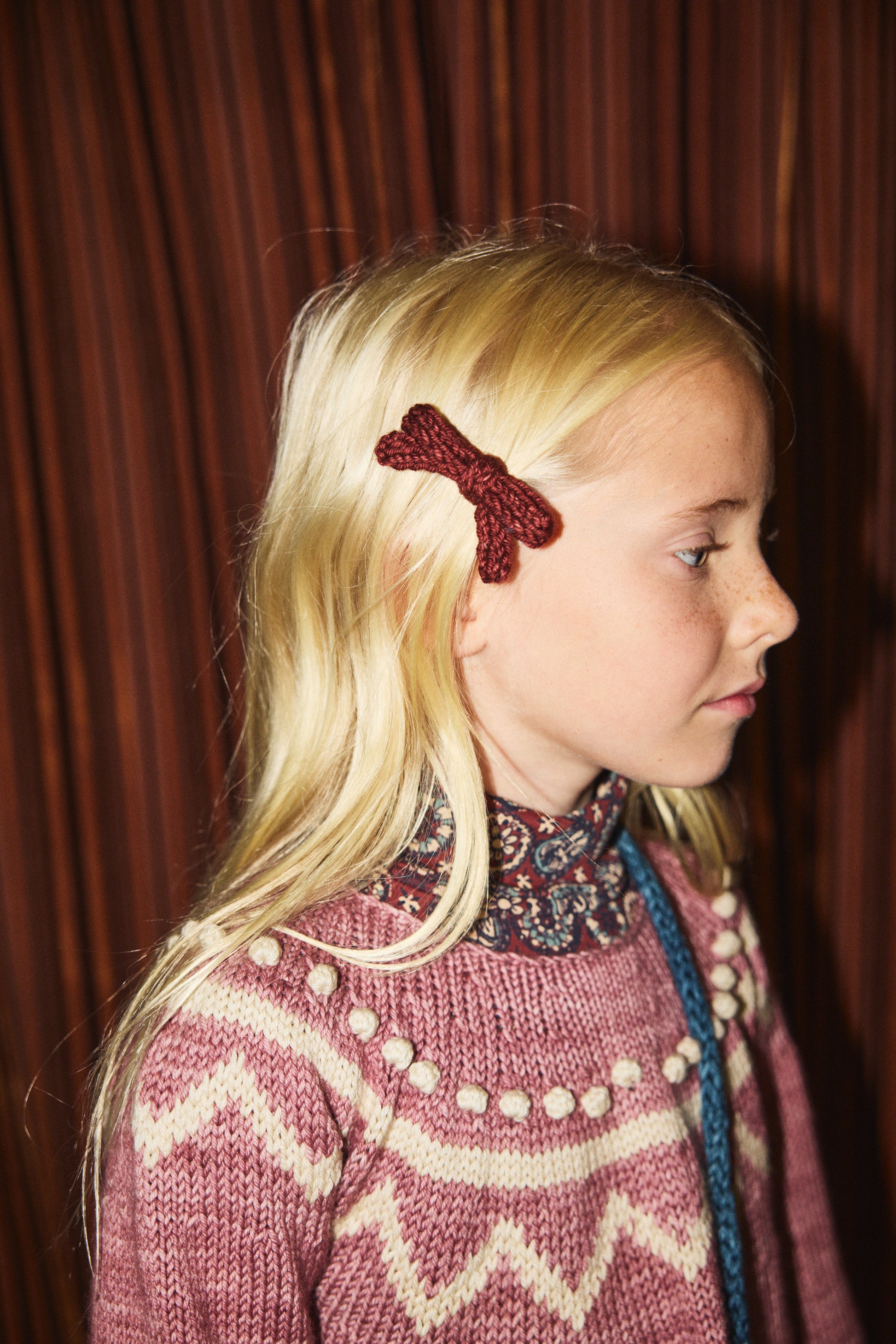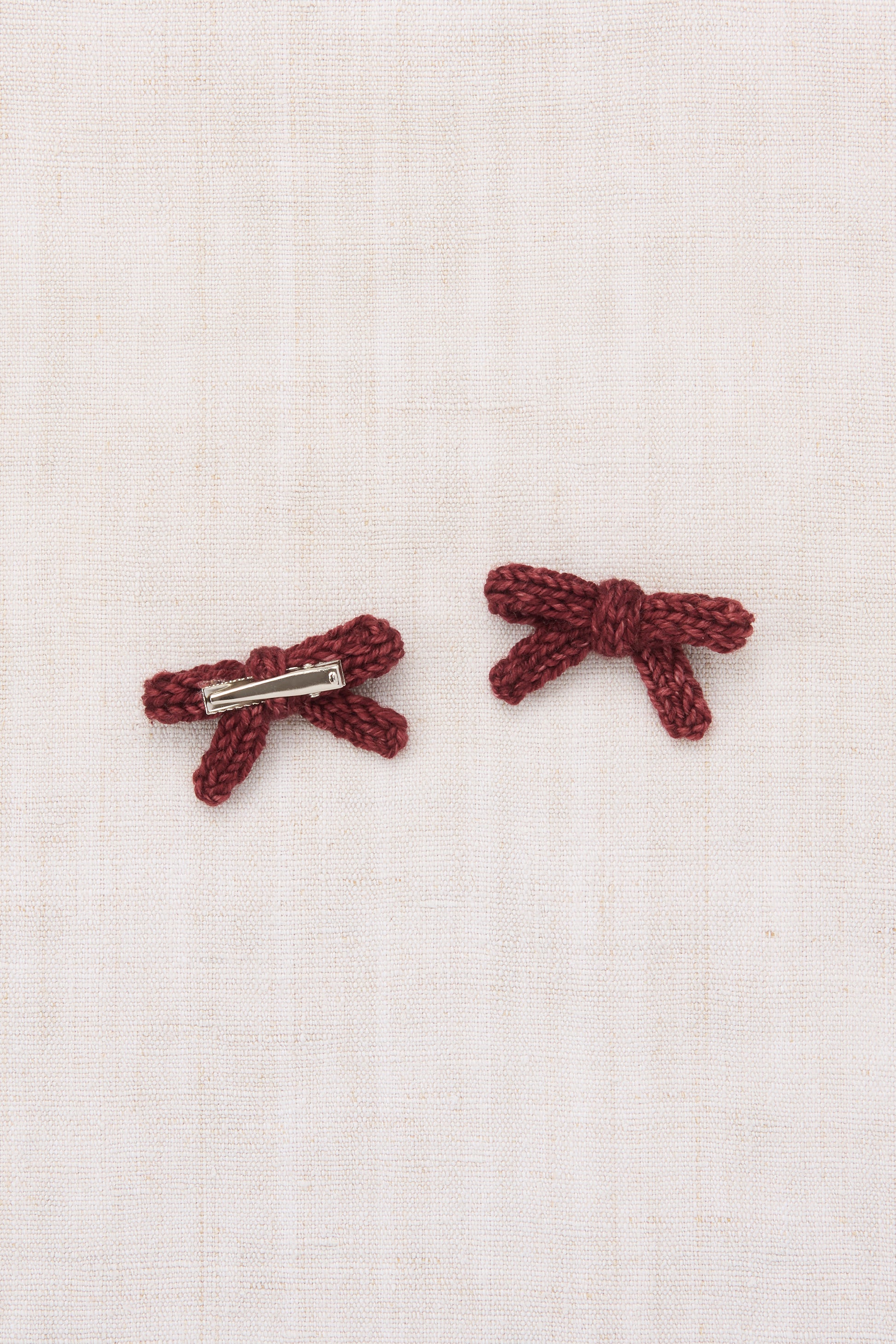 A hand-knit slim bow set in Merino wool, mounted on alligator clips. Perfect for matching your favorite knitwear, adding a pop of color, or gifting to a friend.