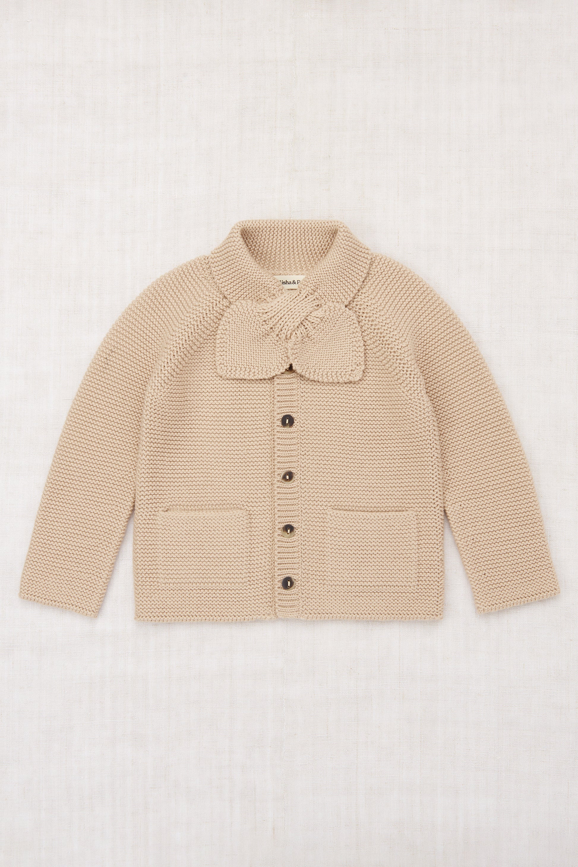 Inspired by Misha & Puff's signature Scout Top, a jacket-style cardigan in a Merino wool knit. Featuring the Scout pull-through kerchief, two front patch pockets, and horn button closure.