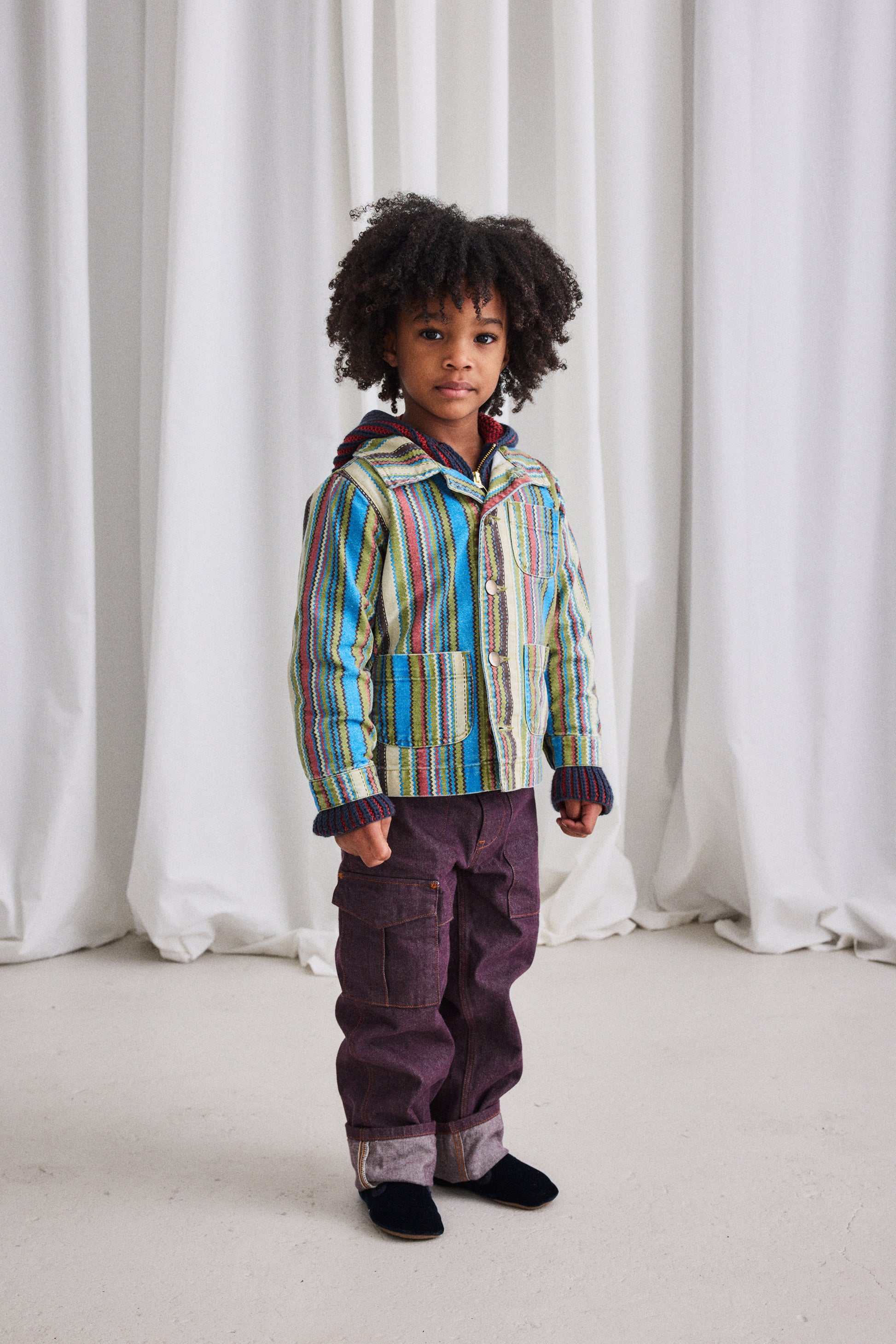 Our denim is 100% cotton, with thoughtful touches like contrast topstitching, hand-tacked embroidery instead of rivets for softness, and adjustable waistbands and straps for long wear and the perfect fit. Our denim has no stretch — yet has a naturally soft hand-feel and is effortlessly versatile.