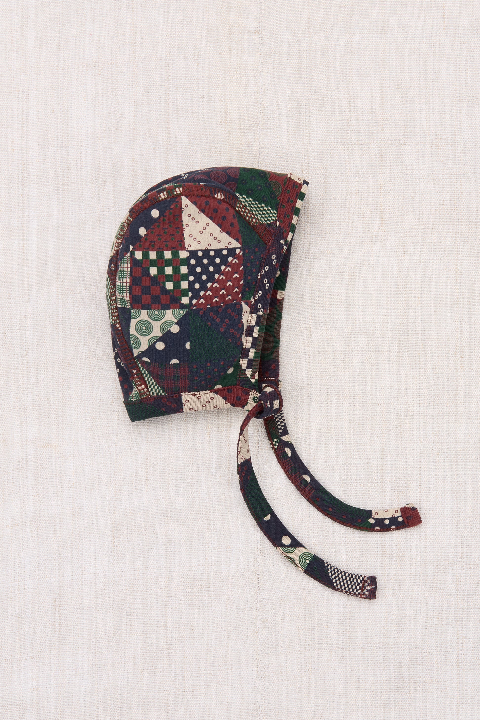 A classic bonnet hood in soft organic Pima cotton, featuring a tie closure.