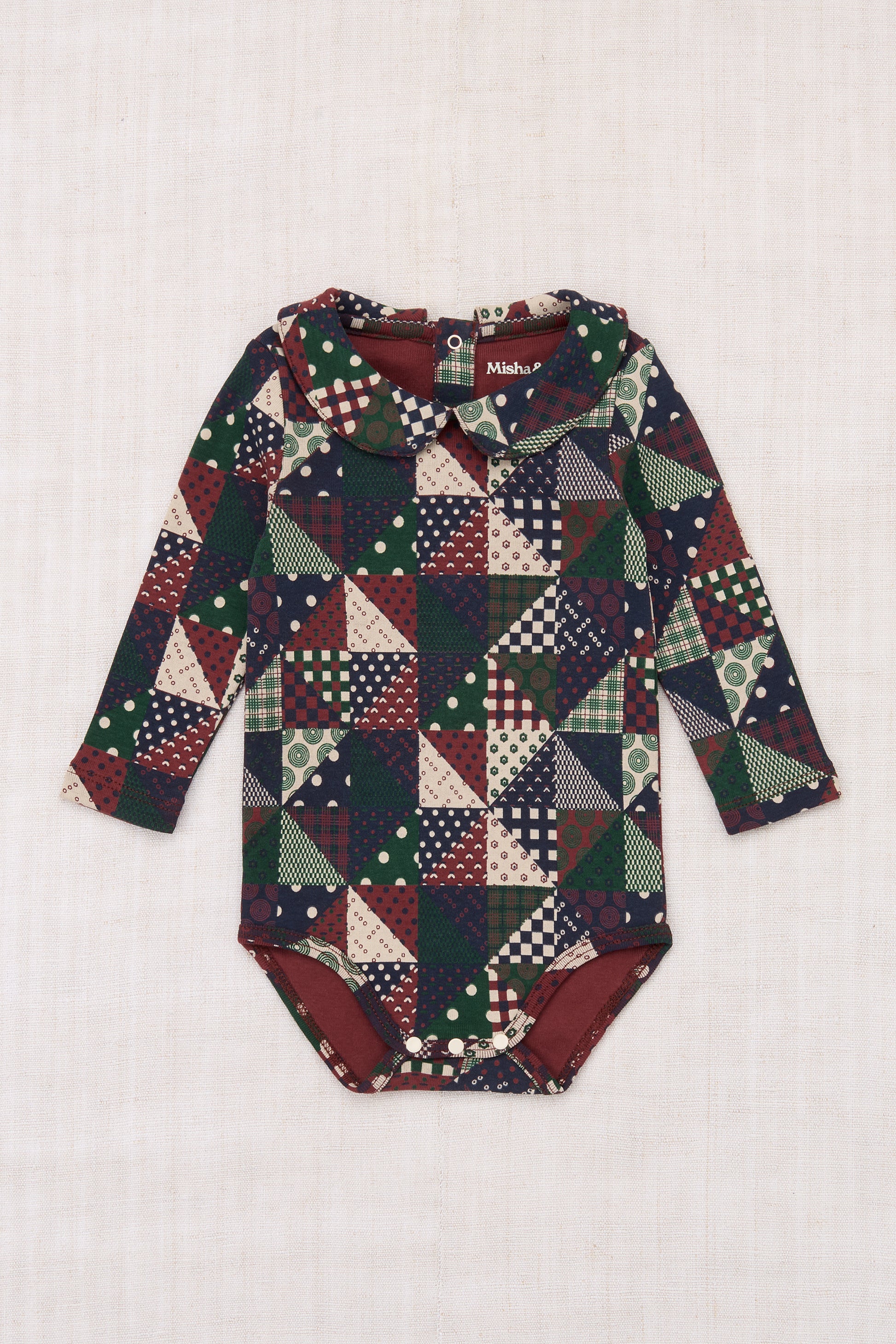 Baby Petit Collar Onesie - Madder Root Patchwork