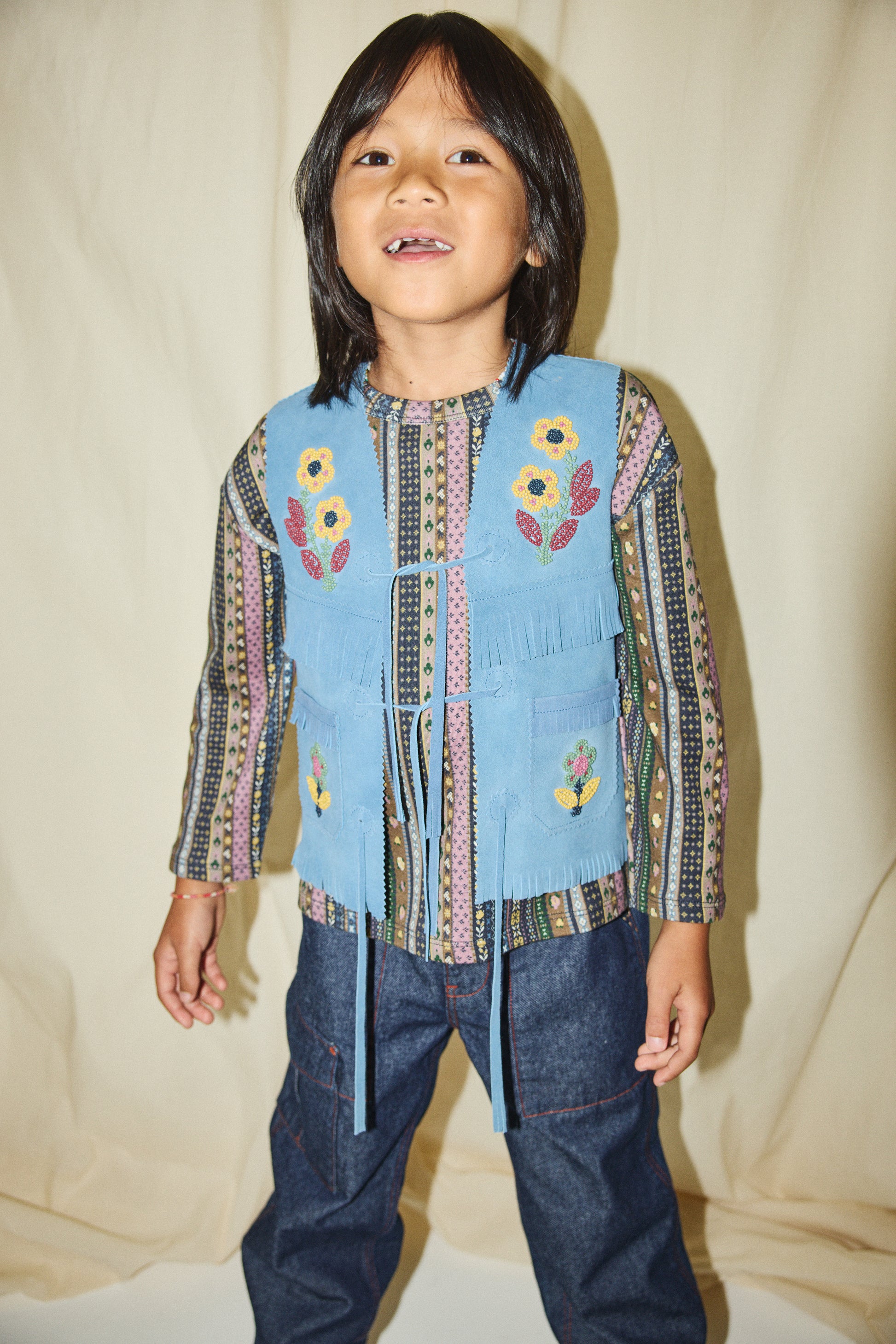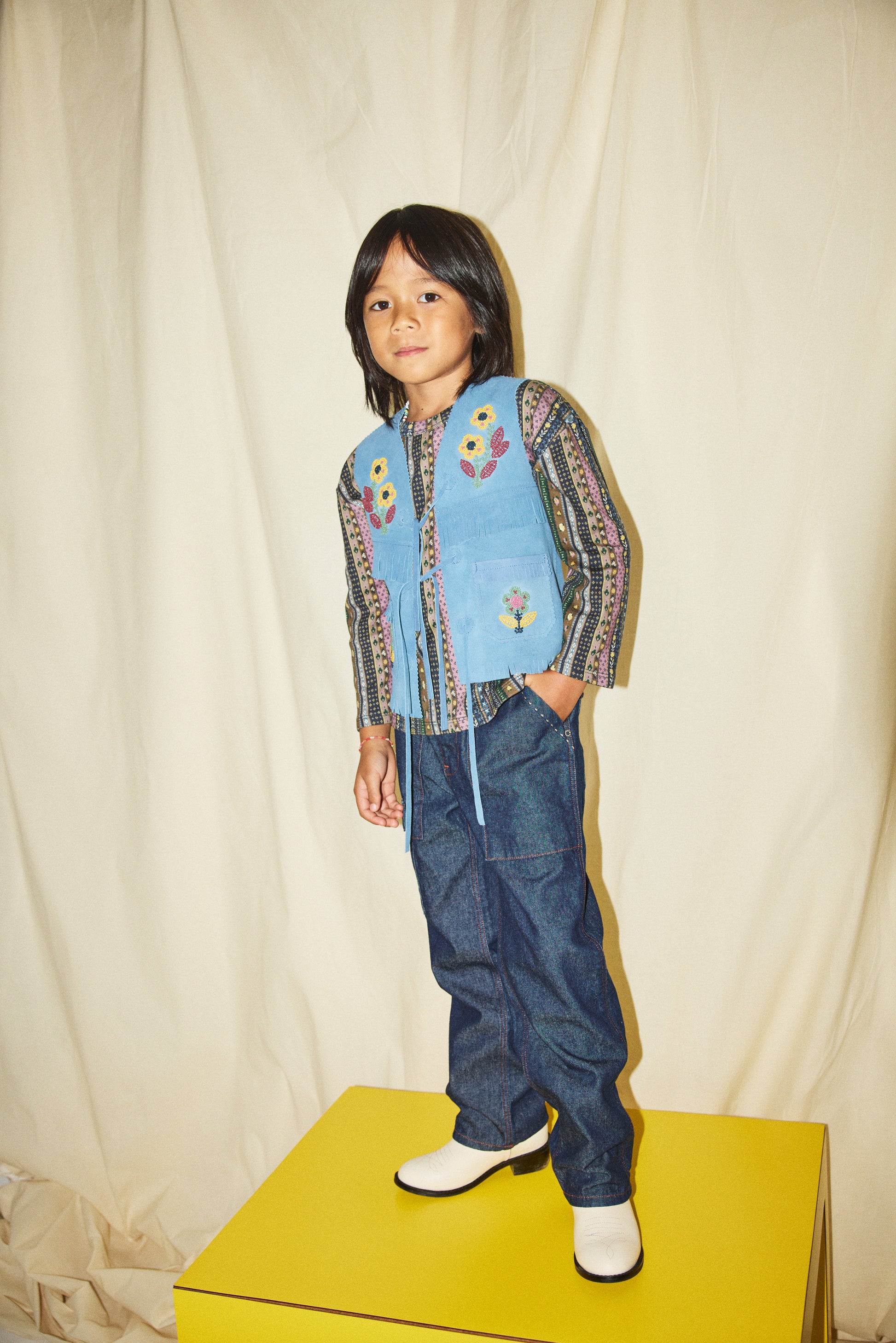 Our denim is 100% cotton, with thoughtful touches like contrast topstitching, hand-tacked embroidery instead of rivets for softness, and adjustable waistbands and straps for long wear and the perfect fit. Our denim has no stretch — yet has a naturally soft hand-feel and is effortlessly versatile.