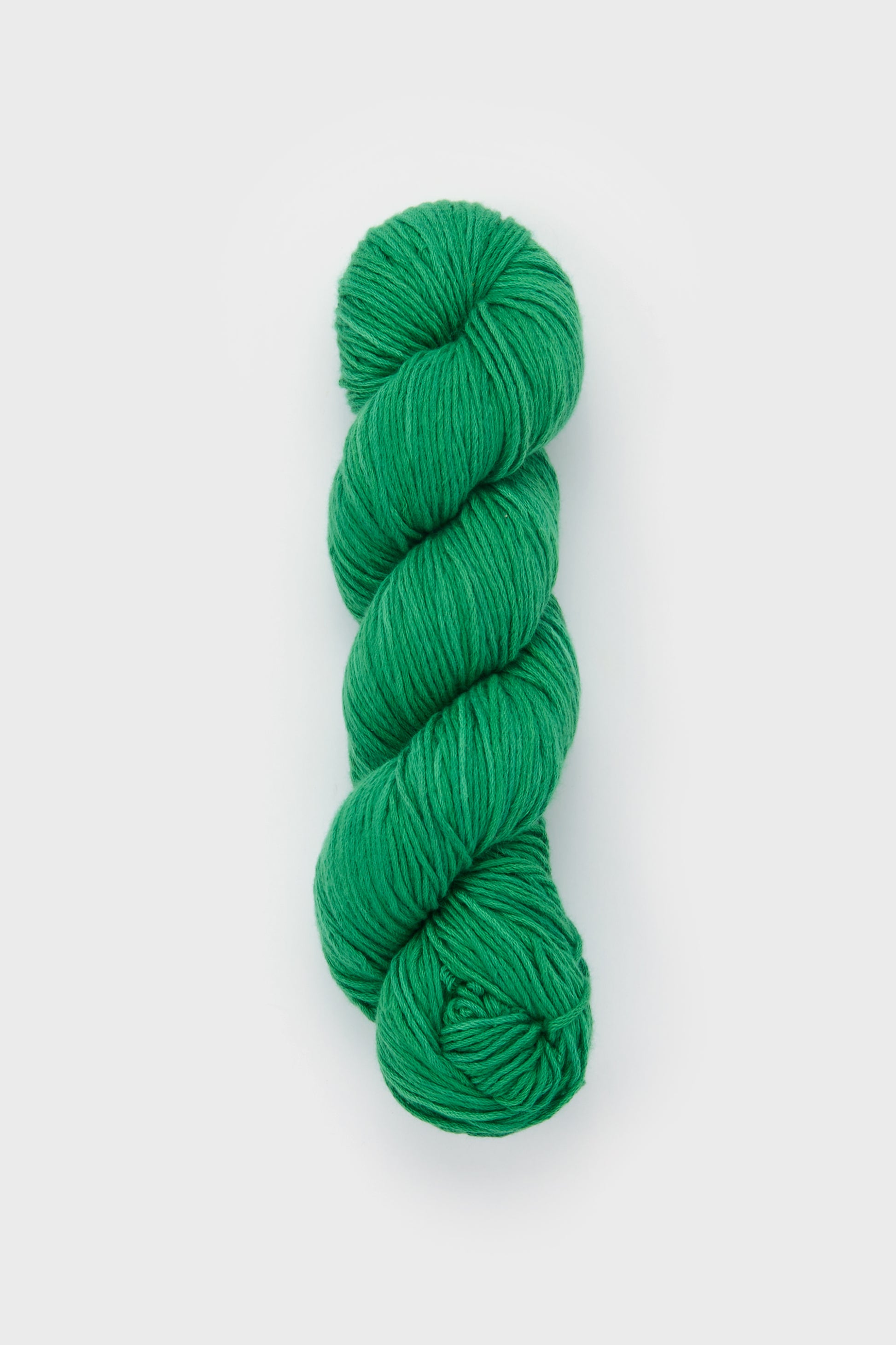 A classic bright greeen — think of a vintage green bottle. This yarn is 100% hand-dyed Pima cotton in a light worsted weight. The hand-dye process creates variations in color and endless creative possibilities.