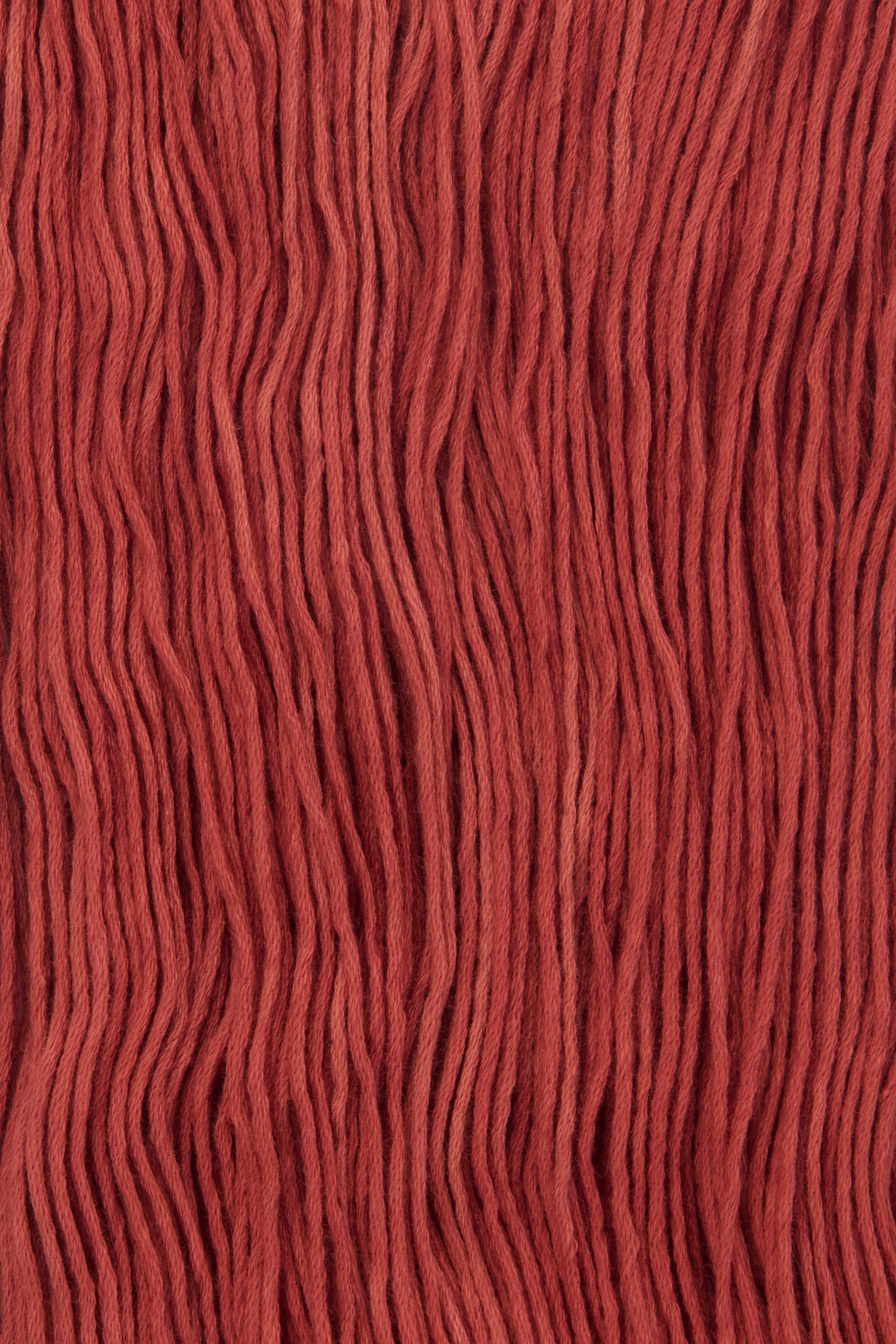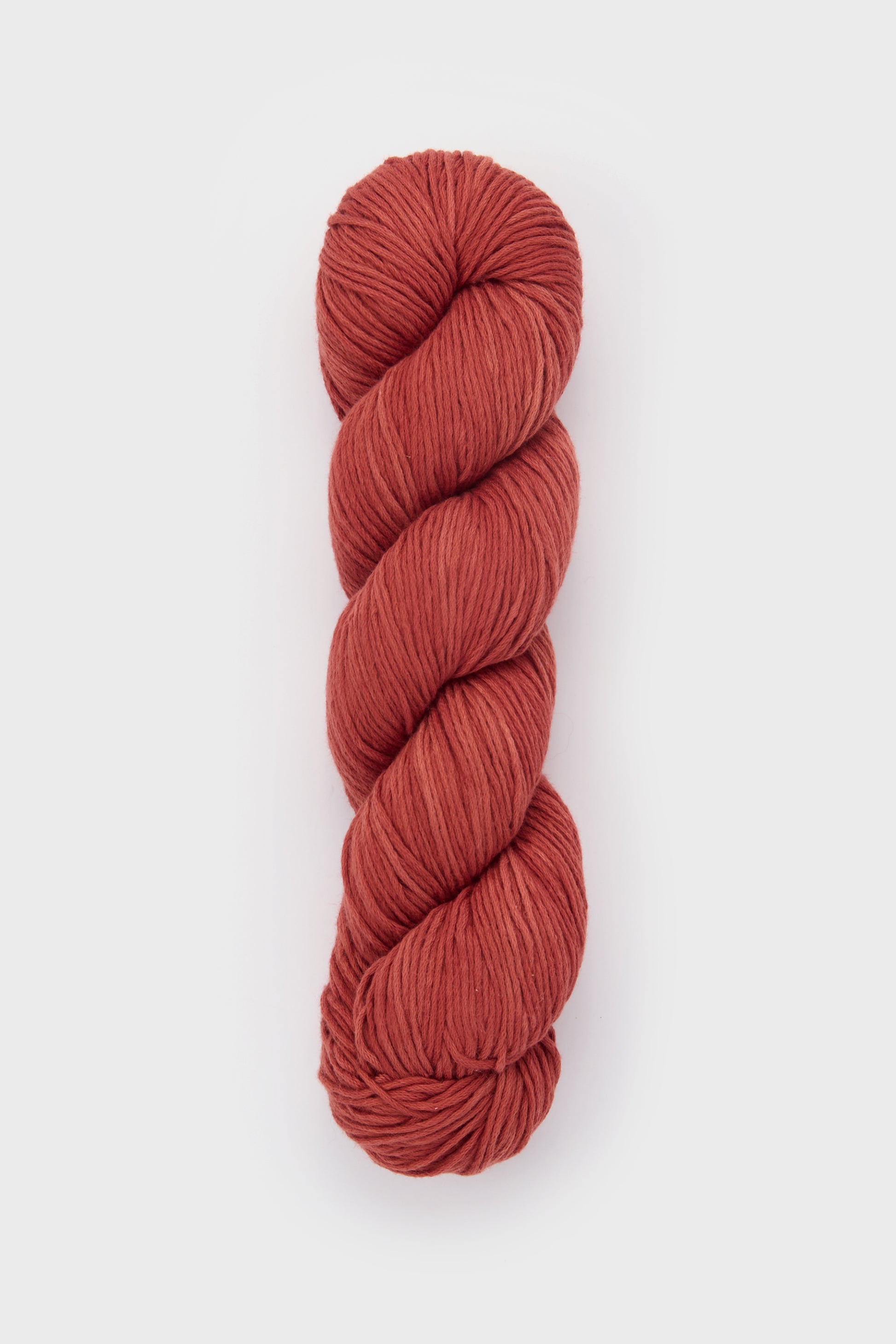 A warm orangey-red, like you might see in the desert or on weathered seaside cliffs. This yarn is 100% hand-dyed Pima cotton in a light worsted weight. The hand-dye process creates variations in color and endless creative possibilities.
